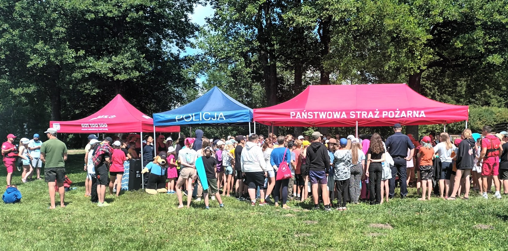 14 lipca b.r. na terenie Pałacu Młodzieży w Pieczarkach funkcjonariusze z KP PSP w Węgorzewie wraz z Policją i MOPR-em zorganizowali pokaz na Jeziorze Dargin. Podczas pokazu zostały zaprezentowane techniki podejmowania osób poszkodowanych z wody, a następnie transport na brzeg oraz udzielenie osobą poszkodowanym kwalifikowanej pierwszej pomocy. Pokaz ten wywołał wiele emocji, a zgromadzeni z ogromnym zainteresowaniem obserwowali przebieg działań. Następnie młodzież zapoznała się z aspektami praktycznego udzielania KPP z wykorzystaniem AED. Ten blok tematyczny również skupił uwagę wielu uczestników kolonii. Po pokazanie, każdy mógł podjeść i przećwiczyć podstawy ratowania ludzkiego życia.