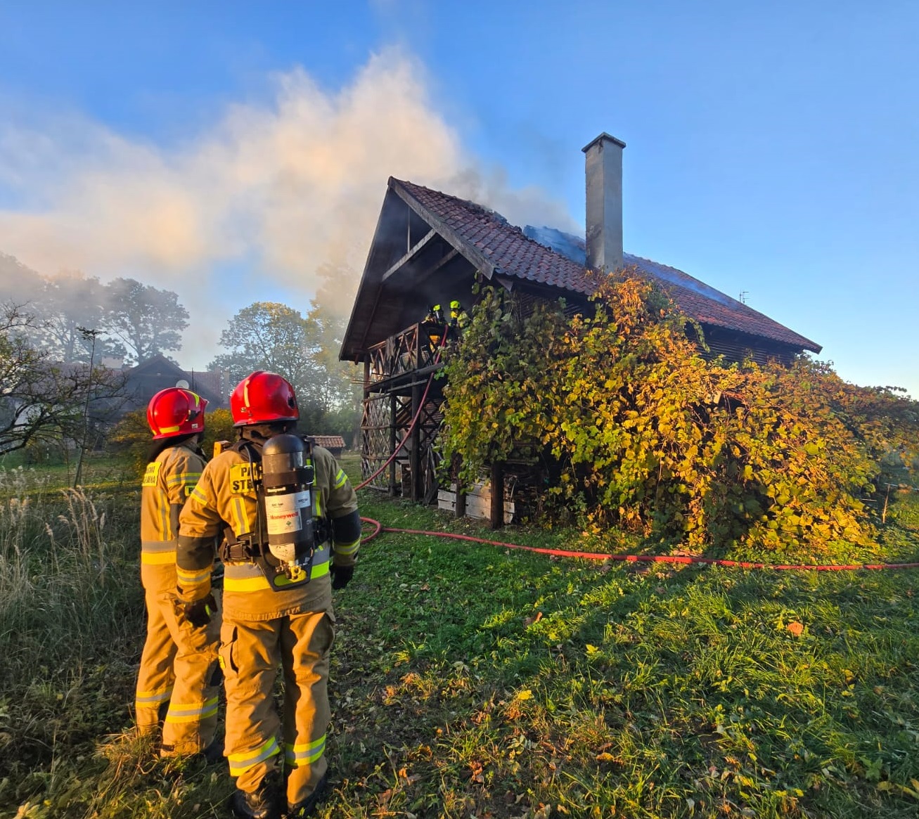 18 października 2024 roku w godzinach popołudniowych dyżurny Stanowiska Kierowania Komendanta Powiatowego PSP w Węgorzewie otrzymał zgłoszenie o pożarze budynku gospodarczego z poddaszem użytkowym w miejscowości Radzieje.