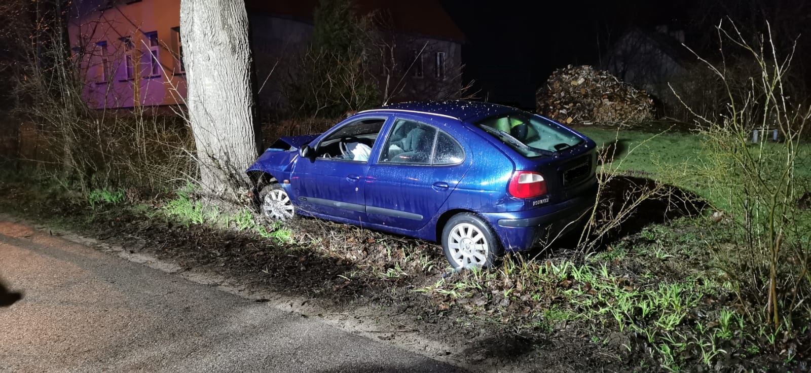 Samochód osobowy uderzył w drzewo - Piłaki Wielkie
