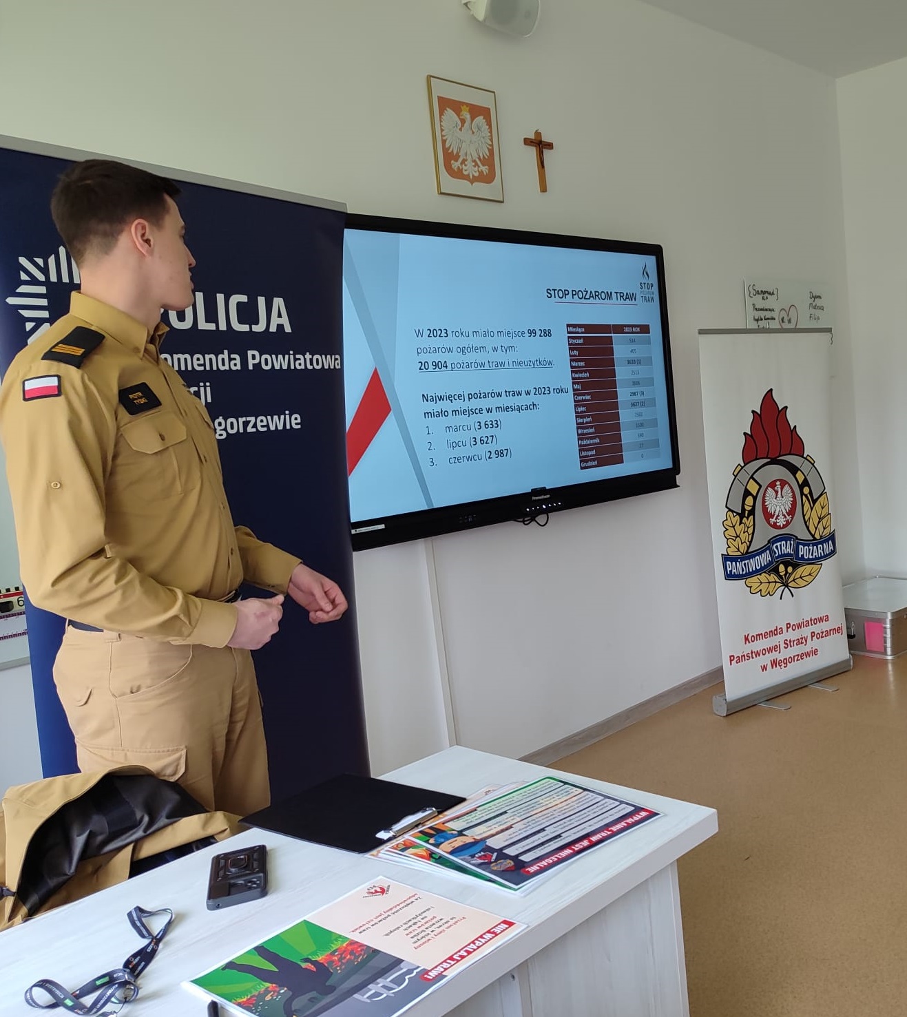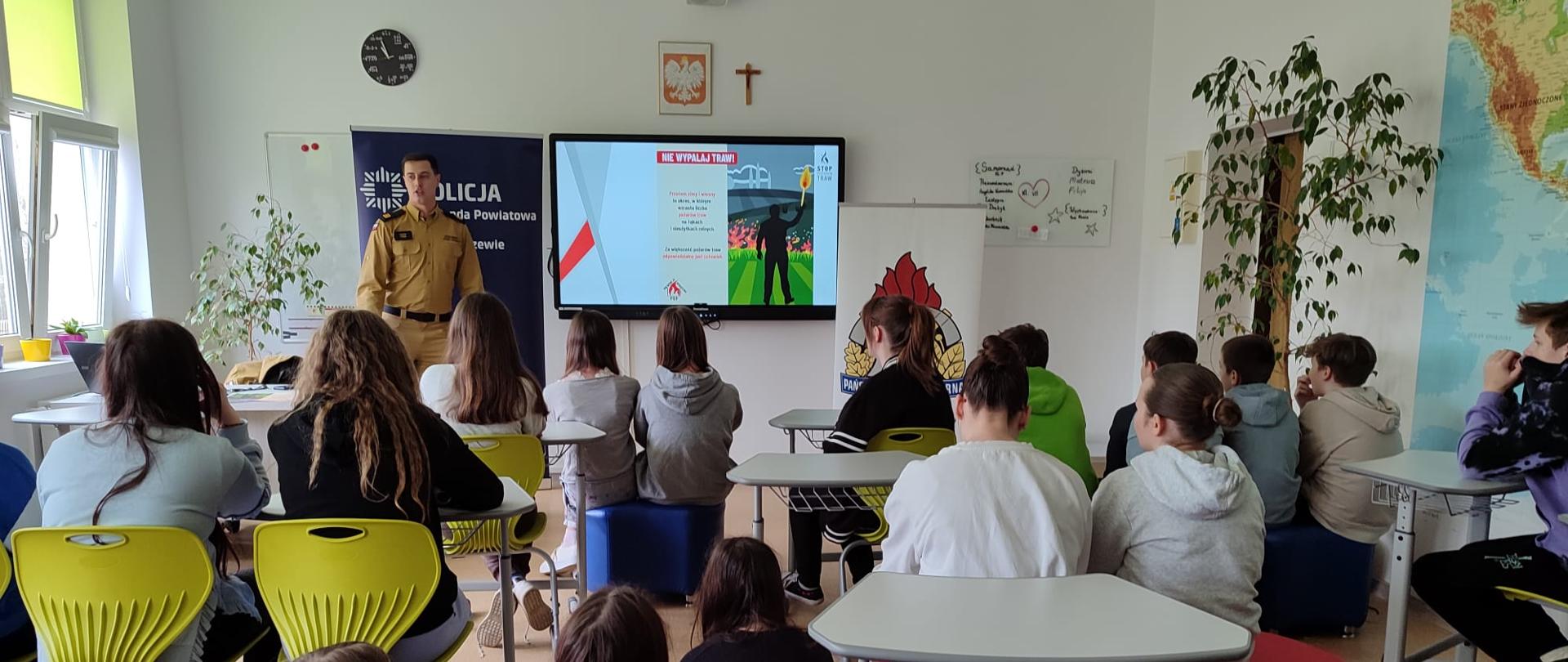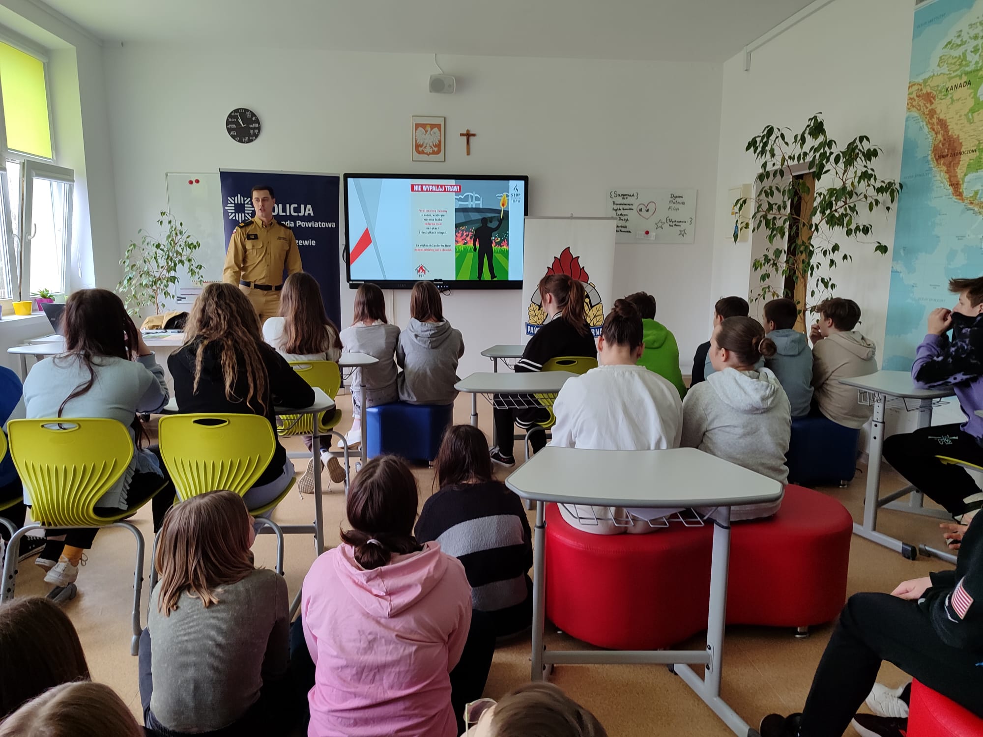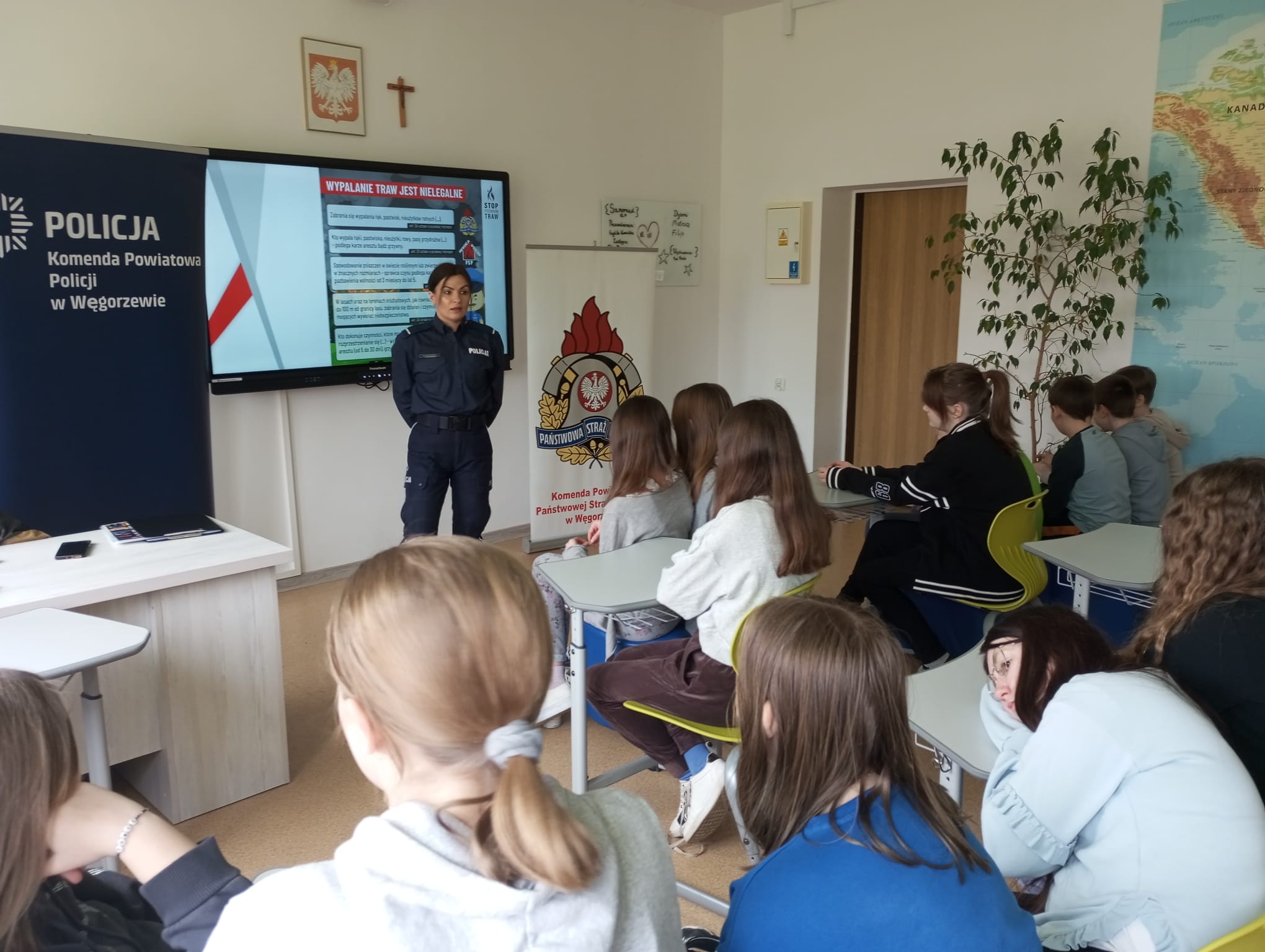 20.03.2024 r. funkcjonariusz z Komendy Powiatowej Państwowej Straży Pożarnej w Węgorzewie w ramach kampanii społecznej „STOP POŻAROM TRAW” spotykał się z uczniami Szkoły Podstawowej w Perłach. Spotkanie miało na celu uświadomienie, jak niekorzystne i niebezpieczne dla środowiska oraz dla życia ludzkiego jest wypalanie traw, będące skutkiem tysięcy pożarów, w których ludzie tracą dorobek całego życia, a nawet ponoszą śmierć.