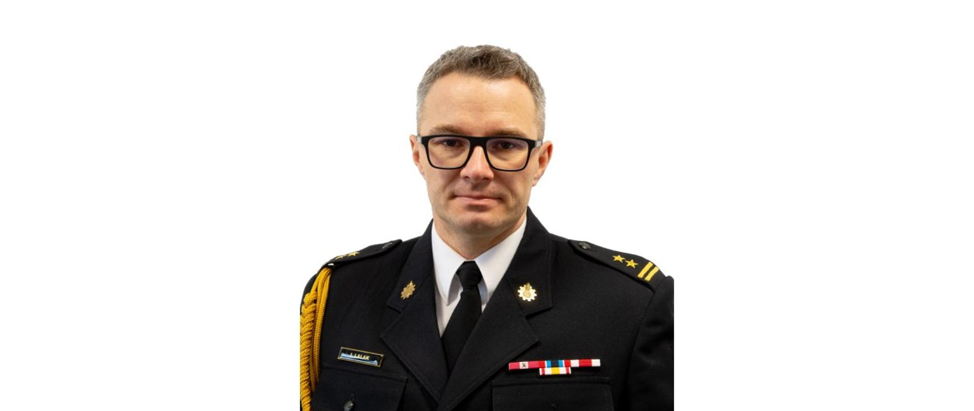 bryg. mgr inż. Ireneusz Lalak służbę w Państwowej Straży Pożarnej rozpoczął w 2006r., jako stażysta w Komendzie Powiatowej PSP w Giżycku. Po ukończeniu kursu kwalifikacyjnego szeregowych PSP oraz trzyletniej służby przygotowawczej został mianowany na stanowisko młodszego ratownika w służbie stałej. W trakcie pełnienia służby w roku 2011 ukończył niestacjonarne studia w Szkole Głównej Służby Pożarniczej w Warszawie zdobywając tytuł magistra inżyniera pożarnictwa o specjalności Inżyniera Bezpieczeństwa Pożarowego. Następnie w tym samym roku ukończył szkolenie uzupełniające strażaka jednostki ochrony przeciwpożarowej w Szkole Podoficerskiej PSP w Pionkach, tym samym uzyskując uprawnienia do zajmowania stanowisk oficerskich. W 2012r. został awansowany na dyżurnego operacyjnego w Stanowisku Kierowania Komendanta Powiatowego PSP w Giżycku. Z dniem 01 maja 2017r. został powołany przez Warmińsko – Mazurskiego Komendanta Wojewódzkiego PSP na stanowisko zastępcy komendanta powiatowego PSP w Węgorzewie. W 2020 roku ukończył studia podyplomowe w zakresie Bezpieczeństwo i higiena pracy.