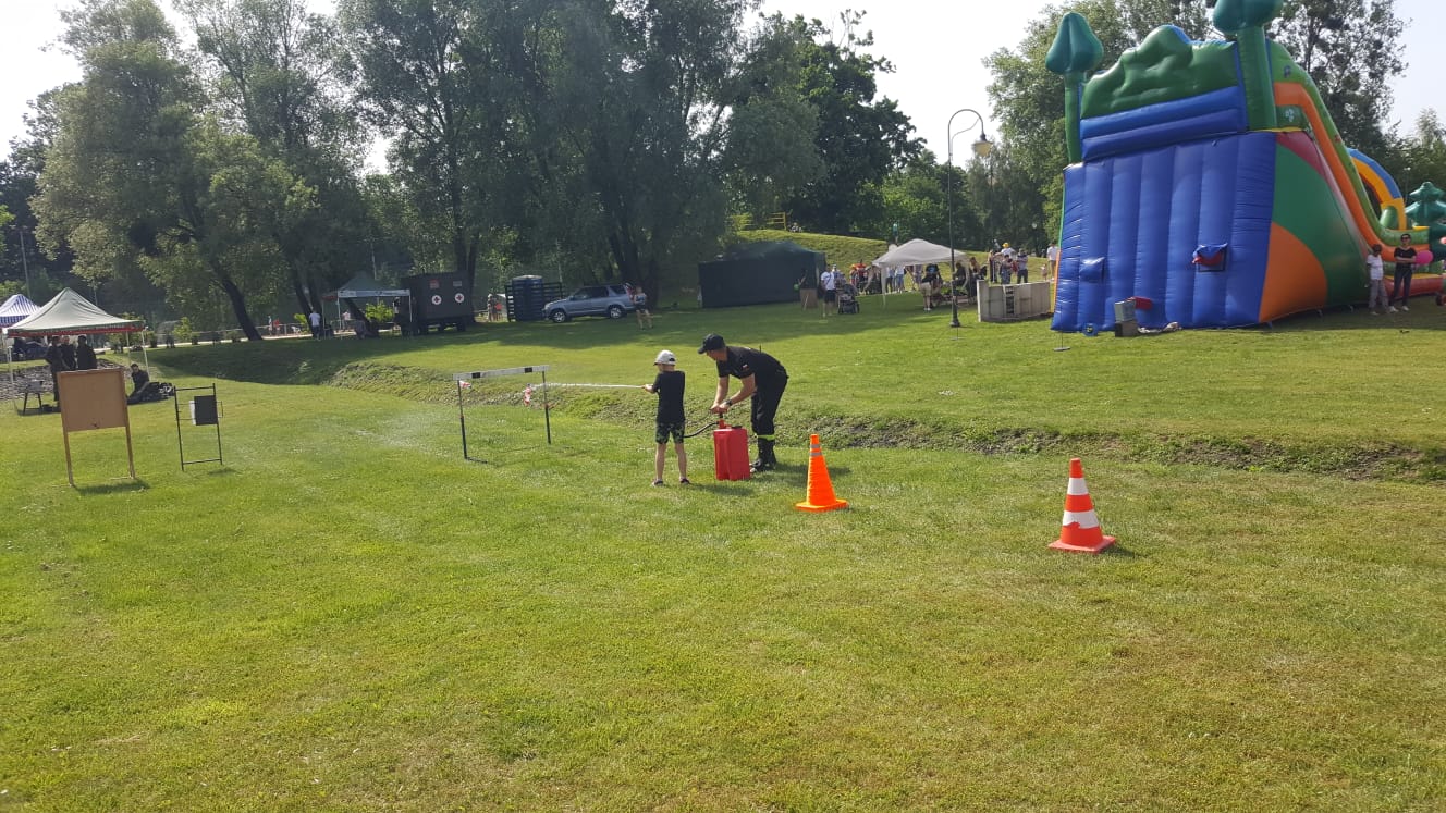 19 czerwca b.r. strażacy z Komendy Powiatowej Państwowej Straży Pożarnej w Węgorzewie brali udział w festynie garnizonowym zorganizowanym przez 11Mazurski Pułk Artylerii w Parku Helwinga w Węgorzewie. Strażacy poprzez swoją obecność na festynie, umożliwili wszystkim zainteresowanym zapoznanie się z charakterem ich codziennej pracy oraz typowym sprzętem wykorzystywanym do działań. Najmłodsi uczestnicy mogli również obejrzeć samochody ratowniczo-gaśnicze od środka oraz przymierzyć ubranie specjalne strażaków.