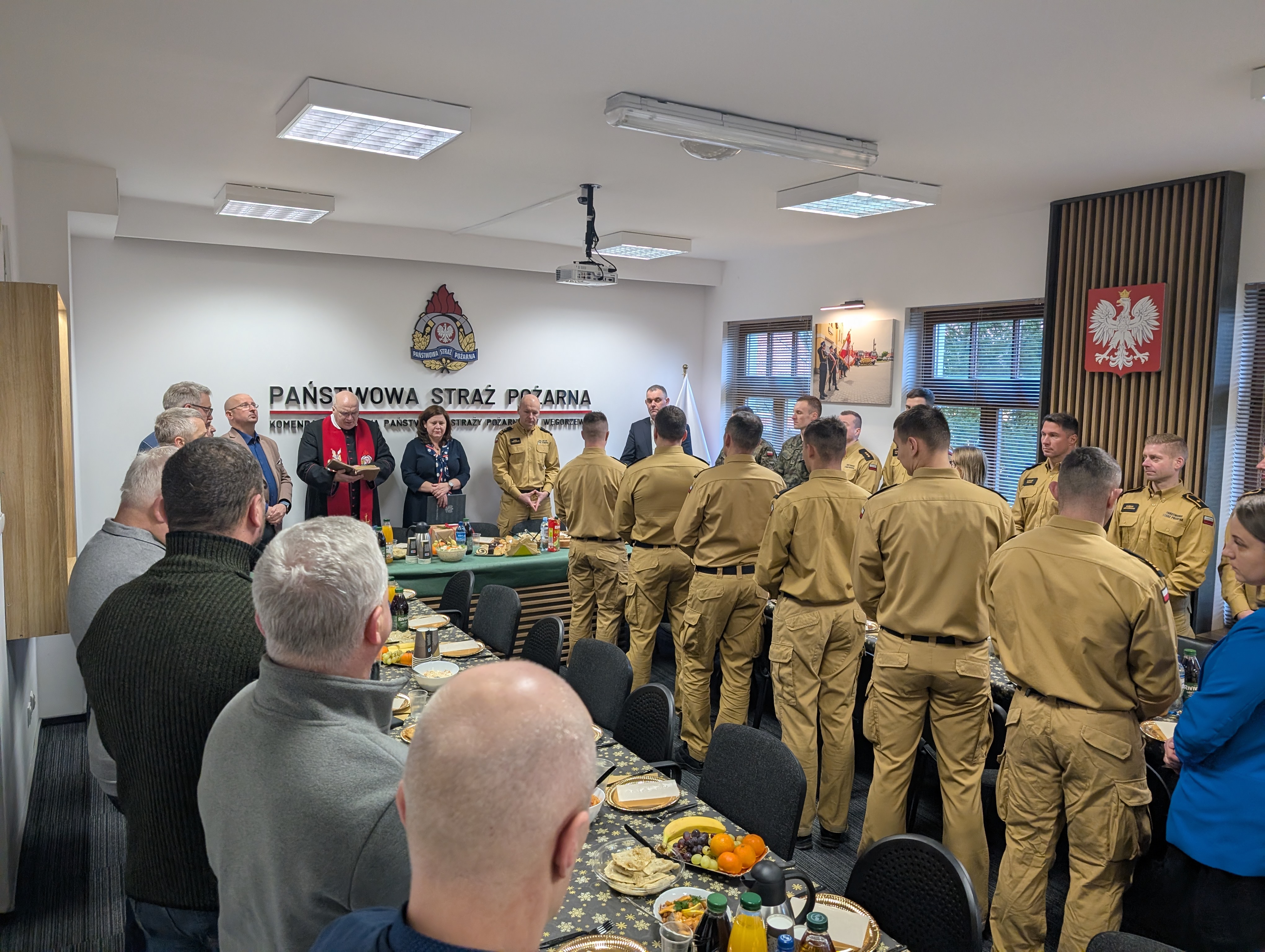 Po zakończeniu części oficjalnej wszyscy uczestnicy udali się do sali konferencyjnej, gdzie odbyło się tradycyjne spotkanie opłatkowe. Wzięli w nim udział funkcjonariusze i pracownicy cywilni komendy, a także zaproszeni goście.