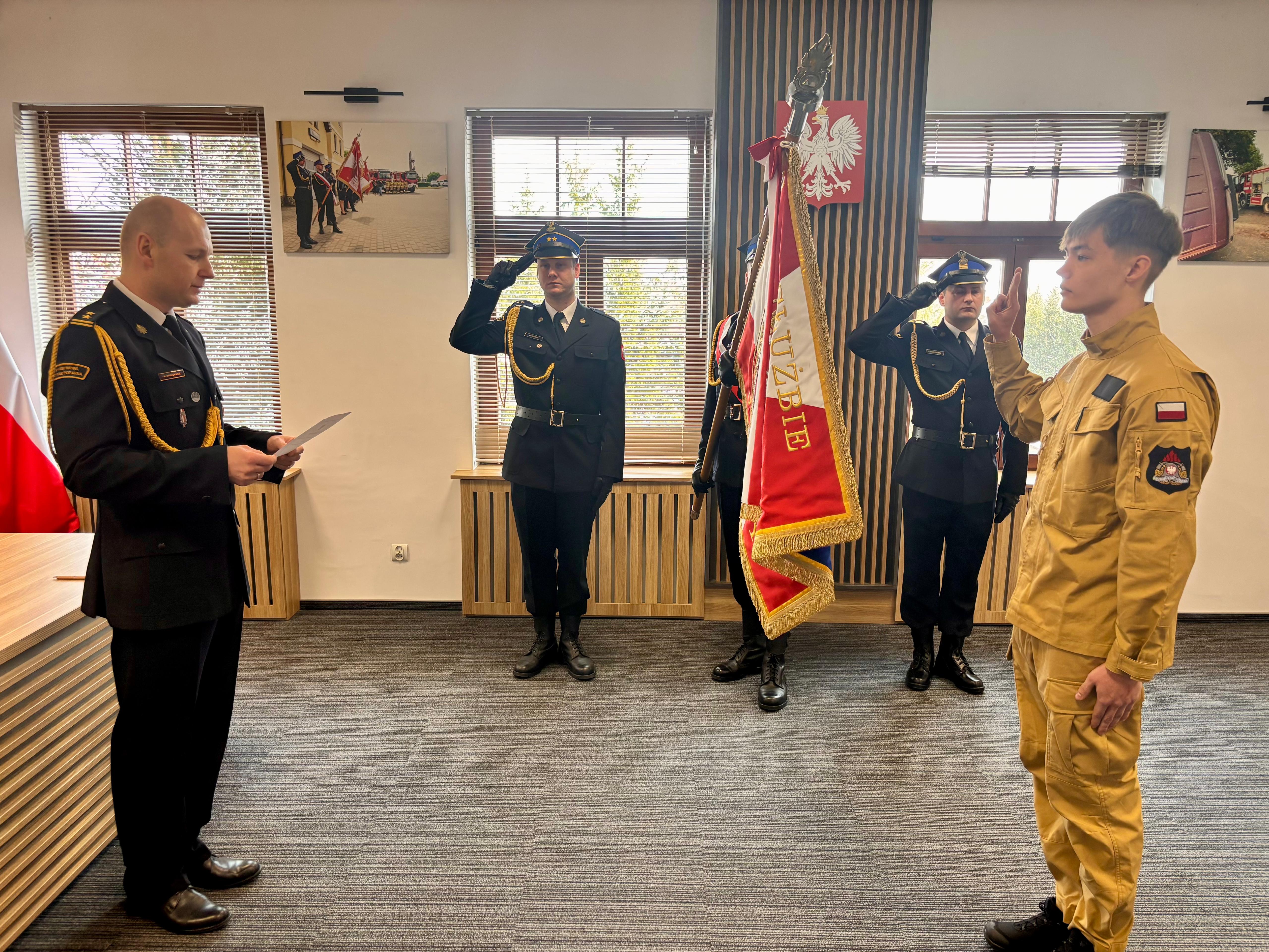 Ślubowanie symbolizuje pełne włączenie do formacji. To chwila, która wzmacnia poczucie odpowiedzialności, przynależności i tożsamości zawodowej strażaka.