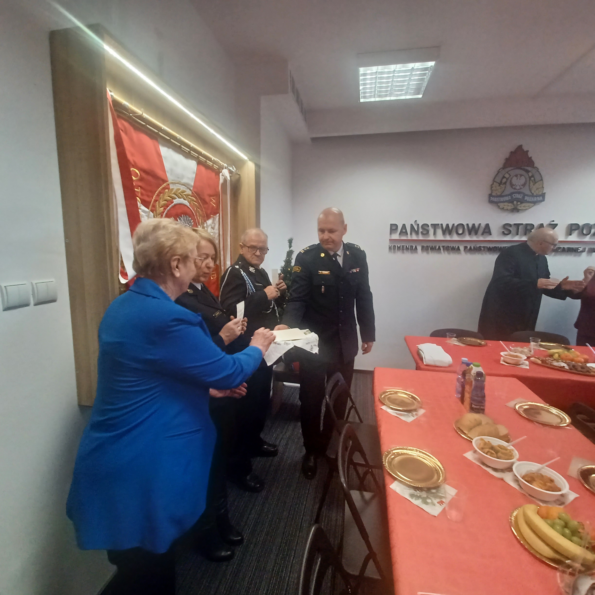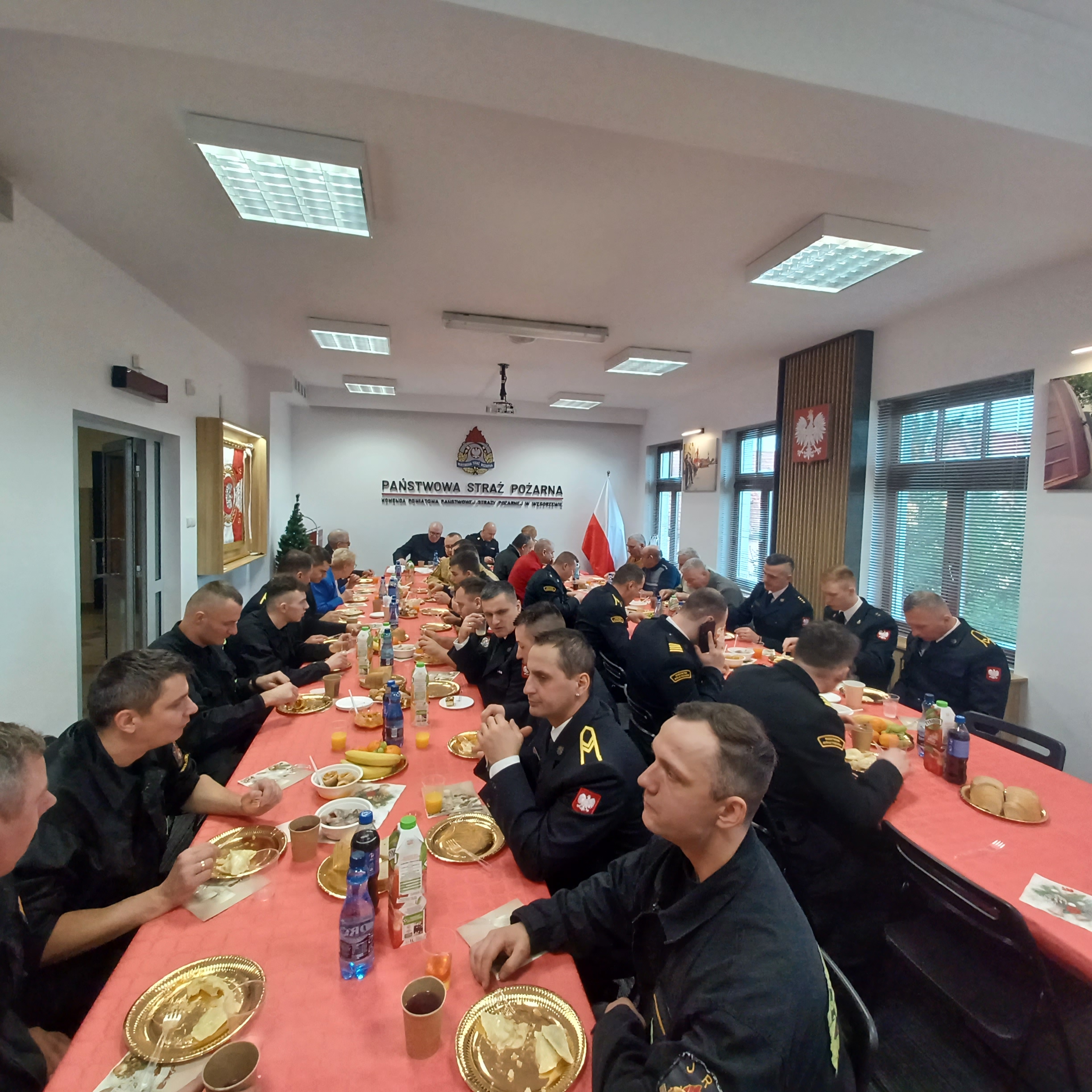20 grudnia 2023 r. w świetlicy węgorzewskiej komendy odbyło się wigilijne spotkanie opłatkowe, w którym uczestniczyli funkcjonariusze, pracownicy cywilni, emeryci oraz zaproszeni goście. Spotkanie rozpoczął Komendant Powiatowy Państwowej Straży Pożarnej w Węgorzewie bryg. Kamil Pawlukanis, który przywitał przybyłych gości oraz podziękował im za wspólną pracę w minionym roku.