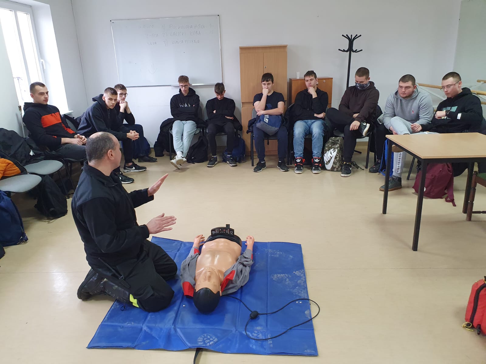 Głównym celem akcji było propagowanie właściwego zachowania podczas zbliżających się ferii. Strażacy przestrzegali przed korzystaniem z niezabezpieczonych lodowisk, gdzie ryzyko załamania się lodu jest bardzo duże. Zarówno uczniowie jak i opiekunowie oprócz uczestnictwa w pogadance mieli okazje wzięcia udziału w ćwiczeniach praktycznych na fantomie przygotowanym przez strażaków. Oprócz nauki i doskonalenia techniki uciskania klatki piersiowej oraz wykonywania oddechów ratowniczych, młodzież mogła wcielić się w rolę osoby zgłaszającej zdarzenia do odpowiednich służb.