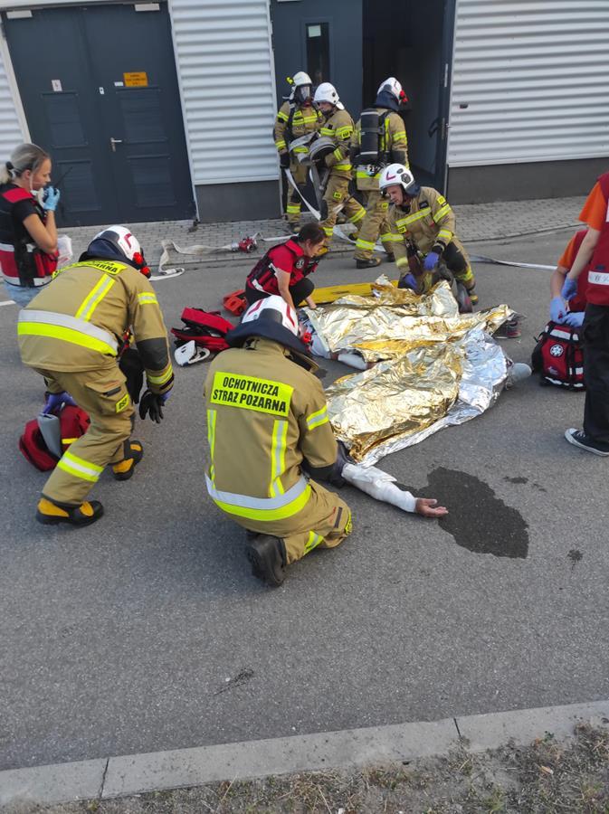 Epizod I: w wyniku zwarcia instalacji w pomieszczeniu rozdzielni elektrycznej zakładu drobiarskiego SuperDrob wybuchł pożar. Na miejscu pracownicy, którzy zauważyli pożar zaalarmowali służby oraz przystąpił do gaszenia przy pomocy podręcznego sprzętu gaśniczego. Niestety w wyniku podjętych działań pracownicy uległ poparzeniom. Działania przybyłych zastępów JOP polegały na ewakuowaniu poszkodowanych do strefy bezpiecznej, udzielenie im KPP oraz działaniach gaśniczych.
