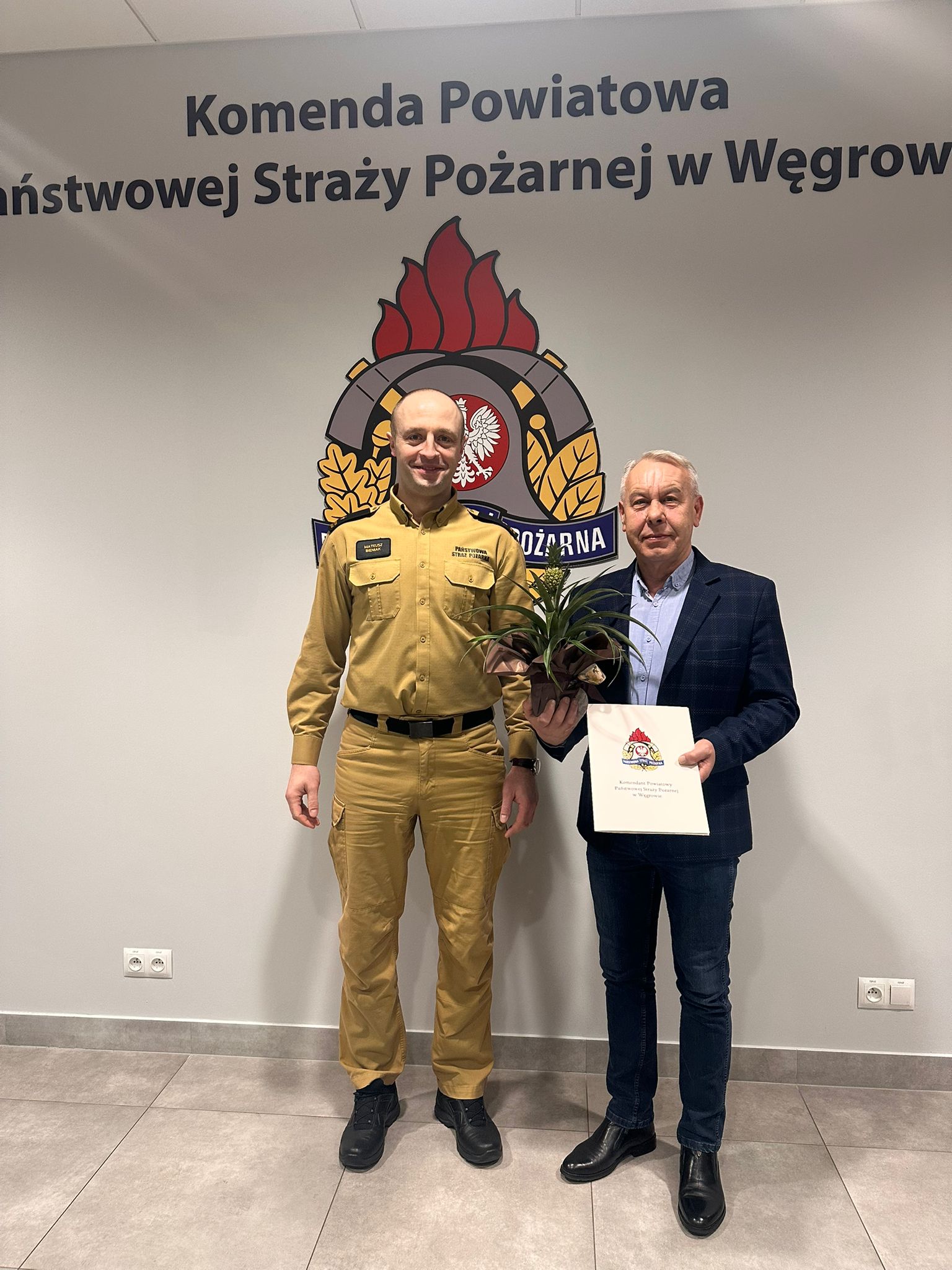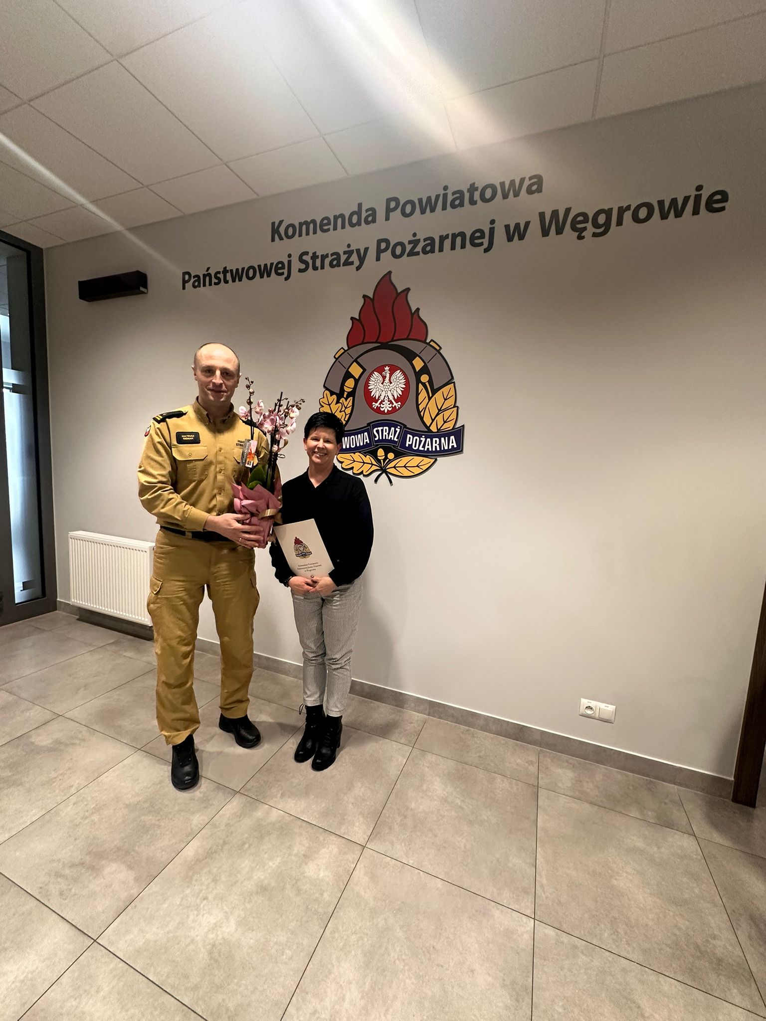 Podczas porannej narady służbowej Komendant Powiatowy PSP wręczył dwóm pracownikom kwiaty oraz listy gratulacyjne, dziękując za zaangażowanie, profesjonalizm i rzetelne wykonywanie powierzonych obowiązków.