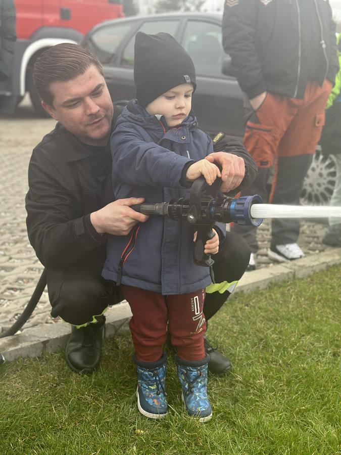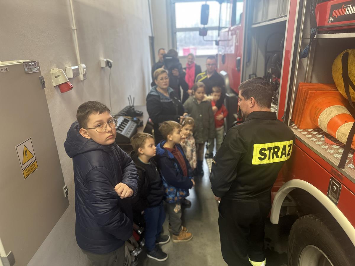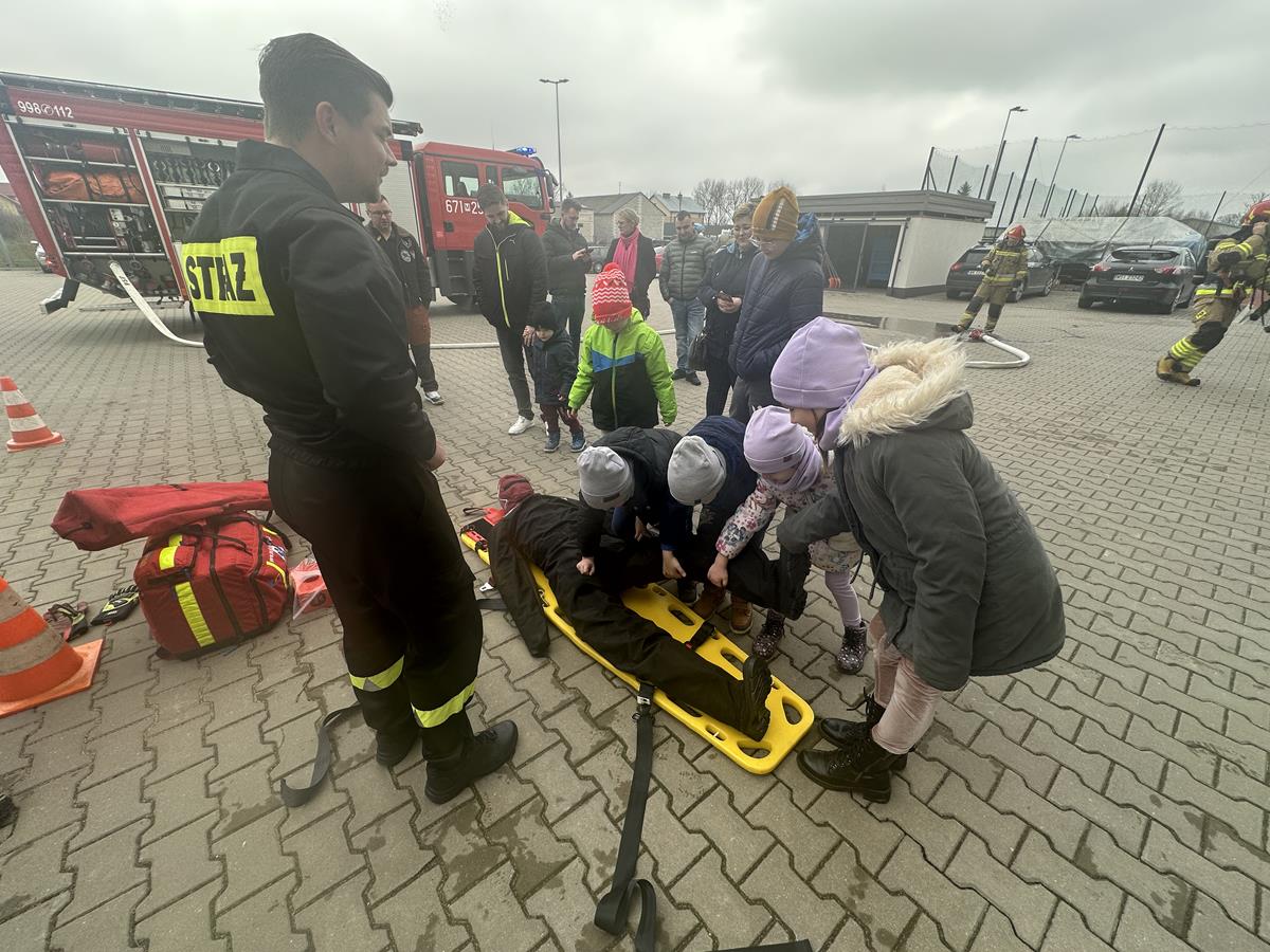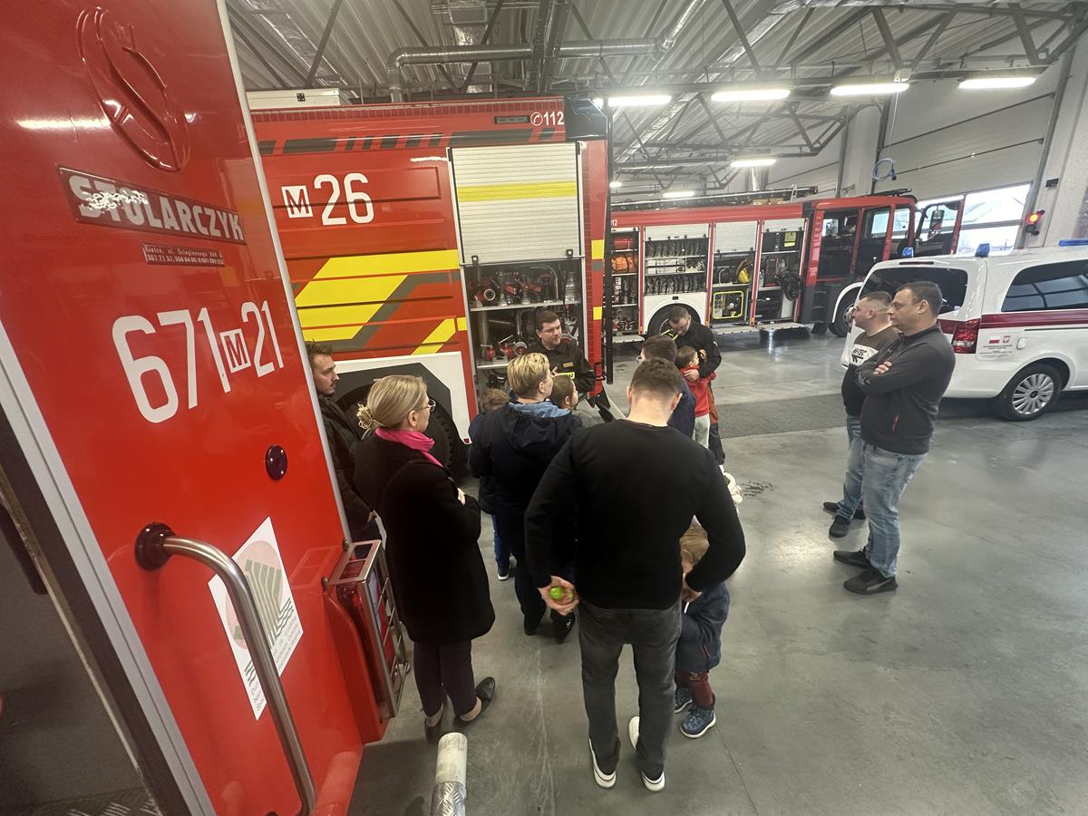W środę 13 marca br. dzieci wraz z rodzicami odwiedziły siedzibę komendy. Wizyta rozpoczęła się od zapoznania dzieci z obiektem strażnicy oraz jej pracownikami. Podczas spotkania strażacy przybliżyli dzieciom, na czym polega ich praca, w jakich okolicznościach należy wezwać straż pożarną oraz pod jaki numer alarmowy zadzwonić (112) aby wezwać pomoc. Dzieci miały okazję zobaczyć specjalistyczny sprzęt wykorzystywany podczas akcji ratowniczo – gaśniczych oraz mogły przymierzyć ubranie strażackie. Na koniec wizyty zorganizowano pokaz/ćwiczenia podczas, których zasymulowano pożar garażu, gdzie poszkodowana została jedna osoba, którą trzeba było ewakuować, z płonącego warsztatu