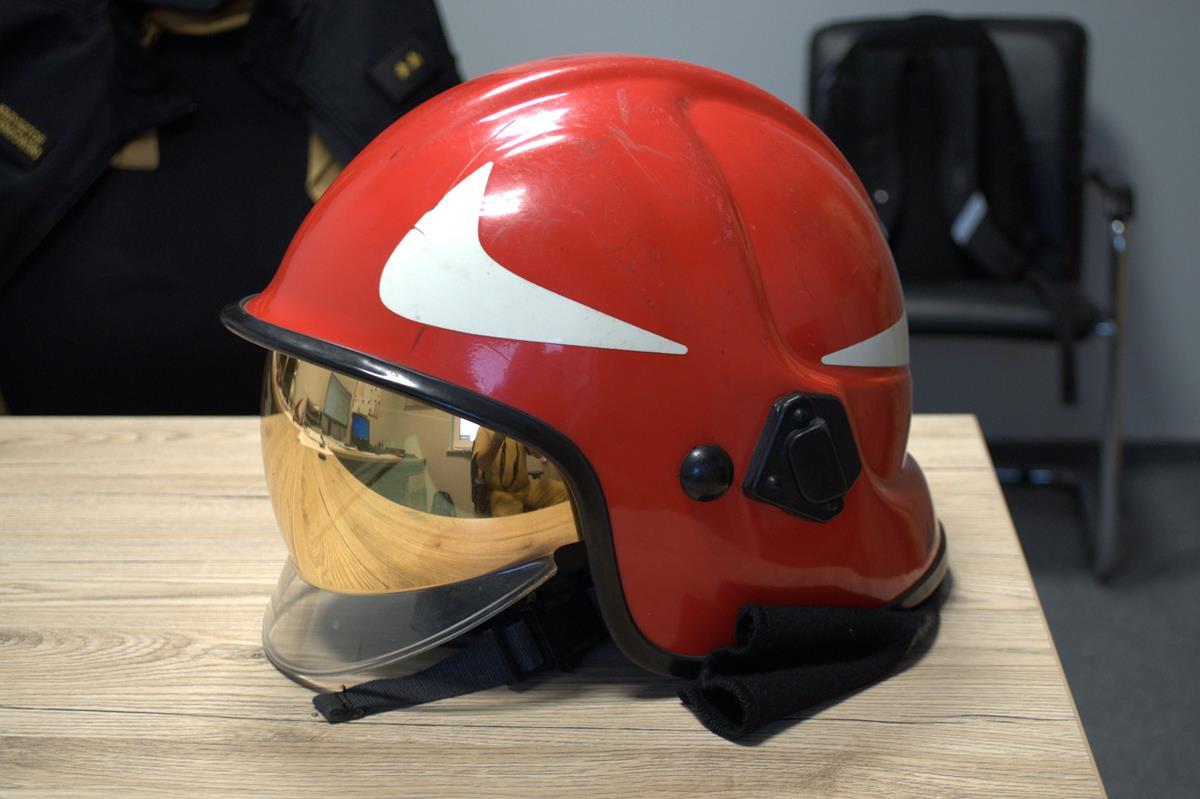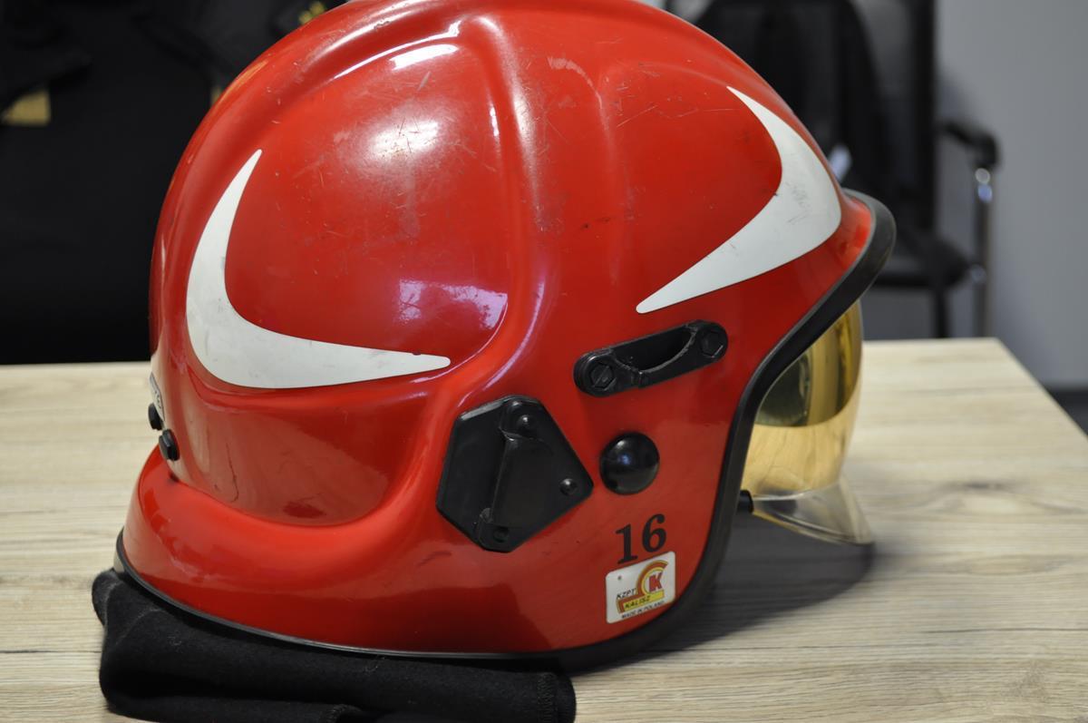 - Hełm strażacki – używany podczas działań ratowniczo-gaśniczych przez jednego z funkcjonariuszy KP PSP Węgrów