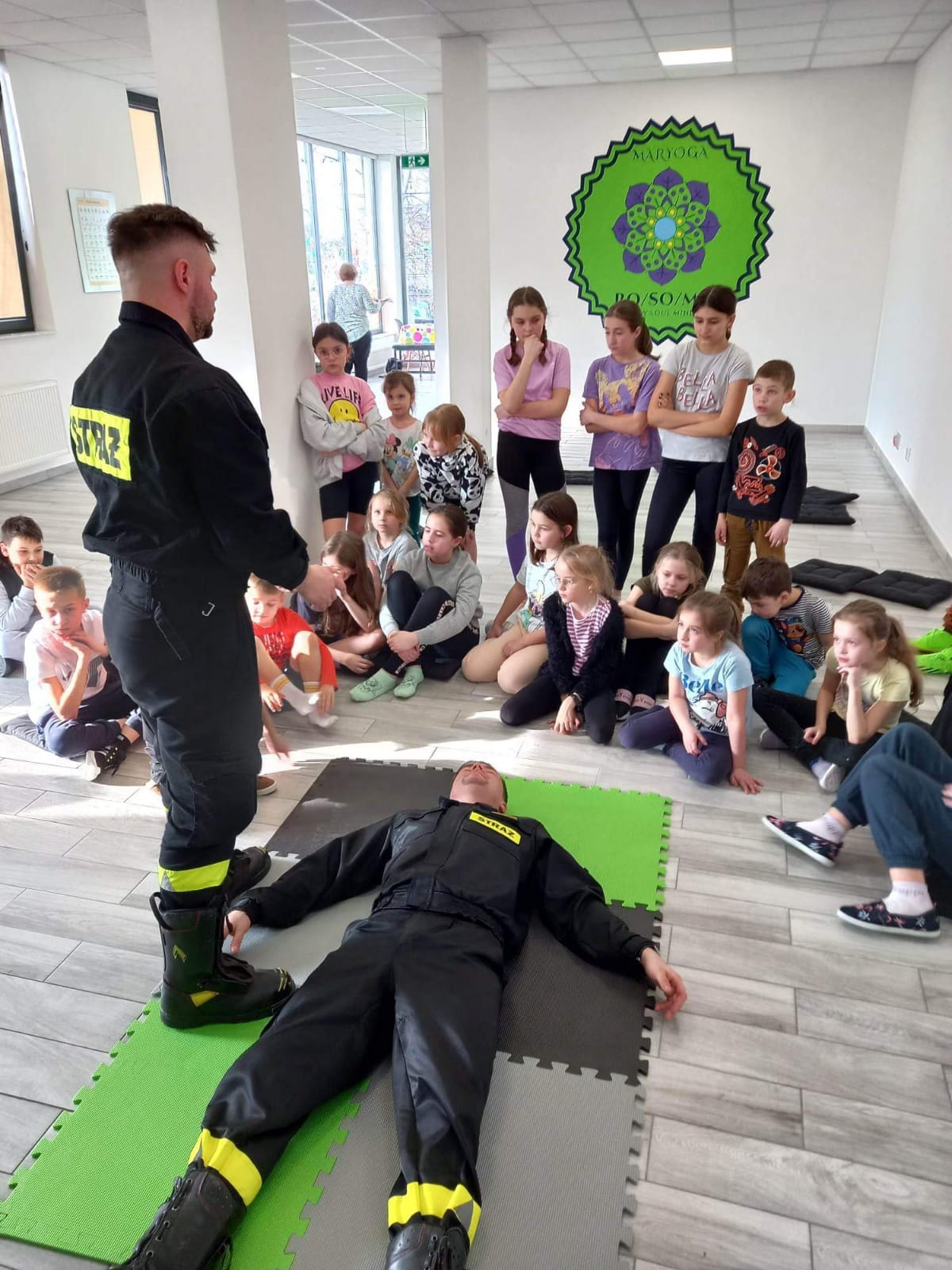 Strażacy poruszyli kilka ważnych kwestii dotyczących bezpieczeństwa podczas zimowych zabaw w celu uniknięcia sytuacji stwarzających zagrożenie dla życia i zdrowia. Pracownicy PSP zwrócili szczególną uwagę na niebezpieczeństwa płynące z niewłaściwego użytkowania prądu i gazu. Wyjaśnili co to jest „czad”, jakie są zagrożenia związane z zatruciem tlenkiem węgla oraz stosowanie czujek dymu. Jak zawsze największe zainteresowanie wzbudziły zajęcia z udzielania pierwszej pomocy przedmedycznej. Wiele emocji wywołał pokaz z zakresu resuscytacji krążeniowo – oddechowej wykonany na fantomie. Każdy z uczestników zajęć mógł utrwalić zdobytą wiedzę podczas ćwiczeń.