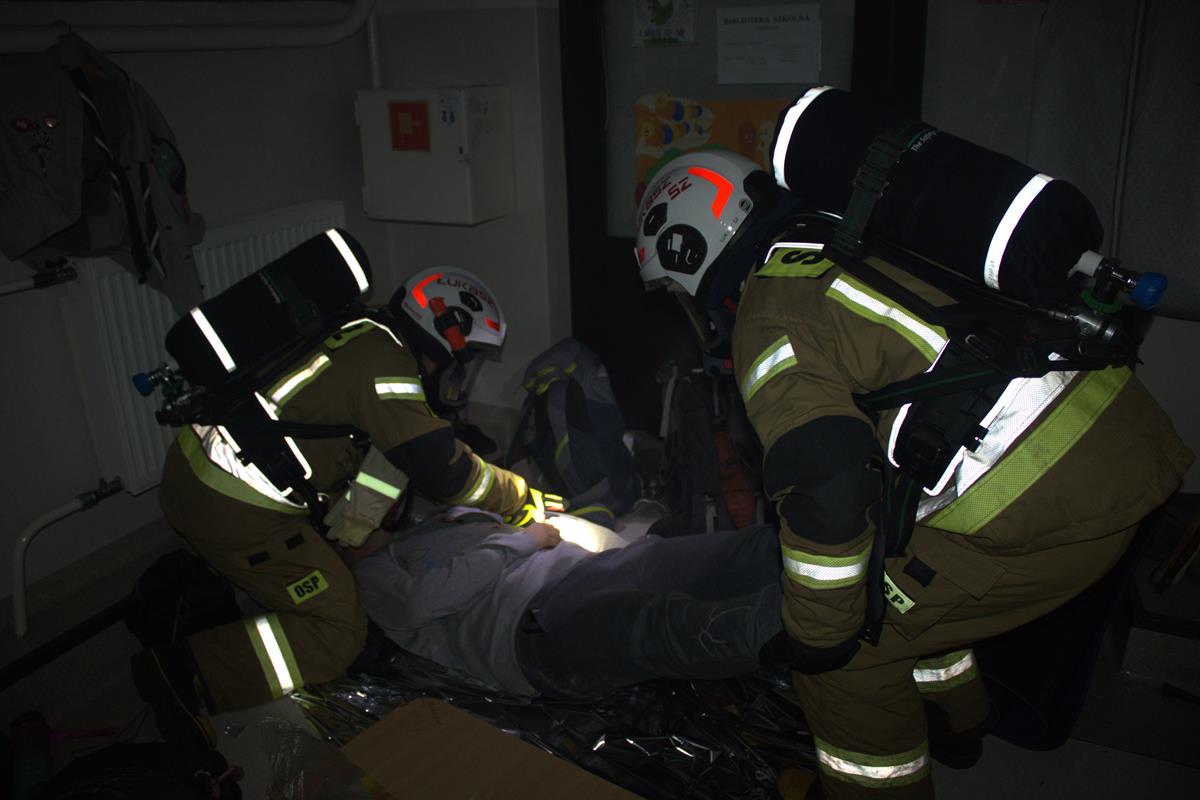Działania przybyłych zastępów JOP polegały na ewakuowaniu poszkodowanych do strefy bezpiecznej, udzielenie im KPP oraz działaniach gaśniczych.