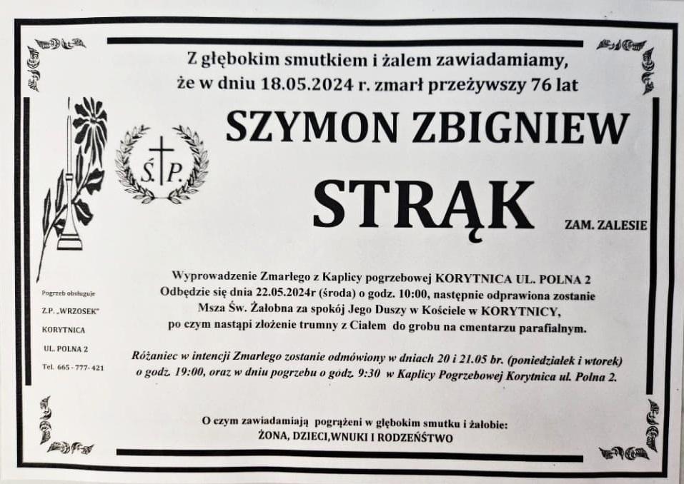 Z głębokim żalem zawiadamiamy, że odszedł od nas na wieczną służbę funkcjonariusz Komendy Powiatowej Państwowej Straży Pożarnej w Węgrowie śp. st. ogn. w st. spocz. Szymon Zbigniew Strąk. Najbliższej rodzinie, kolegom, funkcjonariuszom i pracownikom cywilnym tutejszej komendy oraz znajomym, składamy wyrazy współczucia.