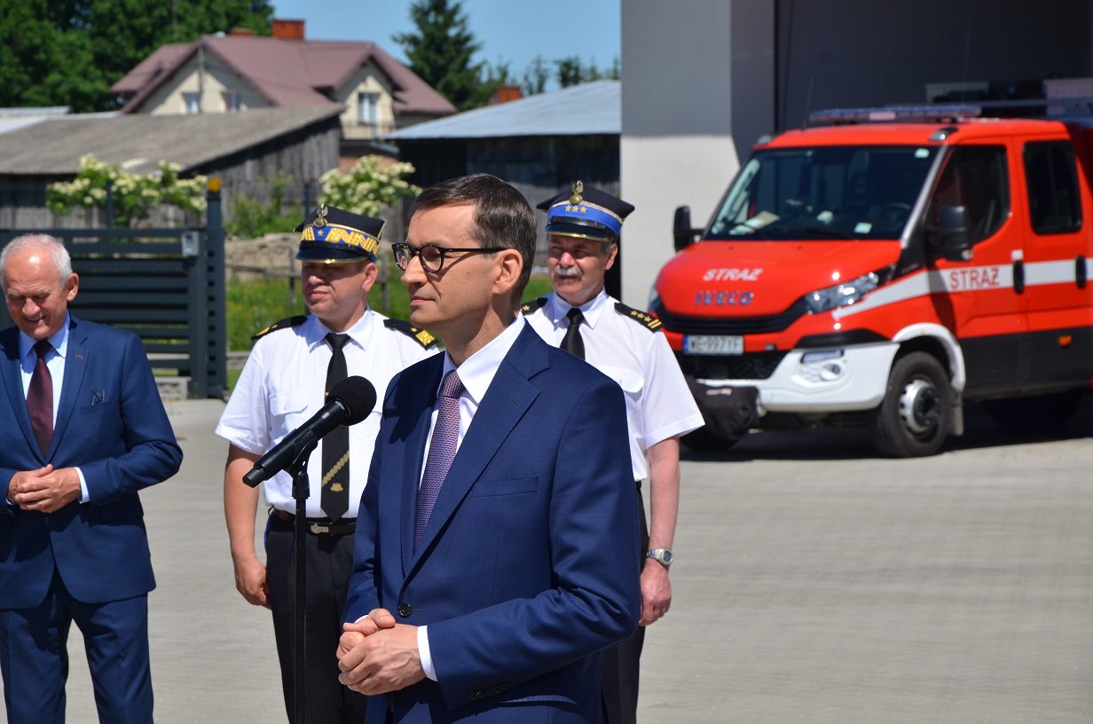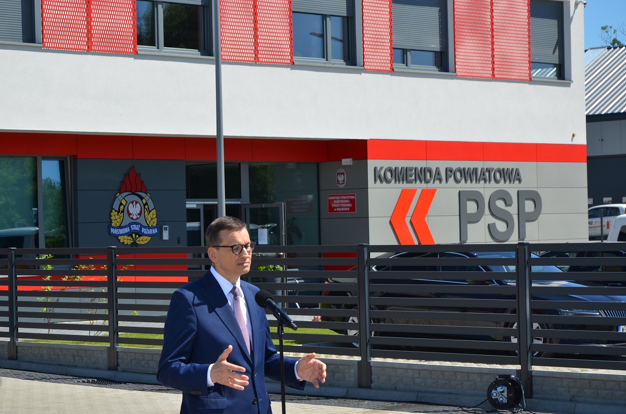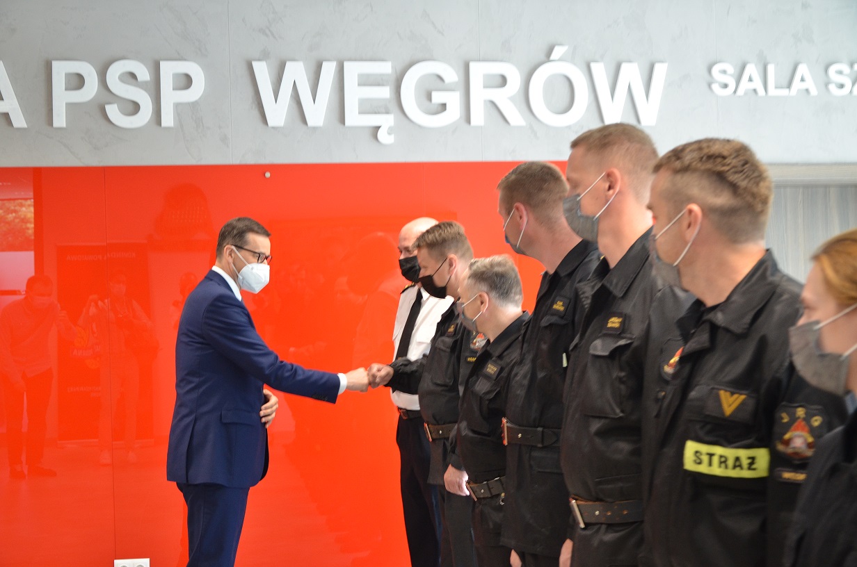 Pan Premier Mateusz Morawiecki z wizytą w KP PSP Węgrów.