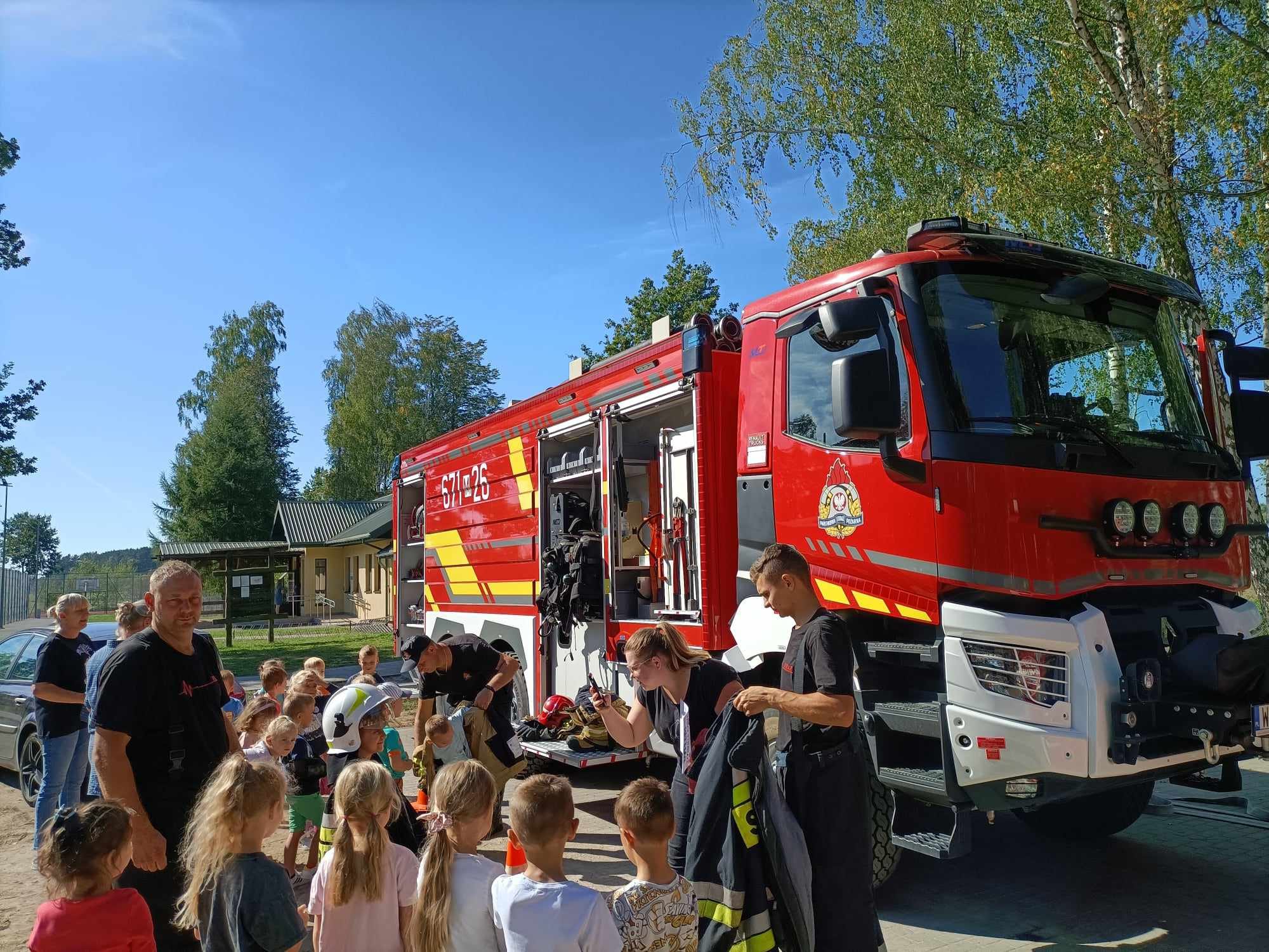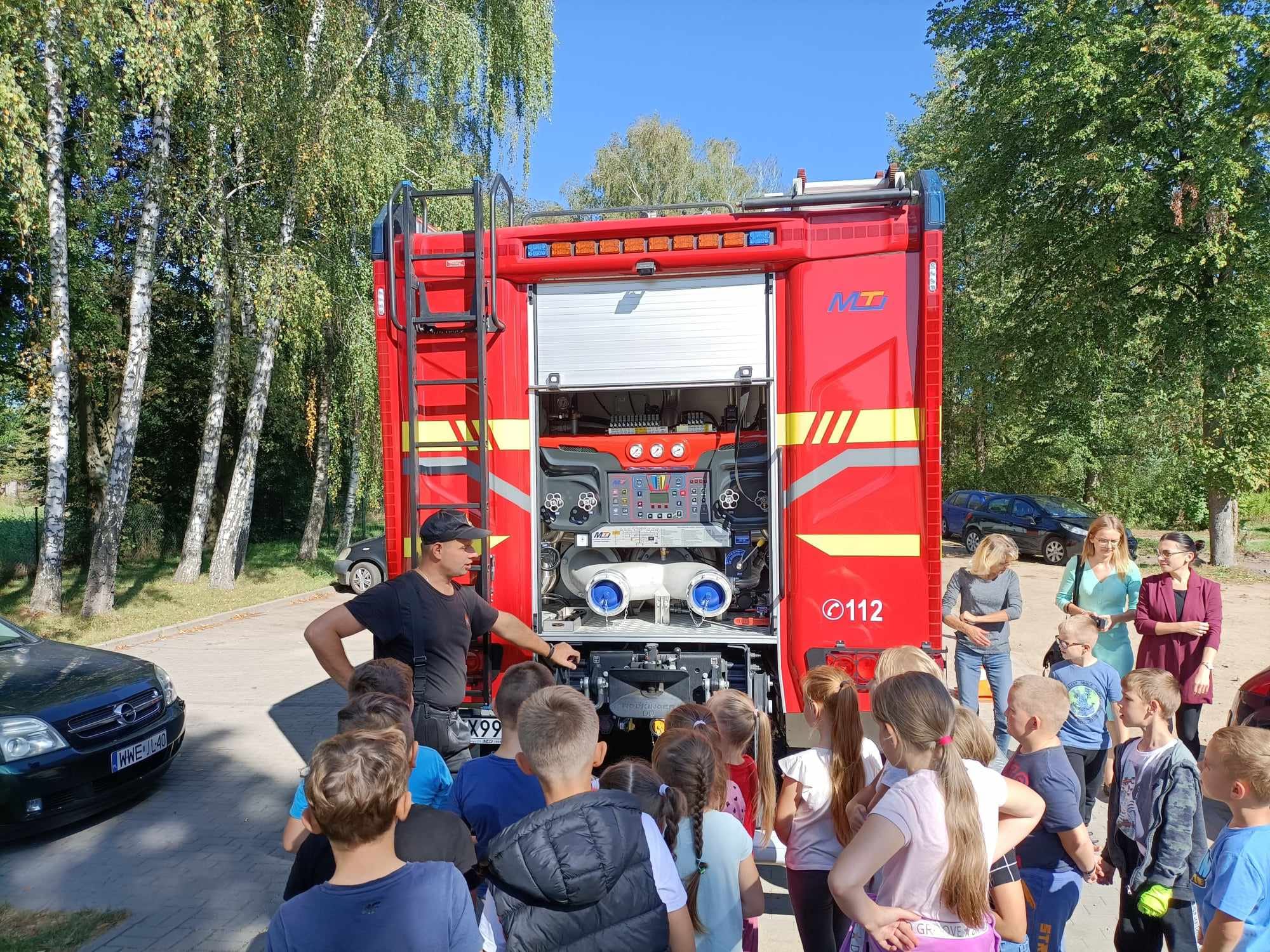 21 września 2023 roku funkcjonariusze z naszej Komendy oraz druhowie z OSP Grygrów odwiedzili uczniów w Szkoły Podstawowej w Grygrowie. Podczas spotkania strażacy przybliżyli dzieciom, na czym polega ich praca. Przypominano podopiecznym w jakich okolicznościach należy wezwać straż pożarną oraz pod jaki numer alarmowy zadzwonić (112) aby wezwać pomoc. Strażacy opowiedzieli o swojej pracy, o tym do jakich zdarzeń są dysponowani, czyli do m.in.: wypadków samochodowych, powodzi, pożarów.. Dzieci mogły przymierzyć ubranie strażackie, zobaczyć specjalistyczny sprzęt oraz odzież, w której strażacy gaszą pożary. Uczniowie szkoły mogli przez chwilę poczuć się tak, jak strażacy podczas akcji. Dzięki takim spotkaniom nasi najmłodsi mogą przypomnieć sobie i utrwalić wiadomości na temat bezpiecznych zachowań i zapobiegania wystąpienia sytuacji zagrażających życiu.