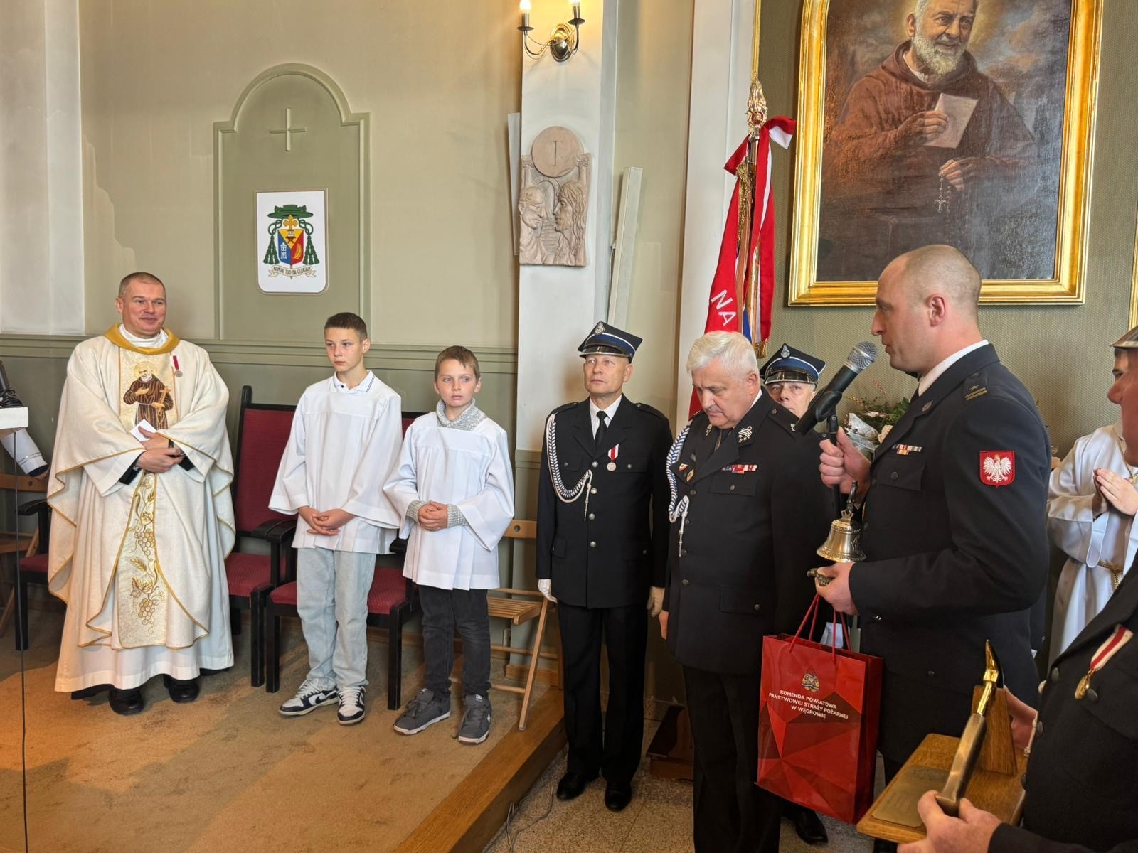 Komendant Powiatowy PSP w Węgrowie oraz druhowie z jednostek OSP dziękowali Księdzu Kapelanowi za lata duchowej opieki, modlitwy i wsparcia w codziennej służbie.