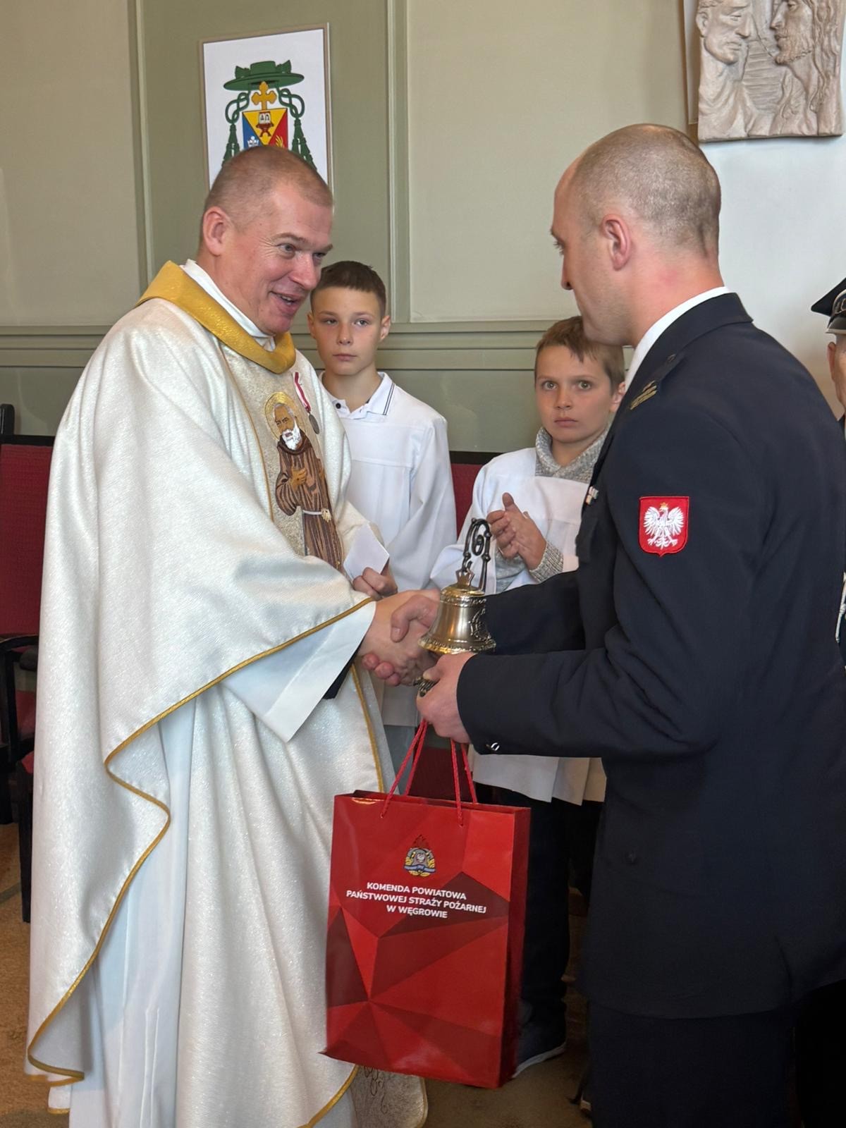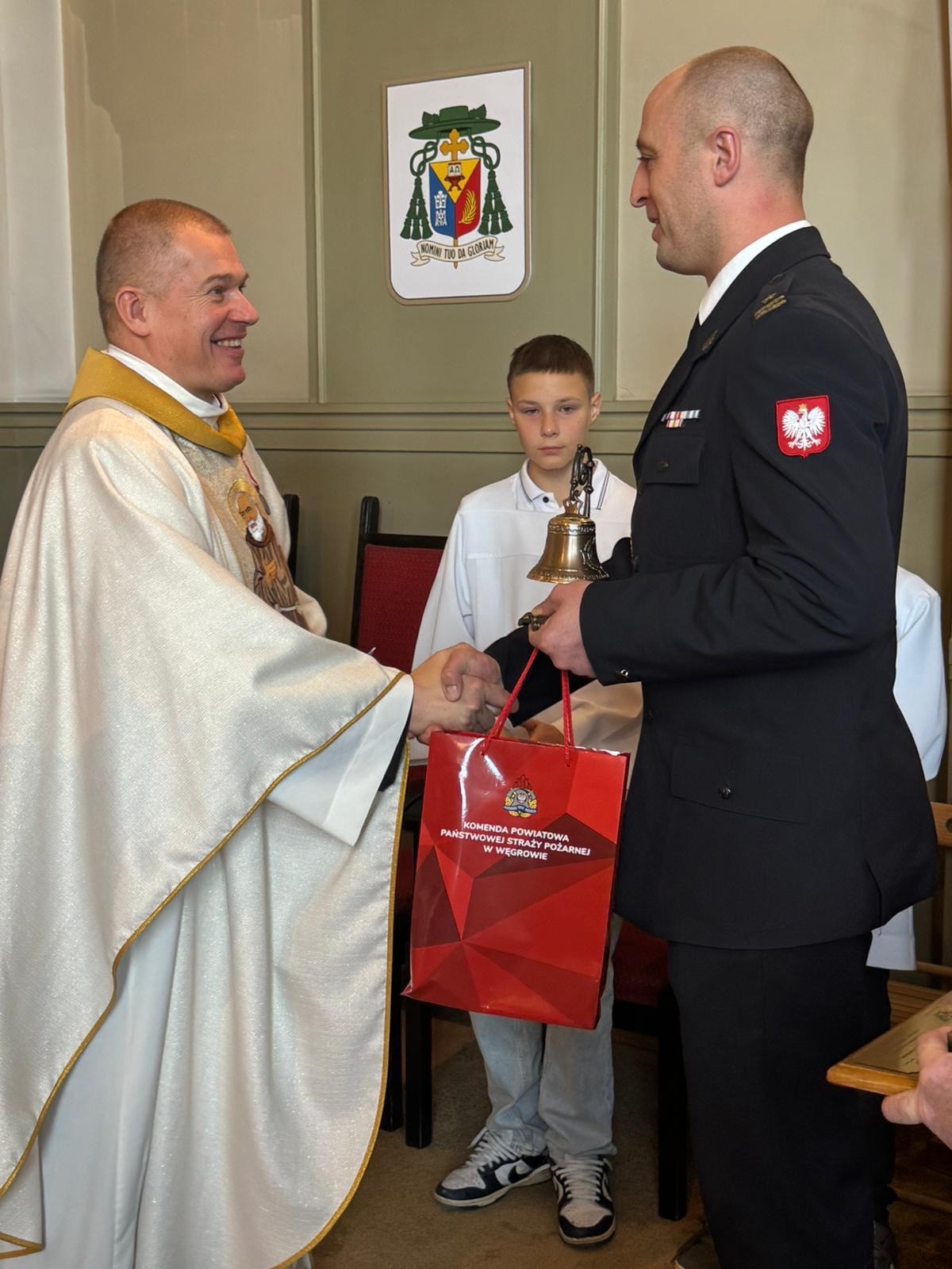 Niech dobry Bóg błogosławi Księdzu w dalszej drodze kapłańskiej. Niech otrzymany dzwon przypomina o strażackiej wspólnocie, wdzięcznej za lata wspólnej modlitwy, obecności i serca oddanego służbie ludziom powiatu węgrowskiego.