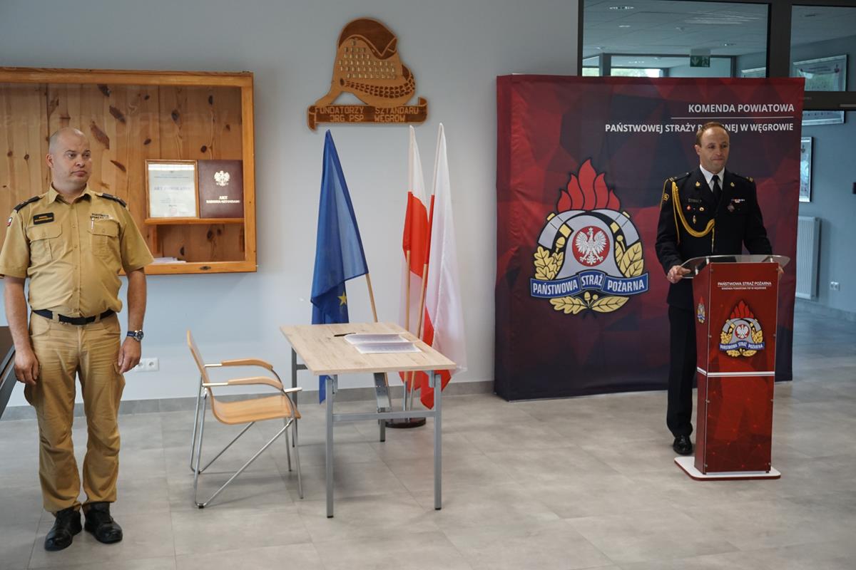 W dniu 26 lipca 2023 r. w Komendzie Powiatowej PSP w Węgrowie strażak Daniel Kowalczyk oraz strażak Michał Jaszczołt w obecności Komendanta Powiatowego mł. bryg. Mateusza Bieniaka, pracowników komendy oraz przybyłej rodziny złożyli uroczyste ślubowanie.