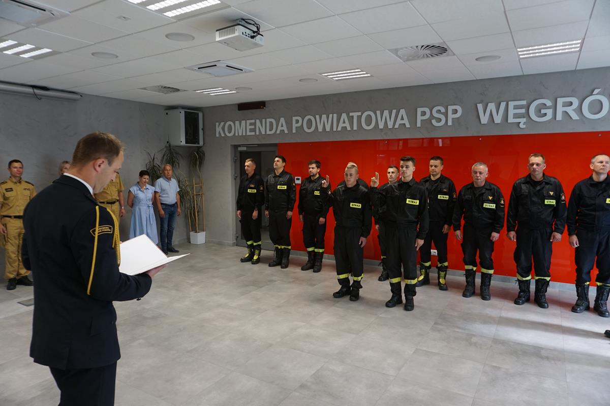 Ślubowanie nowo przyjętych strażaków w KP PSP w Węgrowie
