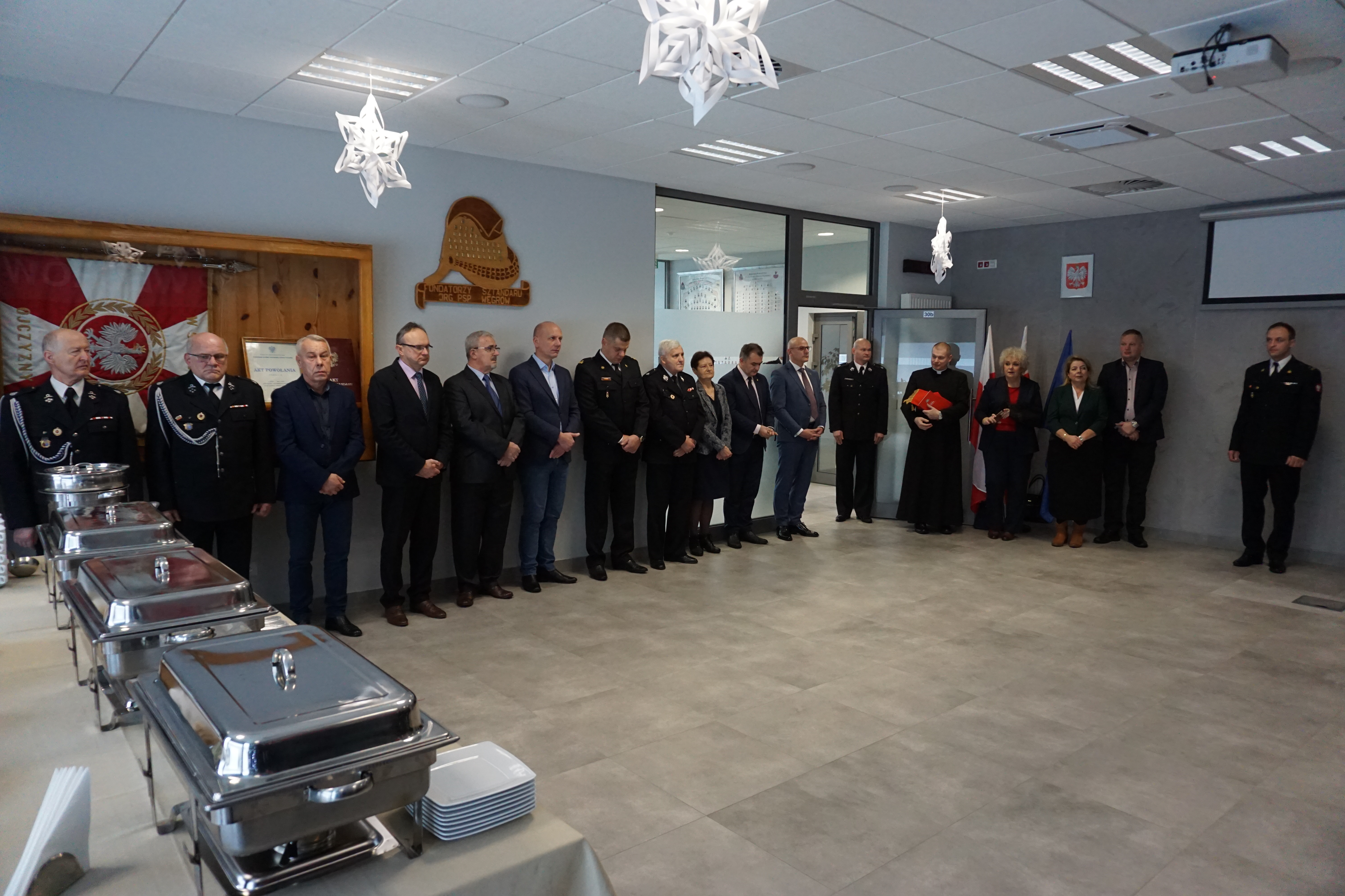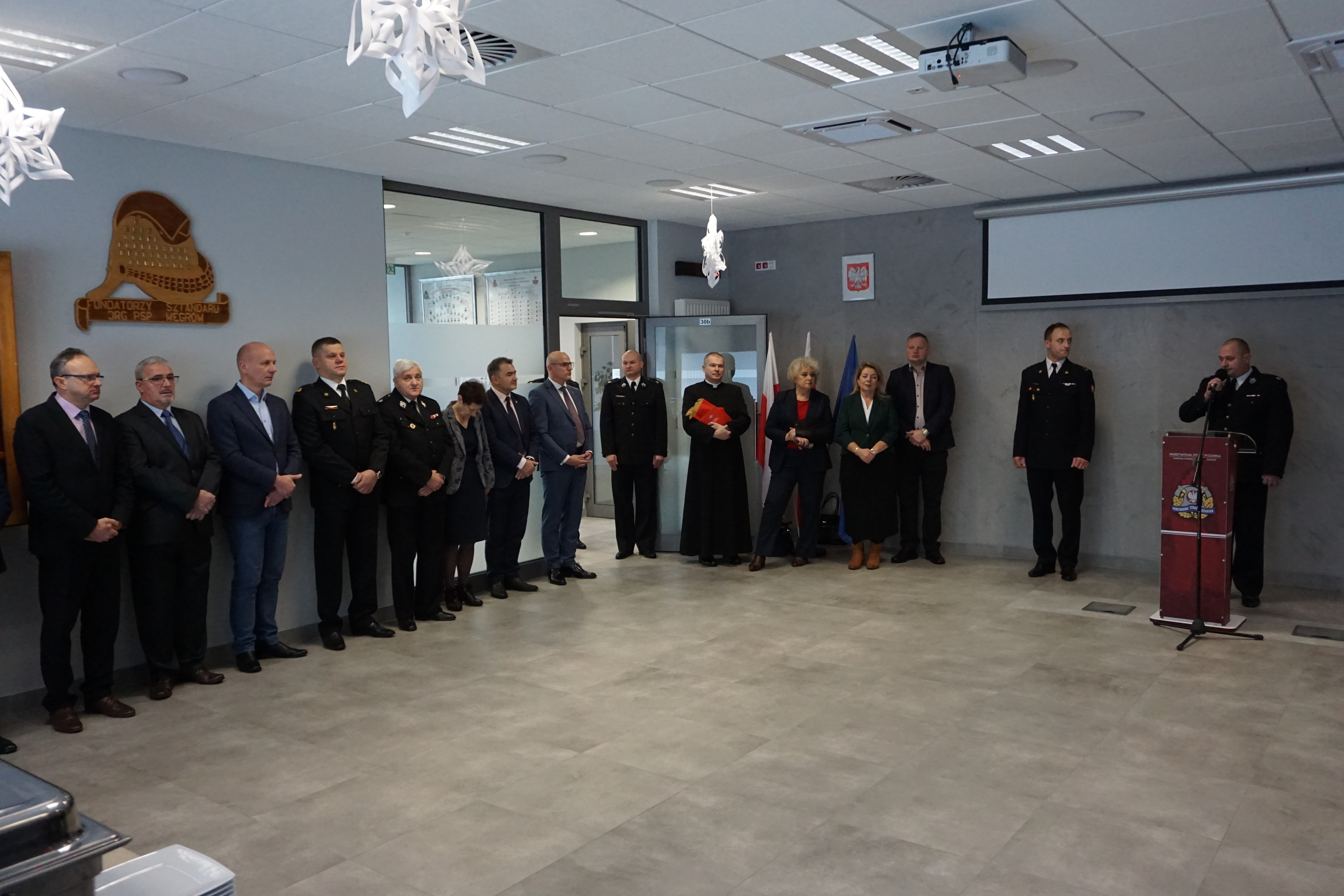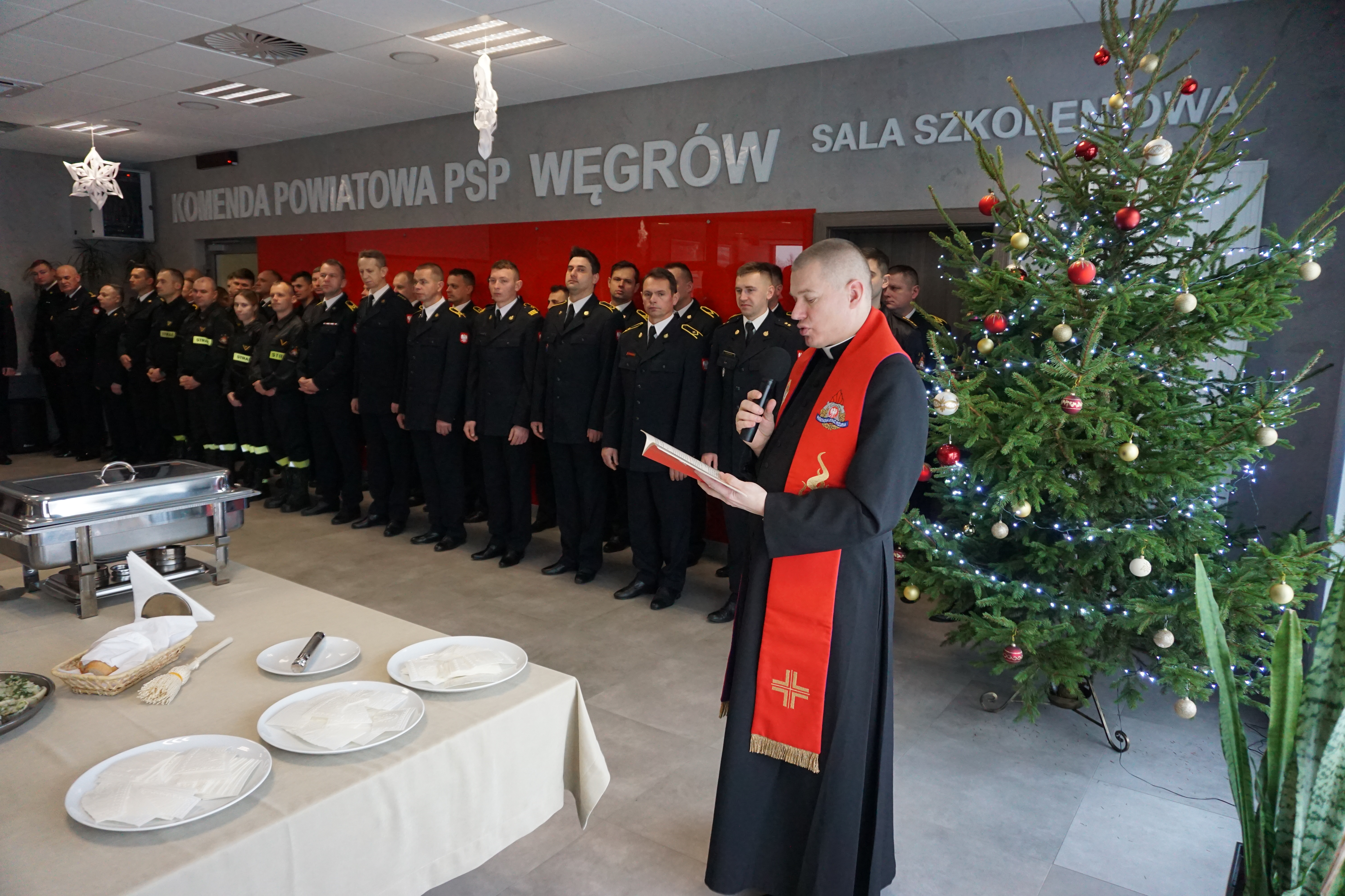Kapelan powiatowy strażaków ks. Andrzej Falkowski odczytał fragment ewangelii o narodzeniu Jezusa, skierował do obecnych życzenia oraz pobłogosławił opłatki.