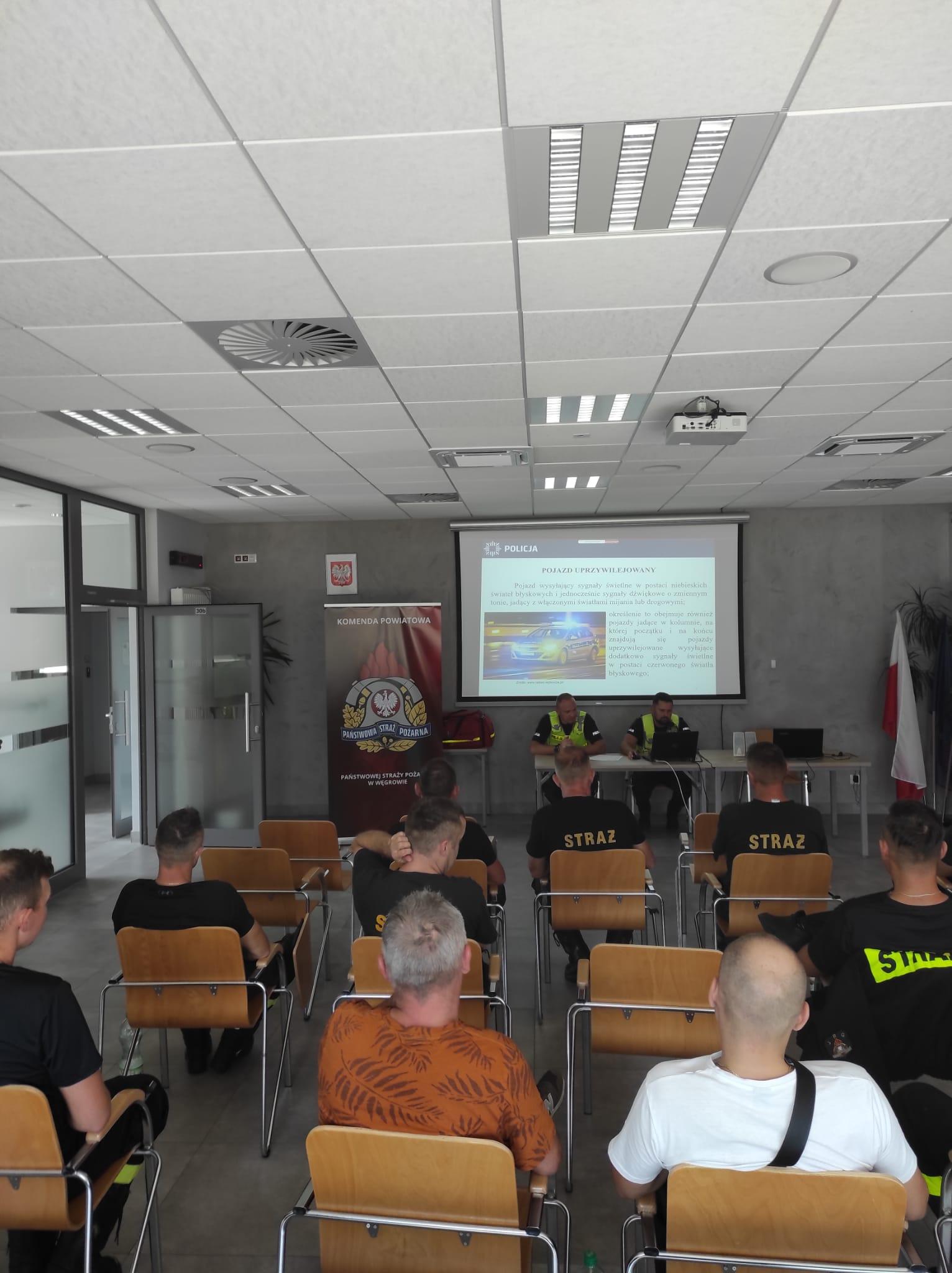 Szkolenie zostało przeprowadzone w formie hybrydowej (stacjonarnie oraz na platformie teams), w którym uczestniczyli pracownicy Komendy Powiatowej Państwowej Straży Pożarnej w Węgrowie oraz chętni druhowie z OSP powiatu węgrowskiego. Na szkoleniu poruszone zostały przepisy dotyczące wykorzystania pojazdów uprzywilejowanych, zasady bezpiecznej jazdy po drogach publicznych, jak również kwestie przestrzegania przepisów w ruchu drogowym.