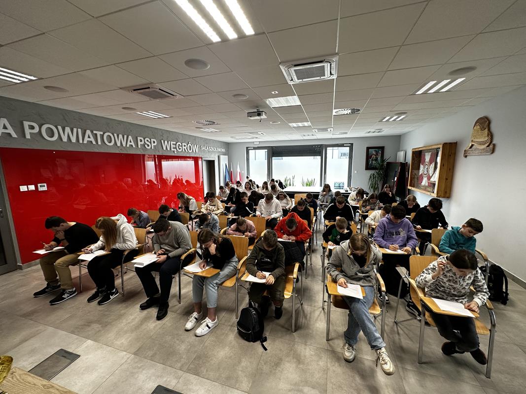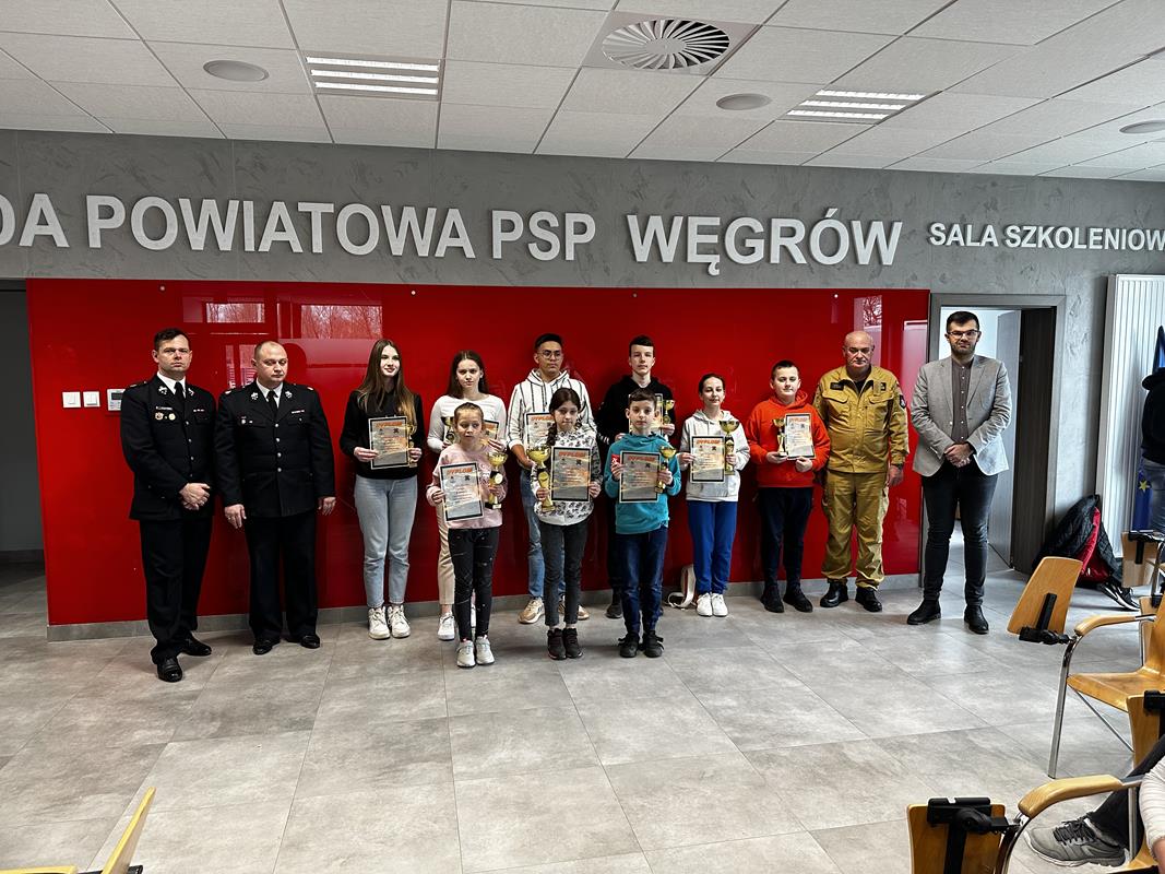We wtorek 28.03.2023 roku w siedzibie Komendy Powiatowej w Węgrowie odbyły się Eliminacje Powiatowe Ogólnopolskiego Turnieju Wiedzy Pożarniczej „Młodzież Zapobiega Pożarom”. Organizatorami byli: Zarząd Oddziału Powiatowego ZOSP RP w Węgrowie wspólnie z Komendą Powiatową PSP. W eliminacjach udział wzięło łącznie 45 osób w trzech kategoriach wiekowych: