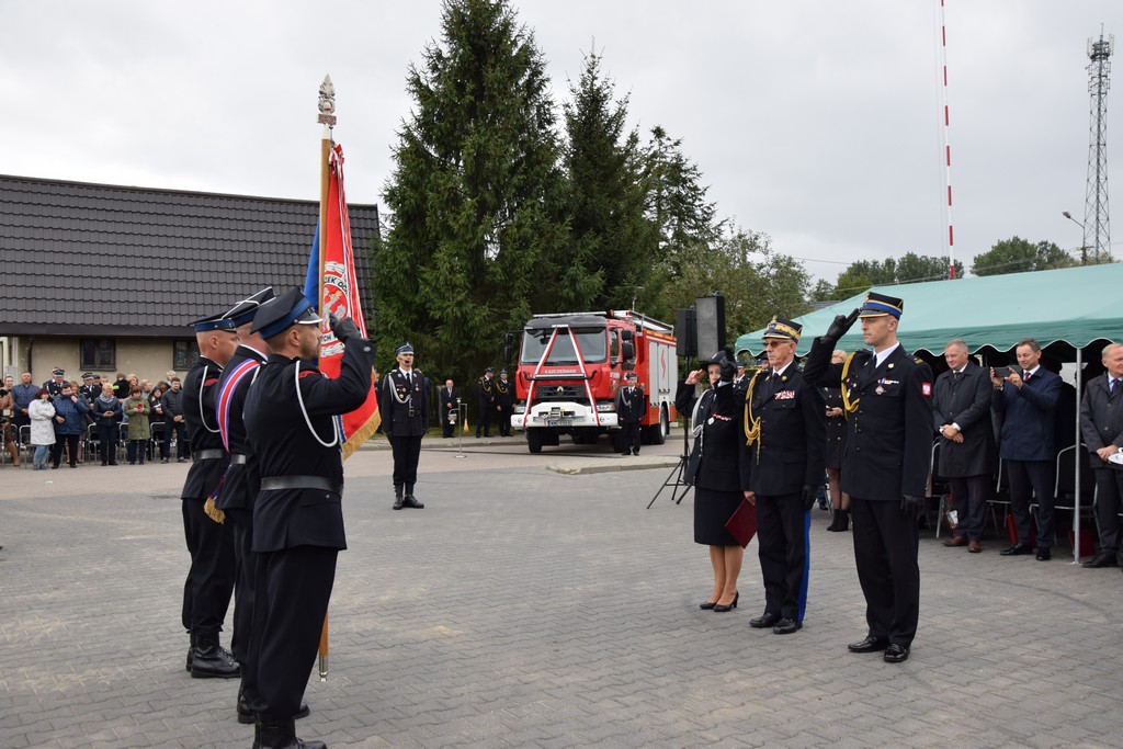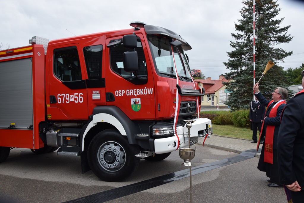 Kolejnym etapem uroczystości było poświecenie i przekazanie samochodu ratowniczo-gaśniczego. Mł. bryg. Mateusz Bieniak występujący w imieniu Mazowieckiego Komendanta Wojewódzkiego Państwowej Straży Pożarnej nadbrygadiera Jarosława Nowosielskiego przekazał na ręce Prezesa OSP w Grębkowie akt przekazania pojazdu.