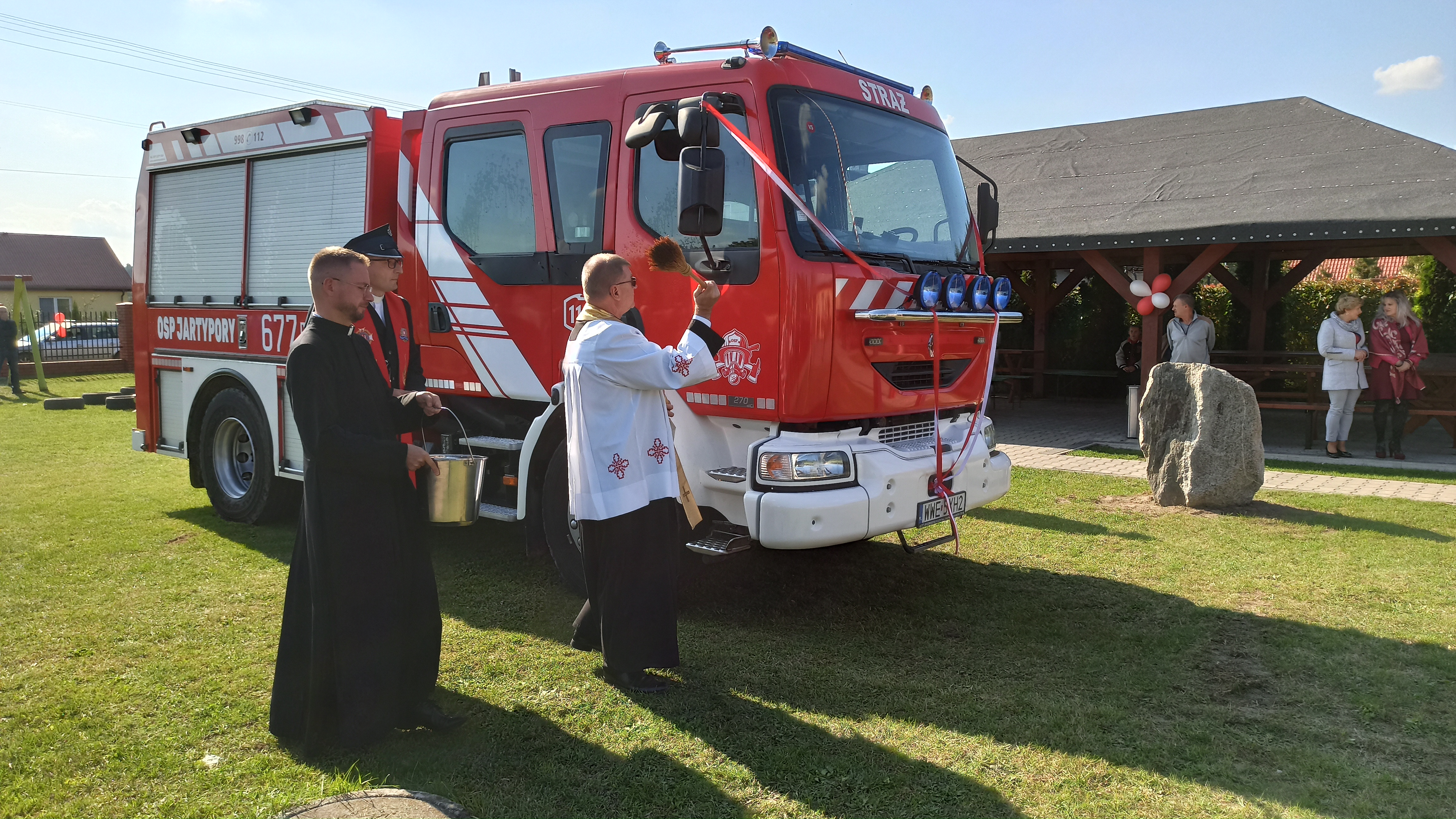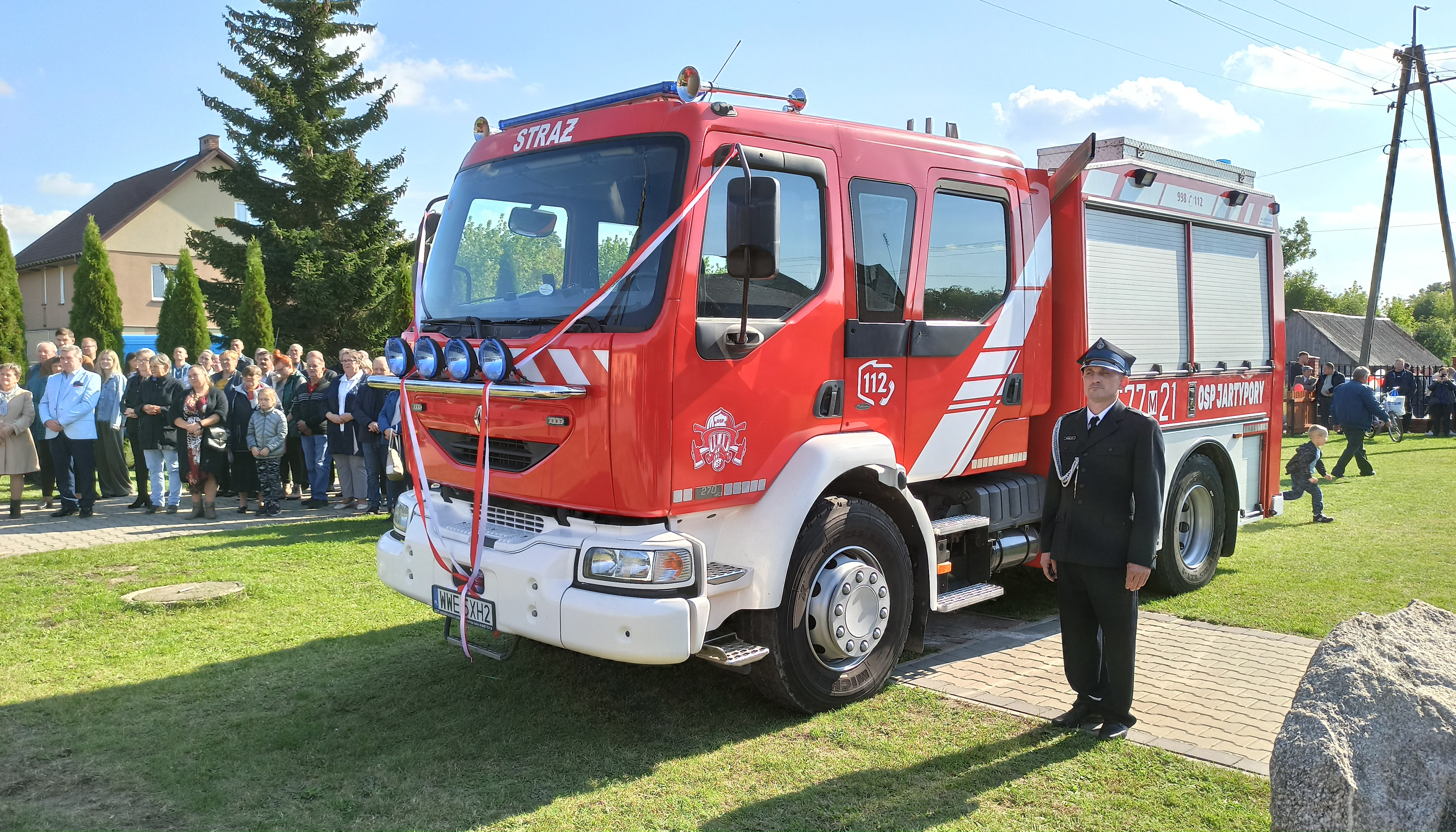 Uroczystość z przekazania nowo zakupionego samochodu ratowniczo-gaśniczego jednostce Ochotniczej Straży Pożarnej w Jartyporach