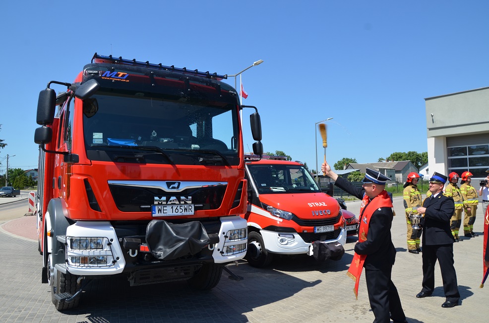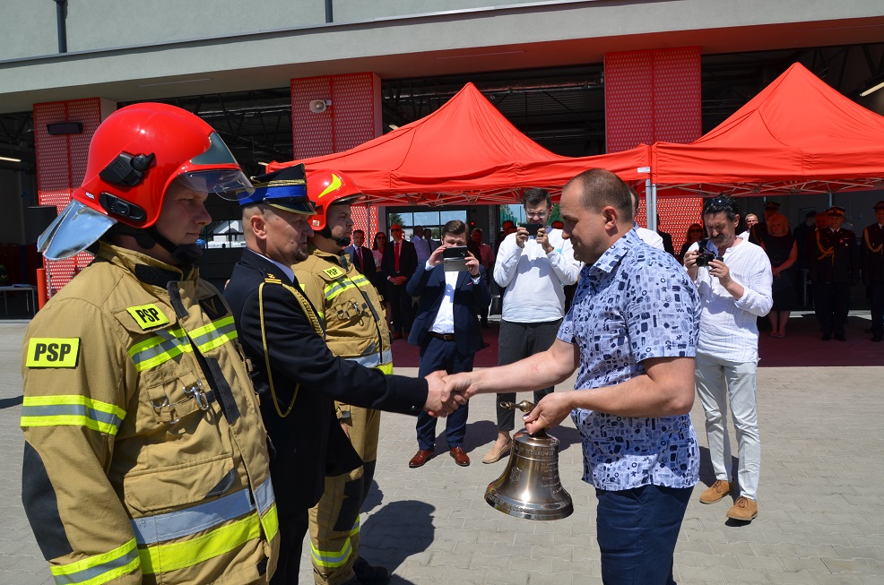 Kolejnym punktem uroczystości było poświęcenie pojazdów pożarniczych, nowego obiektu Komendy Powiatowej i Jednostki Ratowniczo-Gaśniczej PSP oraz przekazanie przez Pana Antoniego Kruszewskiego ludwisarza z Węgrowa pamiątkowego dzwonu.