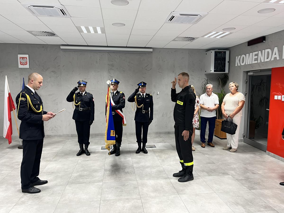 W dniu 03 września 2025 r. w Komendzie Powiatowej Państwowej Straży Pożarnej w Węgrowie odbyła się uroczysta zbiórka z okazji przyjęcia nowego strażaka Sebastiana Protaziuka w szeregi Jednostki Ratowniczo Gaśniczej Państwowej Straży Pożarnej w Węgrowie.