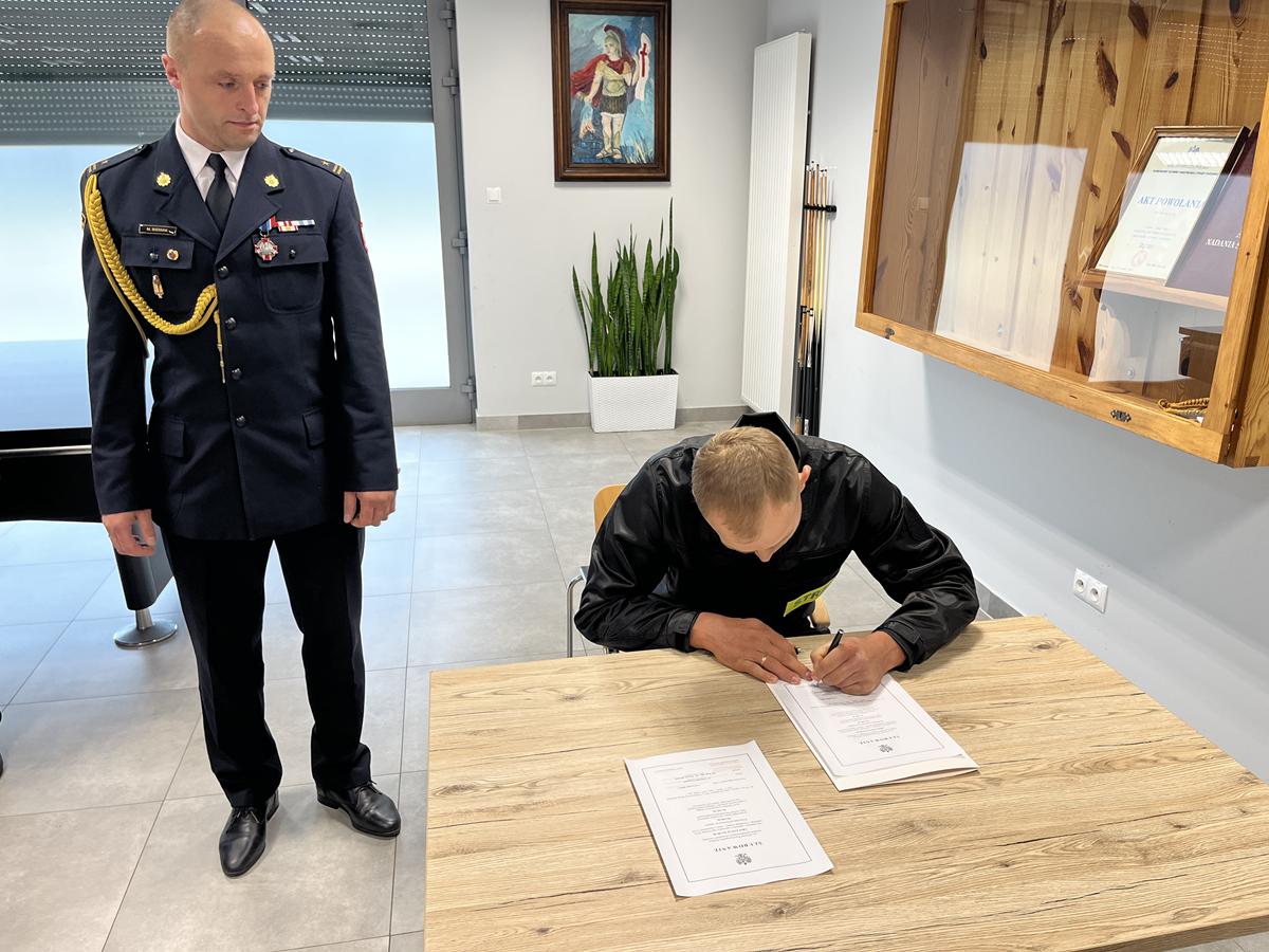 Po zaprzysiężeniu nowoprzyjęty funkcjonariusz podpisał Akt Ślubowania.