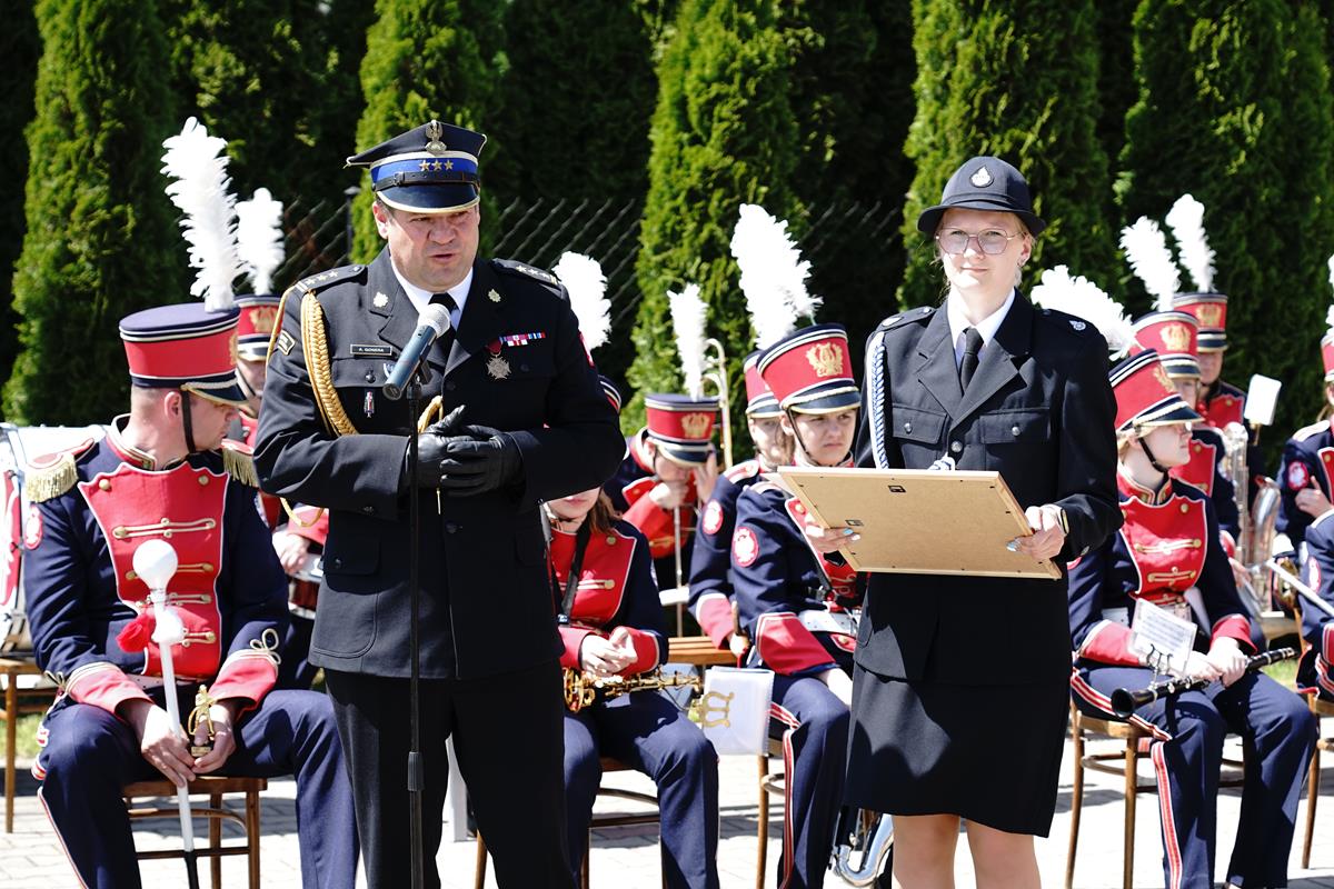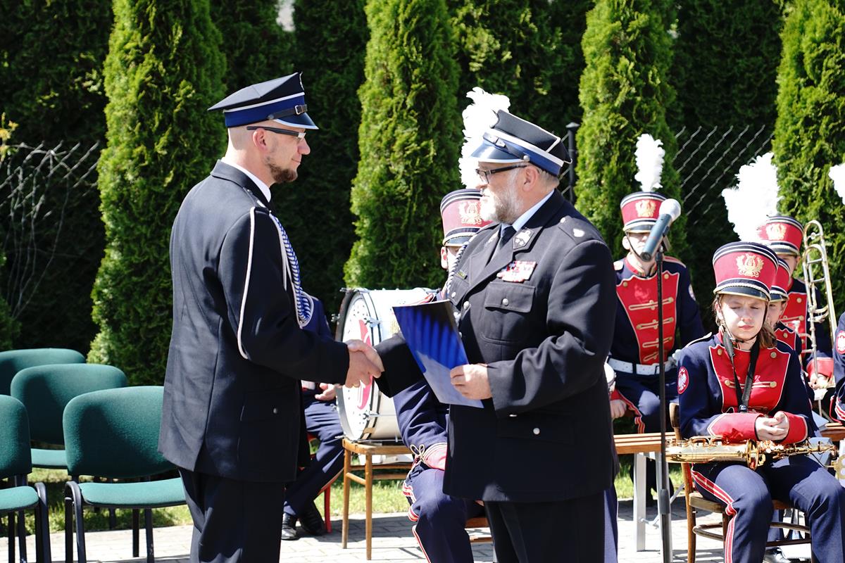 Na zakończenie zaproszeni goście zabrali glos, dziękując druhnom i druhom za ratowanie życia zdrowia i mienia oraz ich działalność na rzecz lokalnej społeczności. Zastępca Mazowieckiego Komendanta Wojewódzkiego PSP st.bryg. Artur Gonera w swoim przemówieniu podziękował druhom, podkreślając ich zaangażowanie w codzienną służbę oraz życzył wszelkiej pomyślności strażakom i ich rodzinom. Na zakończenie st. bryg. Artur Gonera wręczył Prezesowi OSP pamiątkowy obraz przedstawiający Katedrę św. Michała Anioła i św. Floriana w Warszawie.