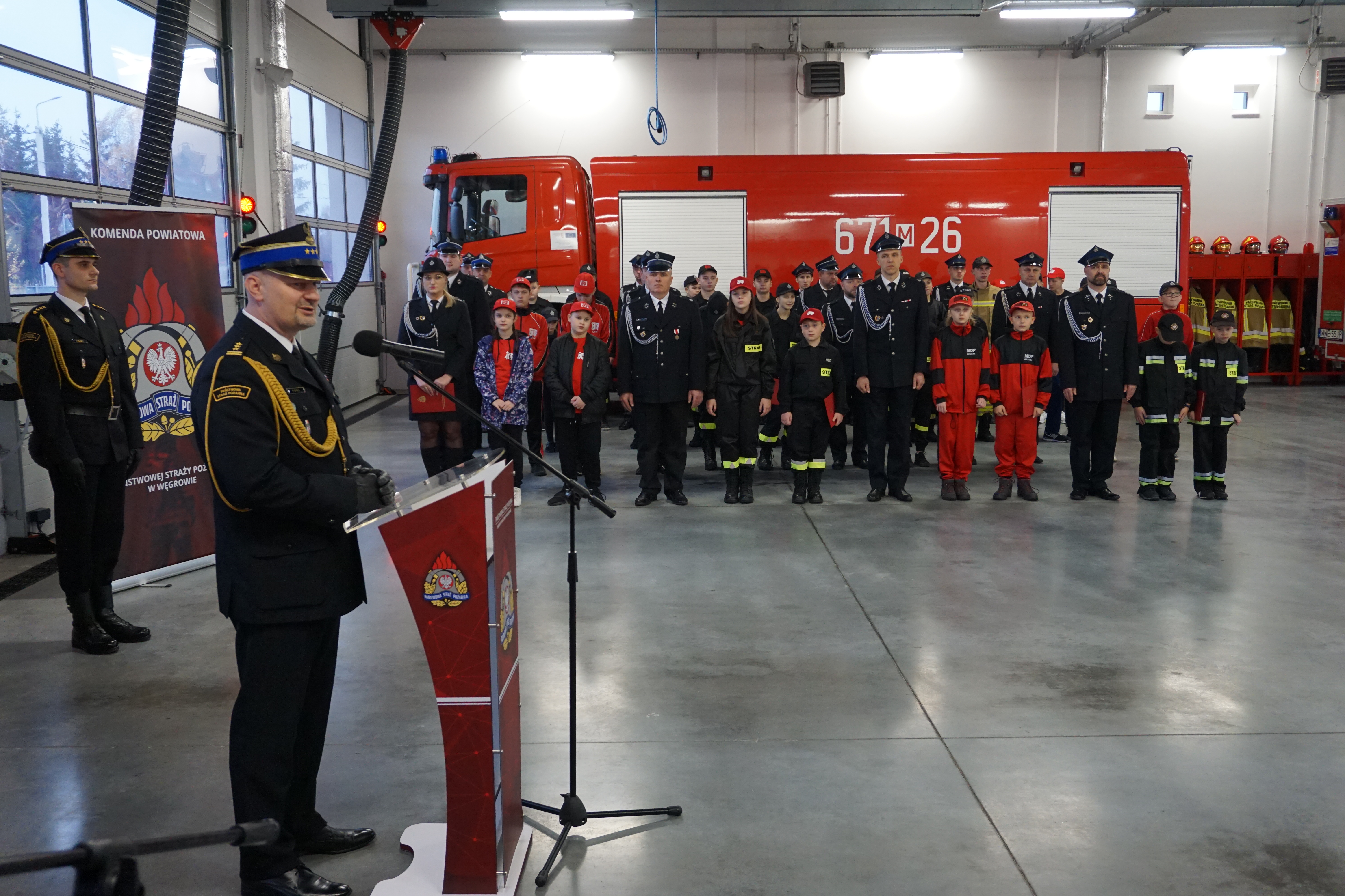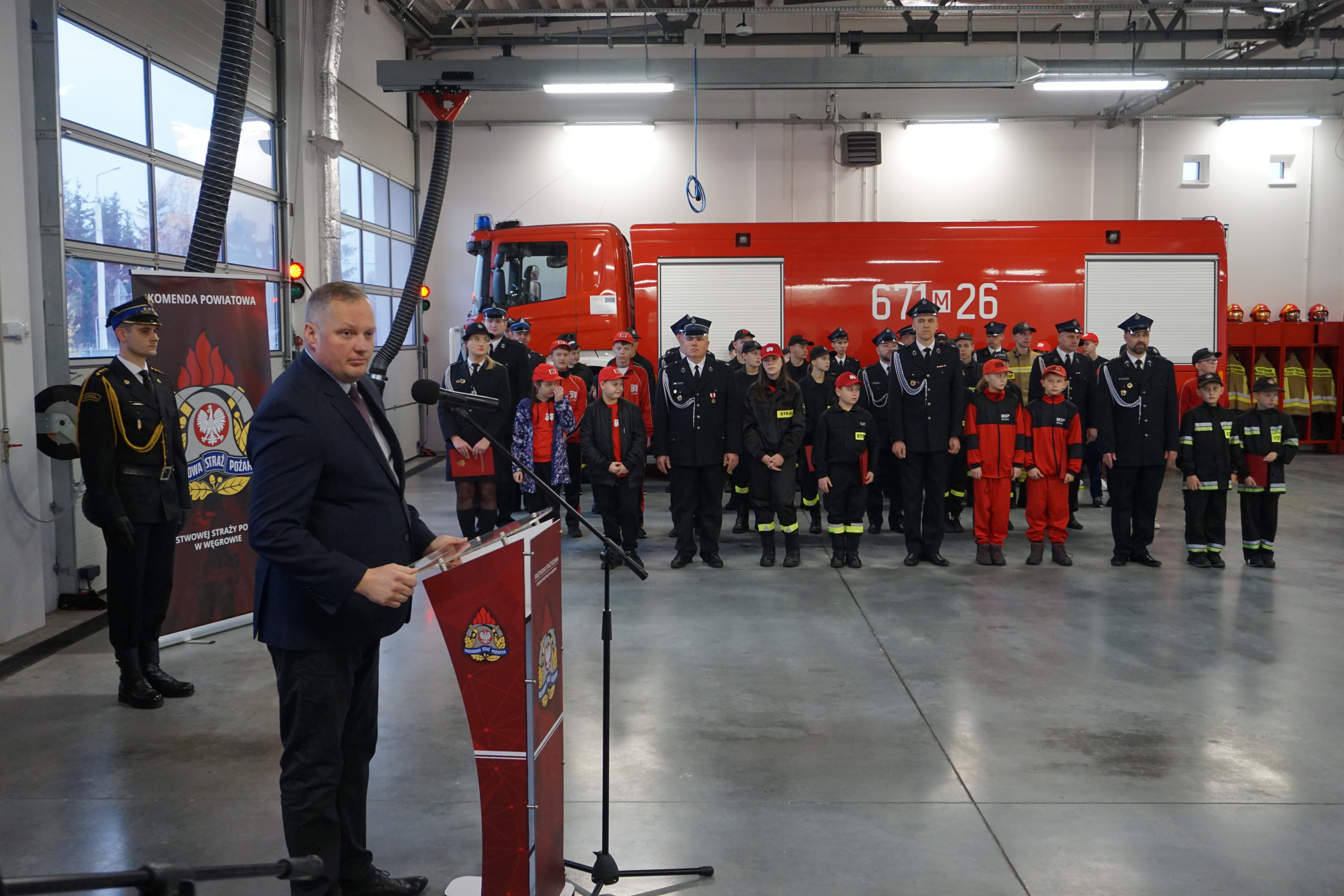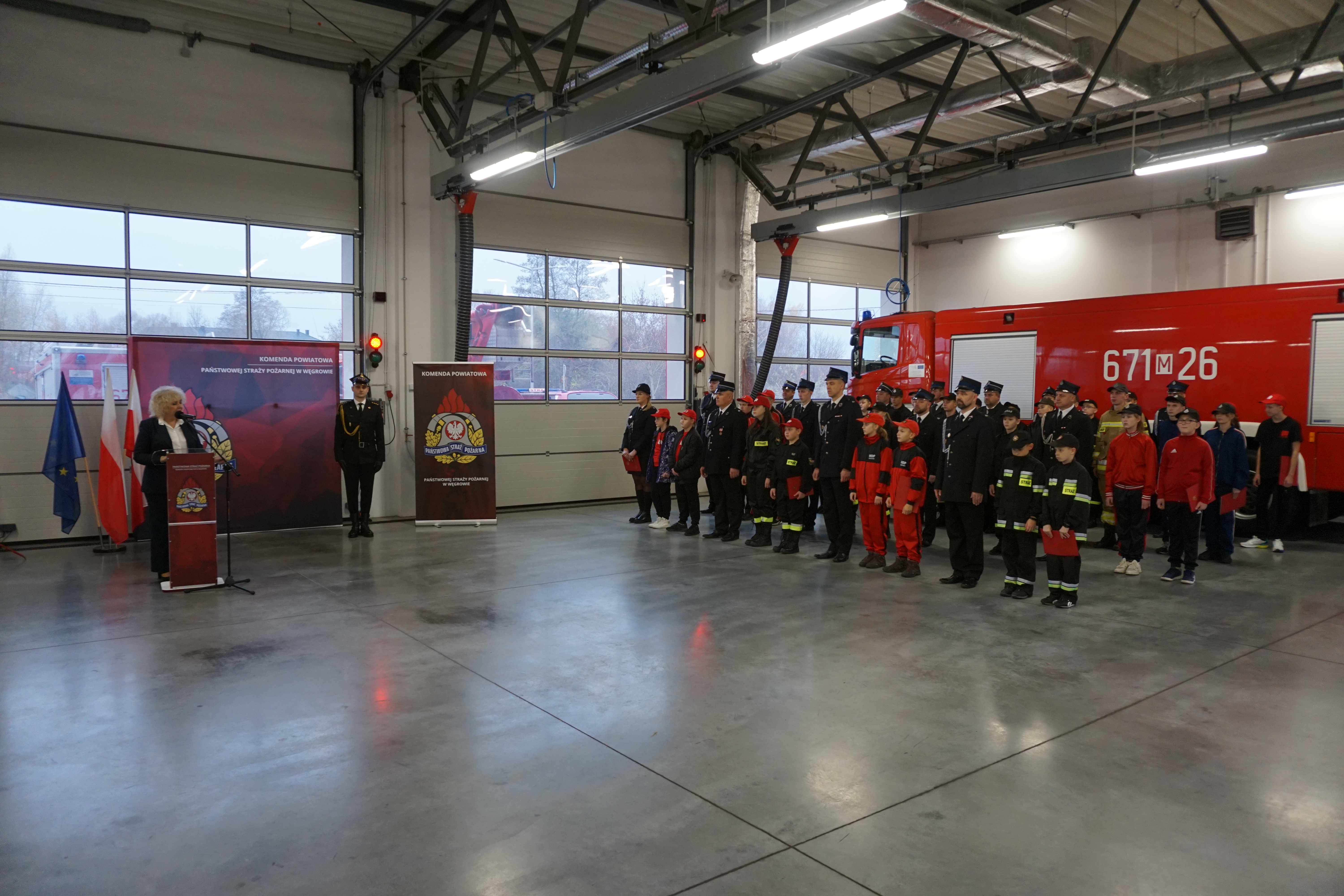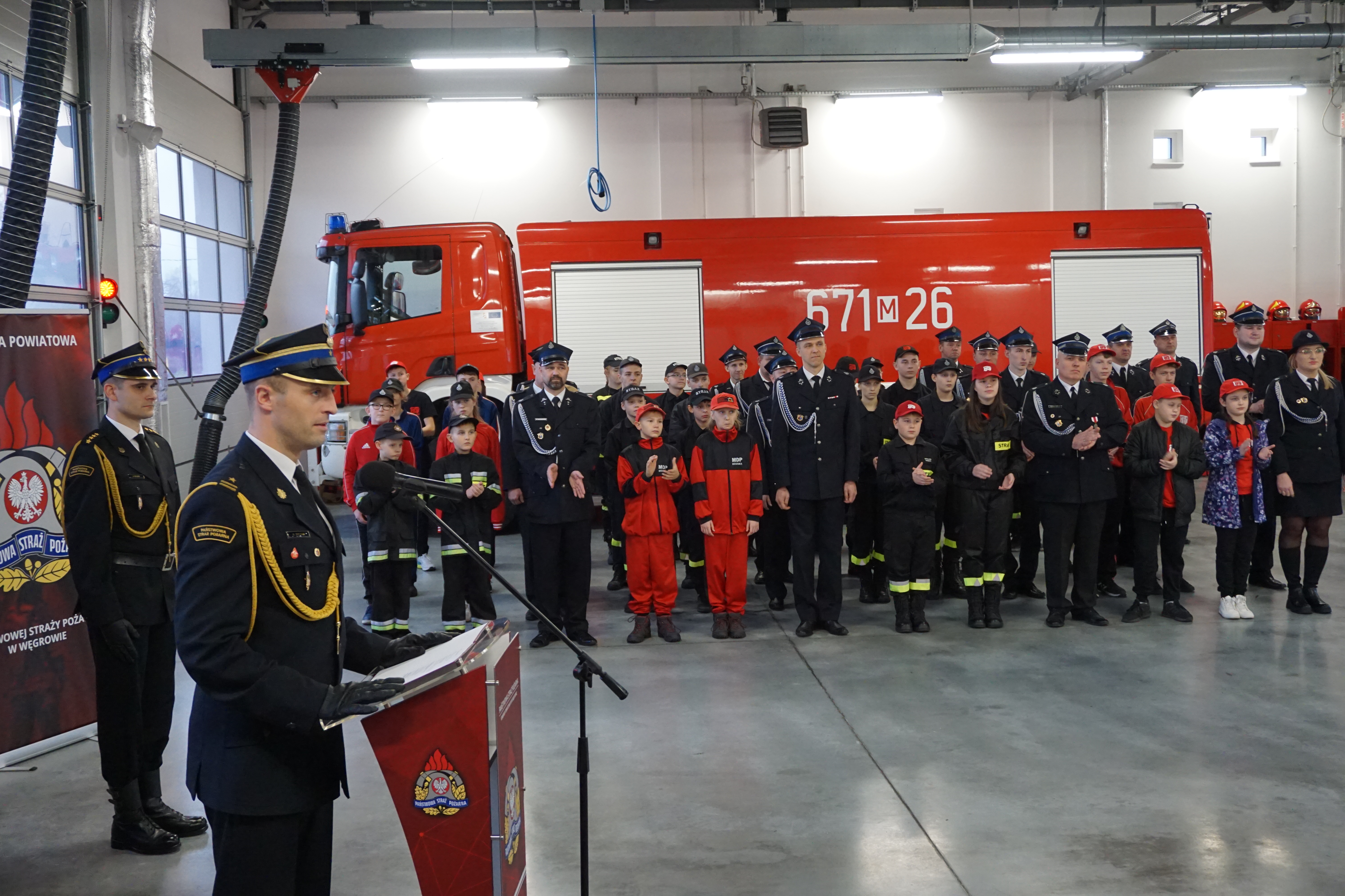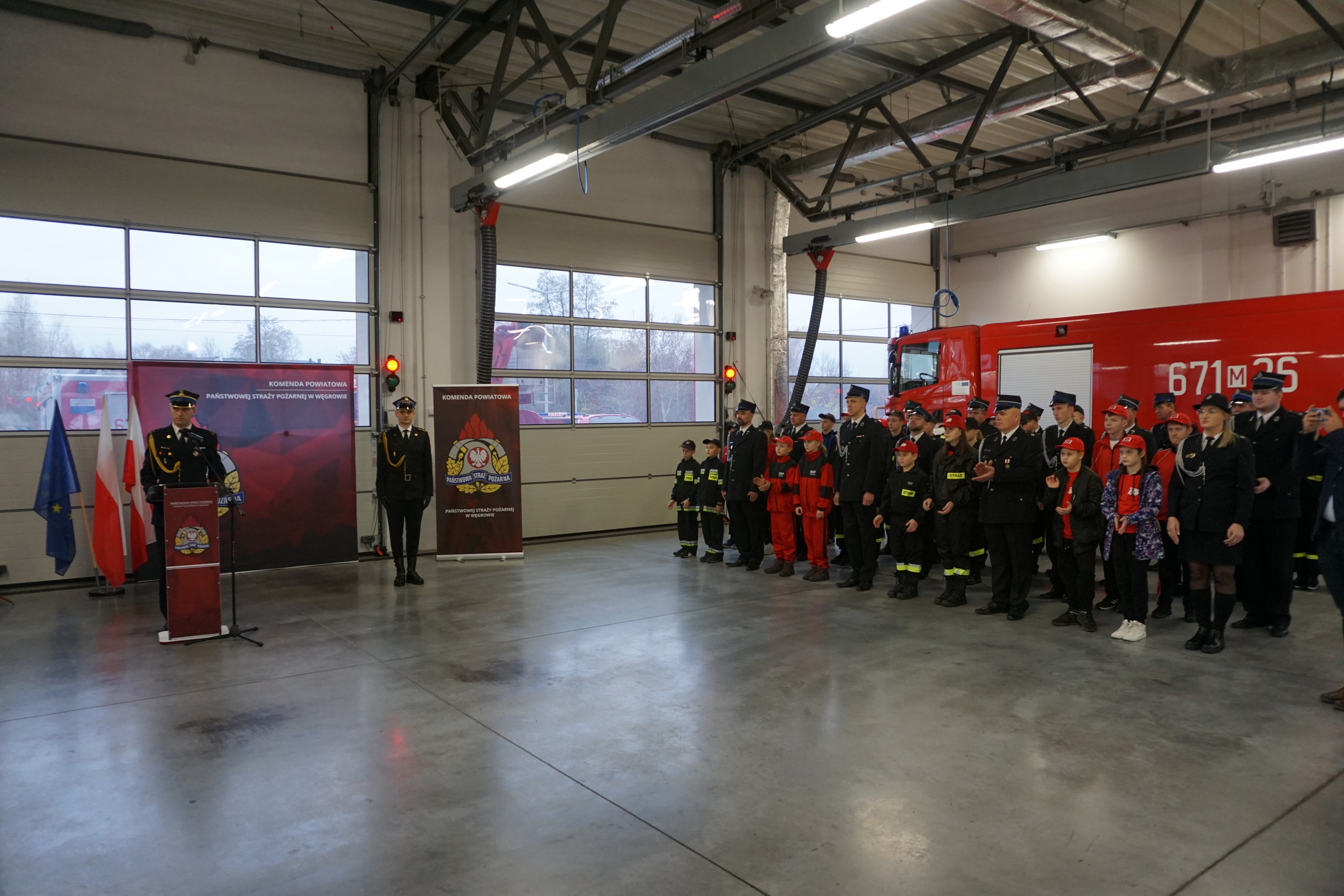 Wydarzenie rozpoczęło się złożeniem meldunku st. bryg. Tomaszowi Cybul Zastępcy Mazowieckiego Komendanta Wojewódzkiego PSP. W dalszej kolejności wprowadzono poczet sztandarowy Komendy, podniesiono flagę na maszt i odegrany został hymn państwowy. Zebranych gości przywitał mł. bryg. Mateusz Bieniak Komendant Powiatowy PSP w Węgrowie.