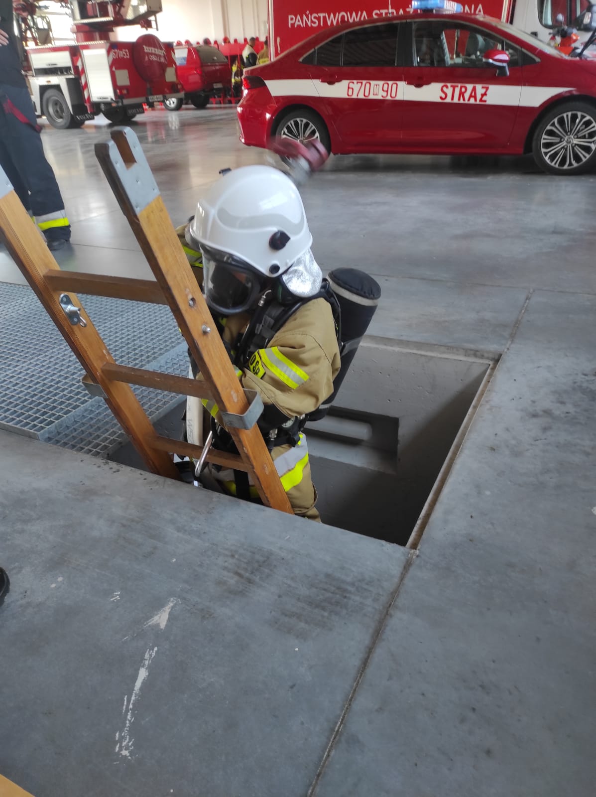 Zajęcia teoretyczne i praktyczne prowadzili funkcjonariusze Komendy Powiatowej Państwowej Straży Pożarnej zgodnie z programem nauczania, który zawierał m.in. zajęcia teoretyczne, praktyczne, test w komorze dymowej oraz szkolenie ze współdziałania