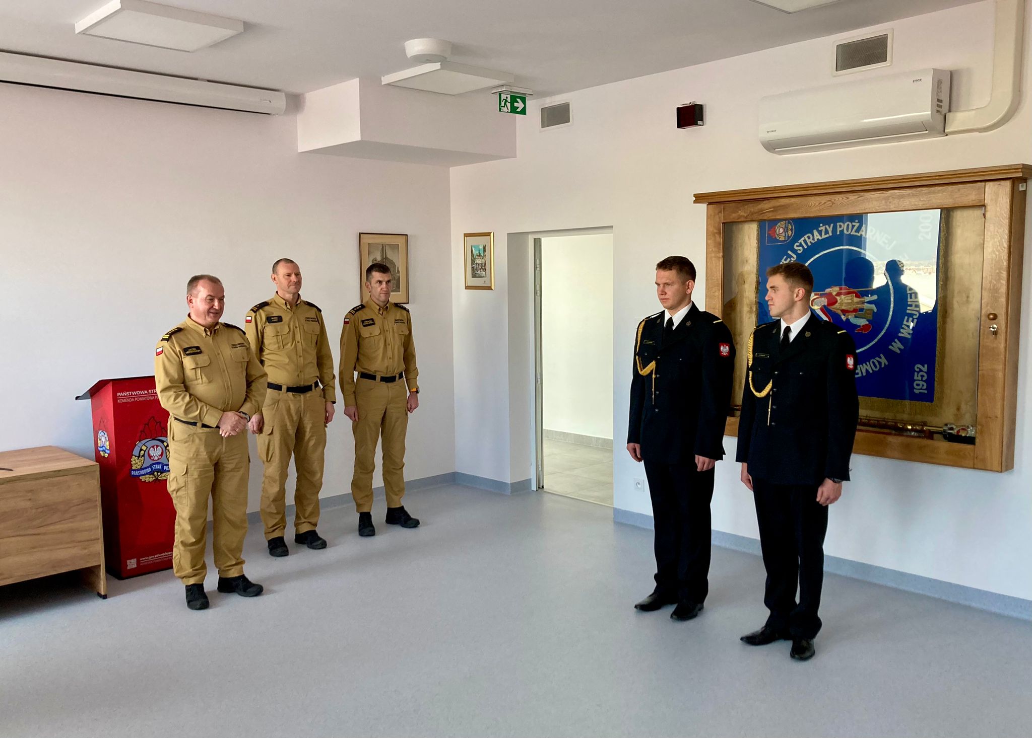 Komendant Powiatowy Państwowej Straży Pożarnej w Wejherowie - st. bryg. Jacek Niewęgłowski wraz z zastępcami z okazji Narodowego Święta Niepodległości wręczył funkcjonariuszom tutejszej komendy akty nadania wyższych stopni służbowych w korpusie szeregowym.