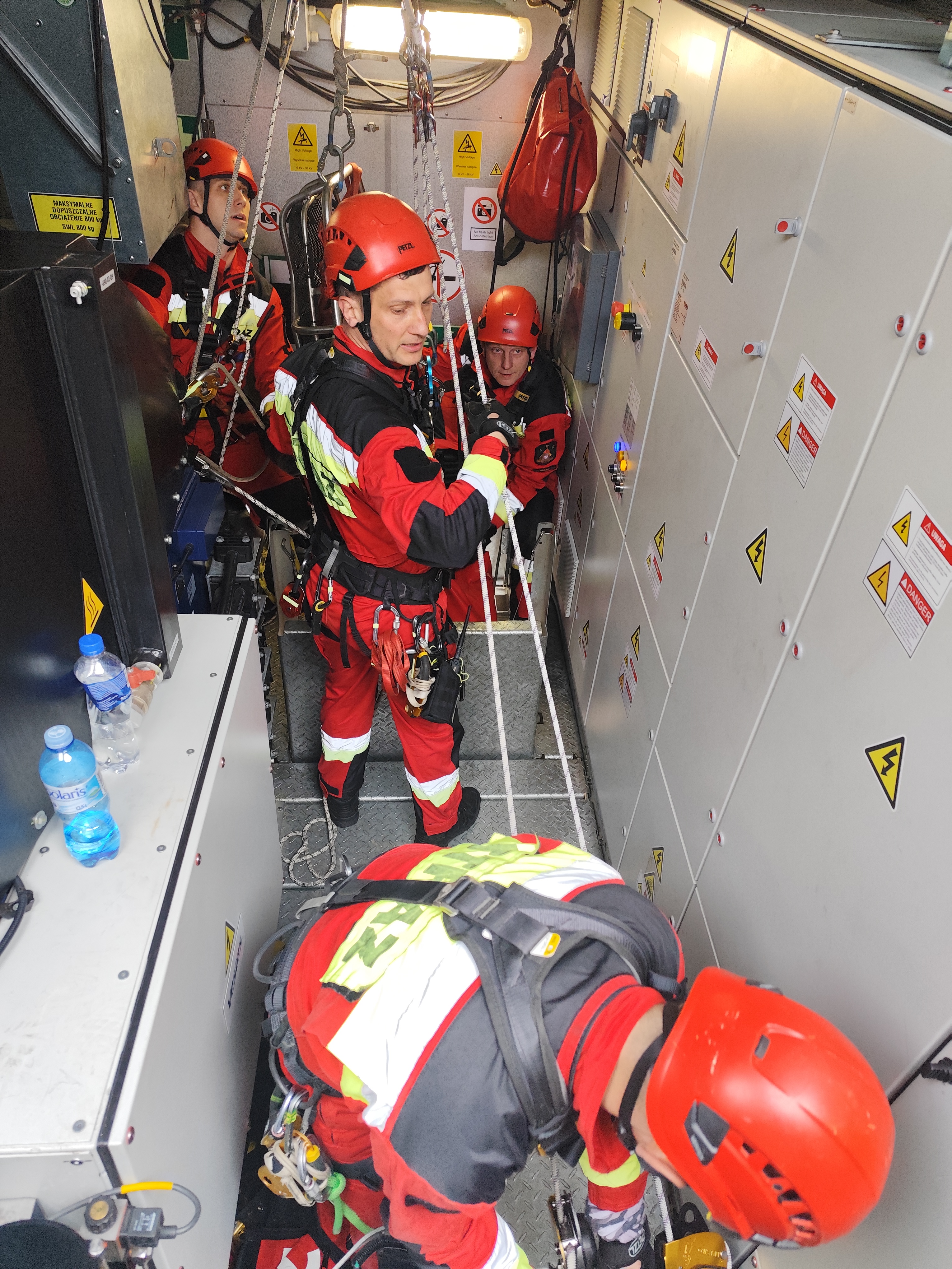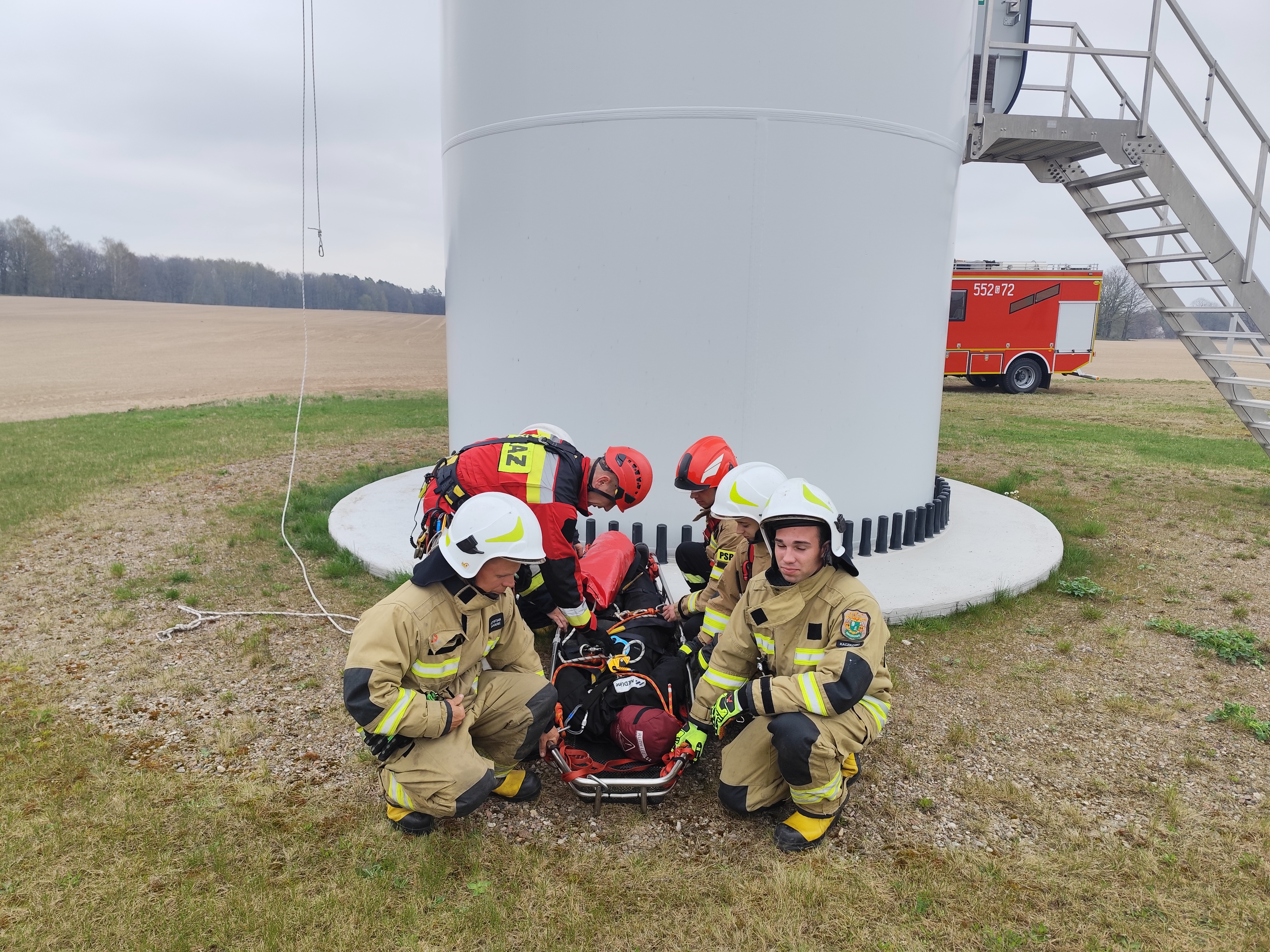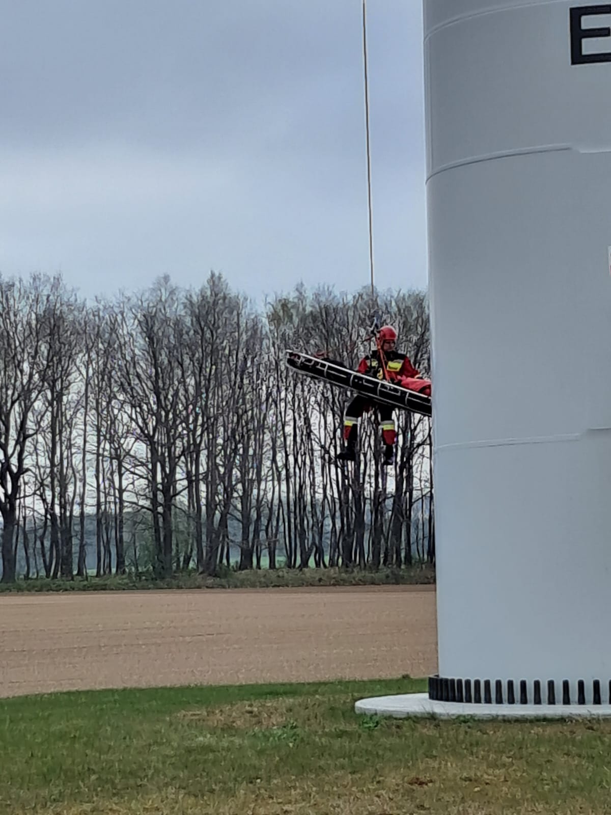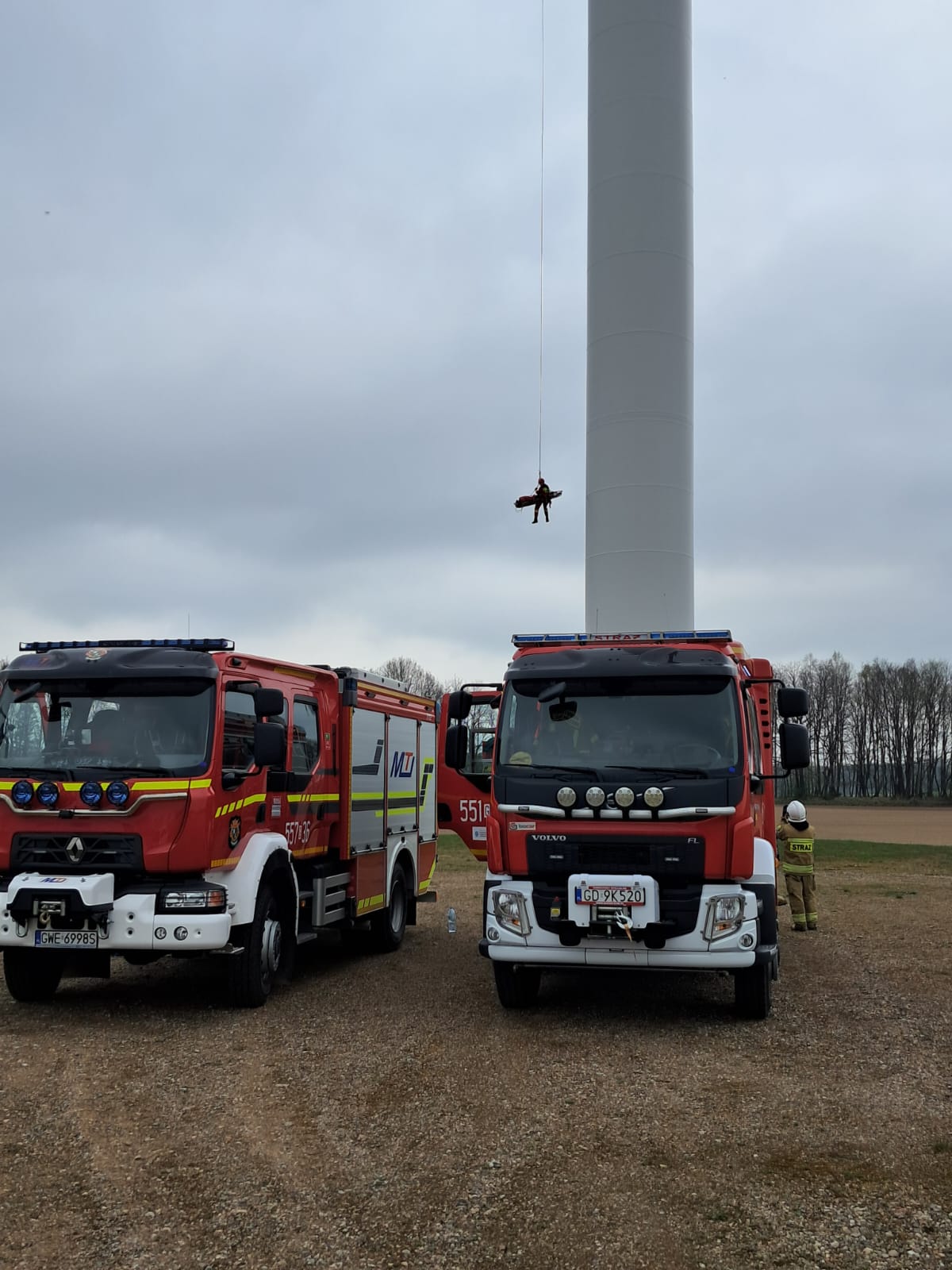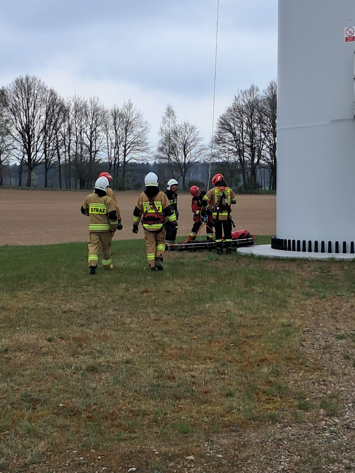 Ratownicy wchodzący w skład Specjalistycznej Grupy Ratownictwa Wysokościowego SGRW Rumia odbyli cykl ćwiczeń doskonalących techniki ratownictwa wysokościowego w zakresie prowadzenia działań ratowniczych, m. in.: doskonalenie technik zjazdowych oraz ewakuacja z obiektów technicznych - turbin wiatrowych. Ćwiczenia odbywały sie w terminie 14-16 kwietnia 2025r. w miejscowości Pużyce. Podczas ćwiczeń zastęp z JRG 1 Wejherowo oraz jednostki OSP z terenu Gminy Łęczyce miały równiez możliwość zapoznania sie z obiektem.