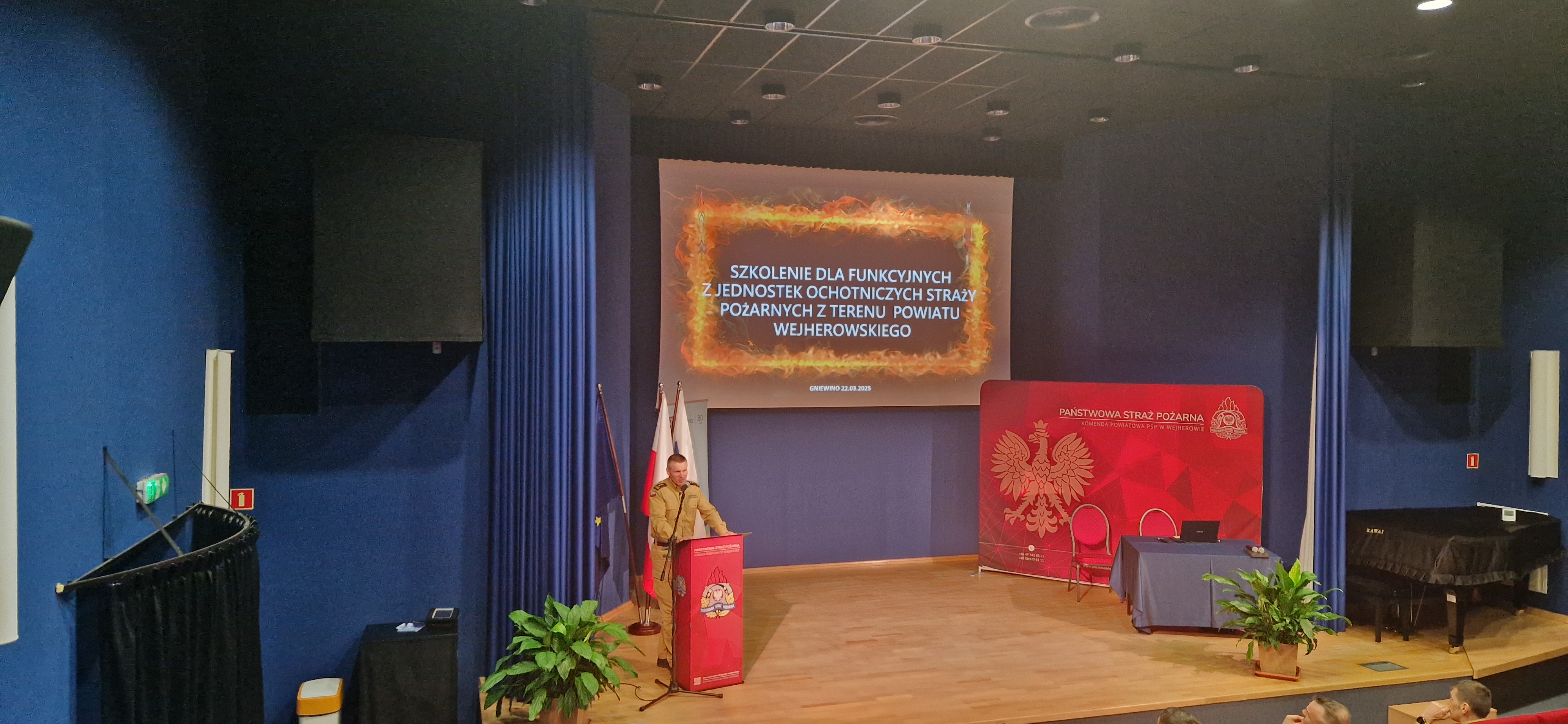 22 marca 2025 roku w budynku Centrum Kultury w Gniewinie odbyła się narada szkoleniowa dla funkcyjnych z jednostek Ochotniczych Straży Pożarnych w terenu powiatu wejherowskiego.