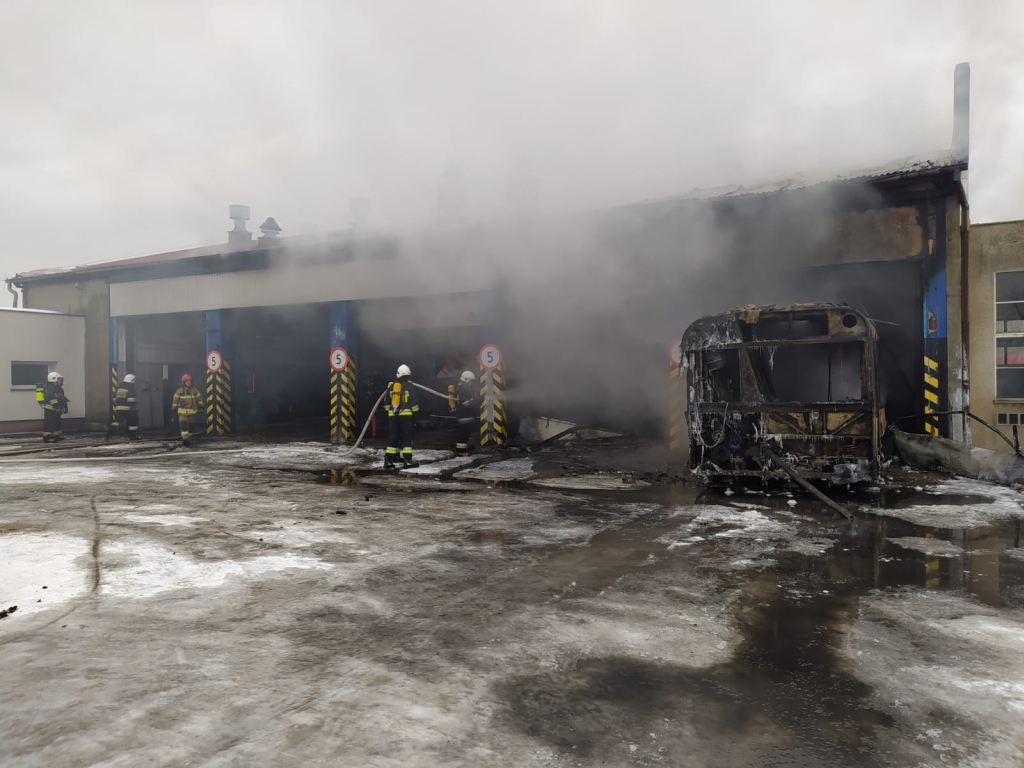 Na miejscu zdarzenia ratownicy zastali pożar w fazie już rozwiniętej dwóch boksów postojowych, w których zaparkowane były autobusy. pracownicy zakładu odłączyli zasilanie w energię elektryczną i wyprowadzili z zagrożonych pomieszczeń urządzenia spawalnicze, które przy rozwoju pożaru stanowiły zagrożenie wybuchem. Strażacy zabezpieczyli teren działań i podjeli działania gaśnicze. Podanych zostało 4 proądy gaśnicze wody i 2 piany. Dużym utrudnieniem podczas działań gaśniczych była bardzo niska temperatura, sięgająca 10 stopni poniżej zera. W wyniku pożaru nikt nie został poszkodowany. Po ugaszeniu pożaru i sprawdzeniu czy nie występują inne zagrożenia działania zostały zakończone.