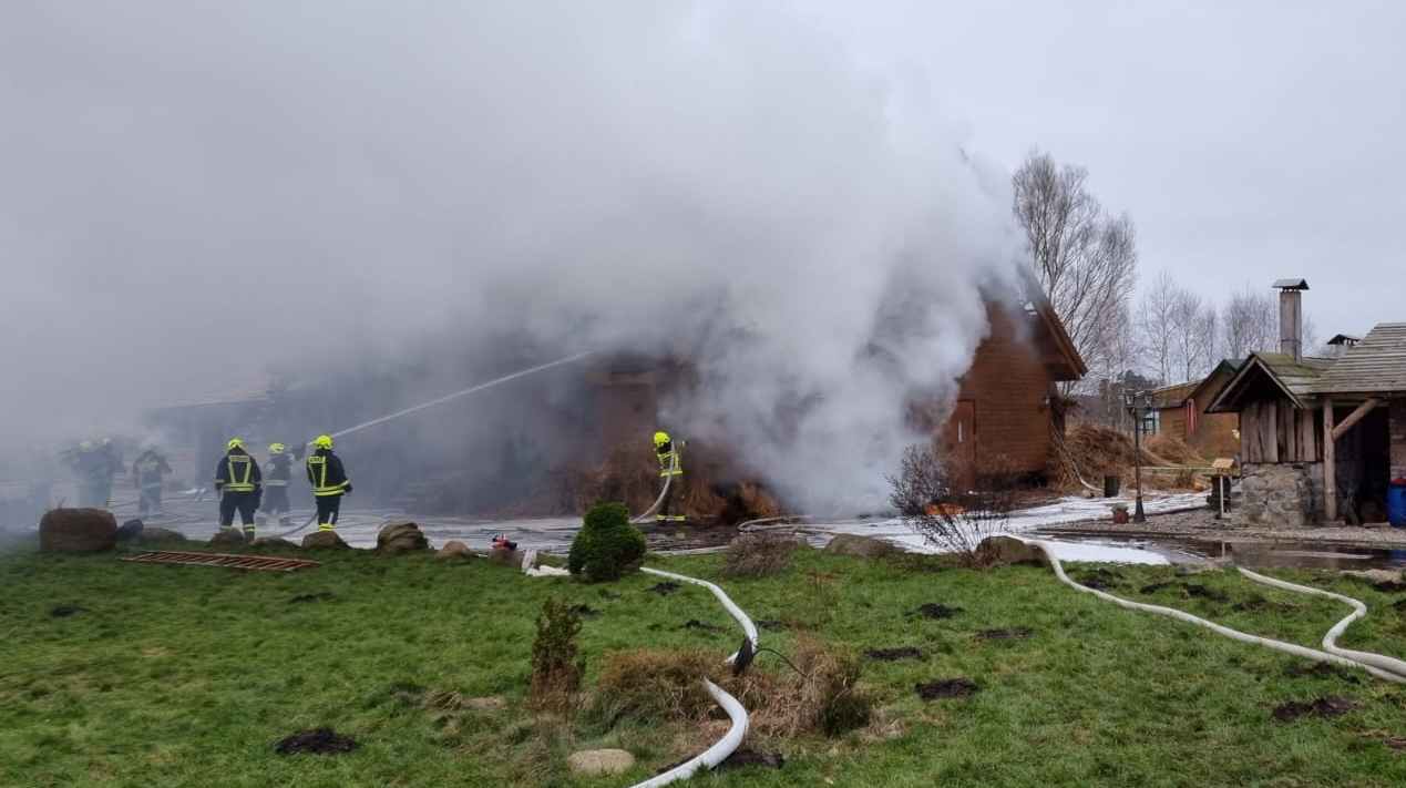 Na miejscu zdarzenia strażacy zastali rozwinięty pożar drewnianego budynku krytego strzechą, Pożarem objęty był dach, poddasze i pomieszczenia na parterze. W celu gaszenia pożaru strażacy podali 6 prądów gaśniczych wody, 2 prądy piany. Po zlokalizowaniu pożaru, konieczne okazało się wykonanie prac rozbiórkowych w celu dotarcia do wszystkich zarzewi ognia.