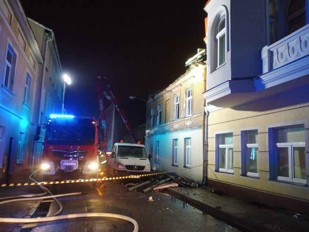 Na miejscu zdarzenia strażacy zastali rozwinięty pożar budynku - pustostanu. Pożarem objęty był dach wraz z poddaszem. Działania polegały na zabezpieczeniu miejsca zdarzenia oraz podaniu prądów gaśniczych w natarciu na płonący budynek i w obronie na sąsiadujący budynek mieszkalny. Wprowadzono rotę do płonącego budynku w celu sprawdzenia czy wewnątrz nie ma osób poszkodowanych. Z sąsiedniego budynku mieszkalnego ewakuowane zostało 13 osób. Po ugaszeniu pożaru, sprawdzono pogorzelisko i wykonano niezbędne prace rozbiórkowe. Podczas pożaru nik nie został ranny.