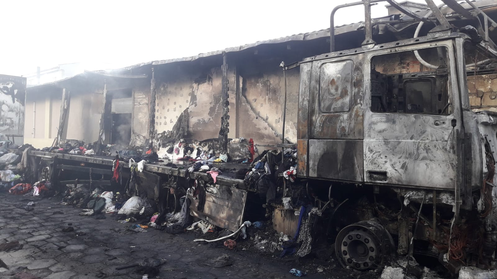 Na miejscu zdarzenia ratownicy zastali pożar w całej objętości ciągnika siodłowego wraz z naczepa wypełniona tekstyliami. Pożar rozprzestrzenił się na znajdujący się w bliskiej odległości magazyn z tekstyliami. Pierwsze działania strażaków polegały na zabezpieczeniu miejsca zdarzenia i podaniu prądów wody na palący się samochód ciężarowy. Po dojeździe kolejnych zastępów wprowadzono 2 roty gaśnicze do wewnątrz obiektu w celu zlokalizowania i ugaszenia pożaru. Pożar udało sie zlokalizować o godzinie 07:00 rano 17 sierpnia 2021r. Niezbędne okazało się użycie ciężkiego sprzętu do bezpiecznego i szybszego usuwania tlących się materiałółw palnych w celu dogaszenia, które trwało do późnych godzin popołudniowych. W zdarzeniu nikt nie został poszkodowany.