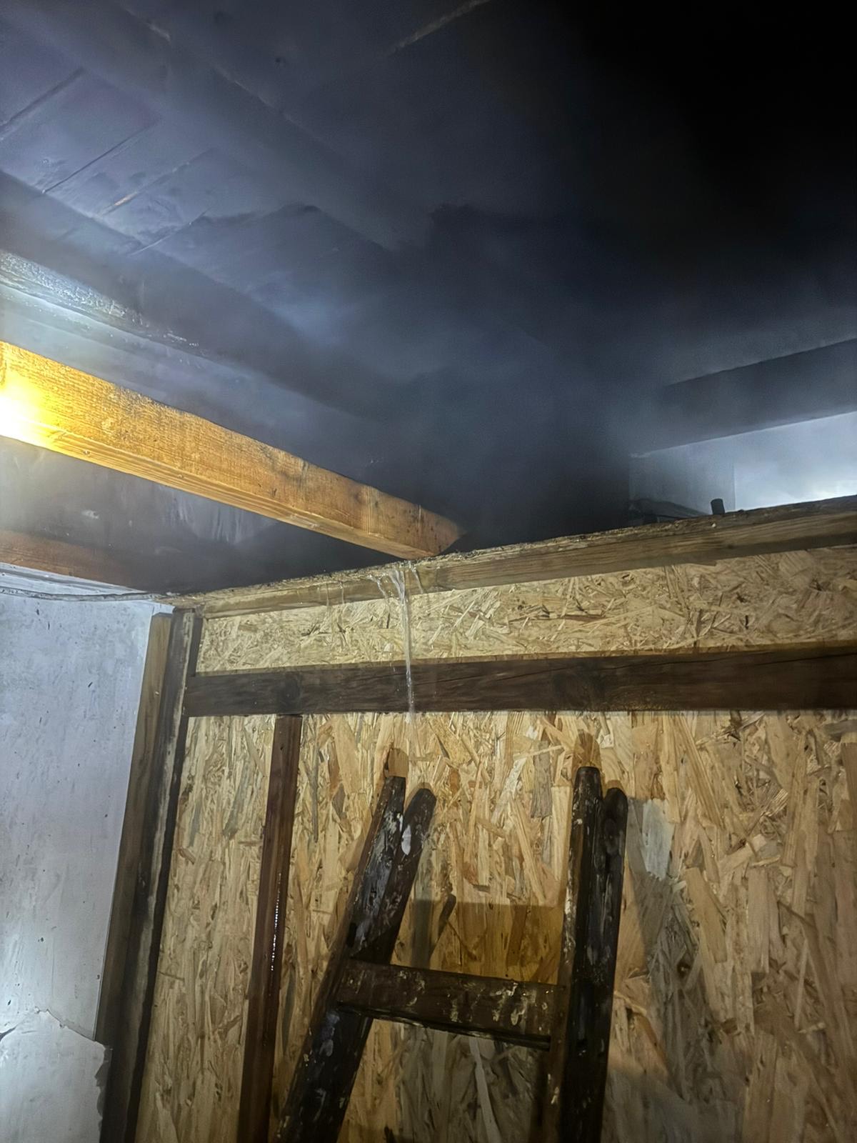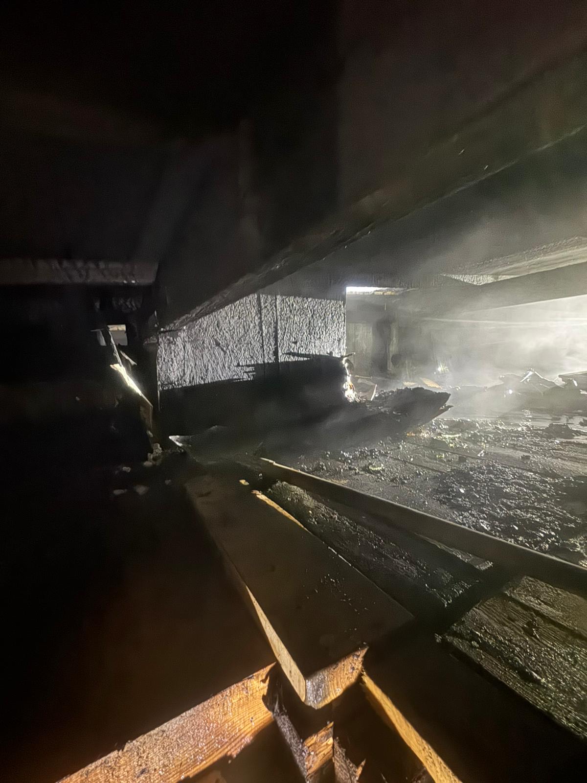 Nocny Pożar budynku garażu przekształconego częściowo w mieszkalny.