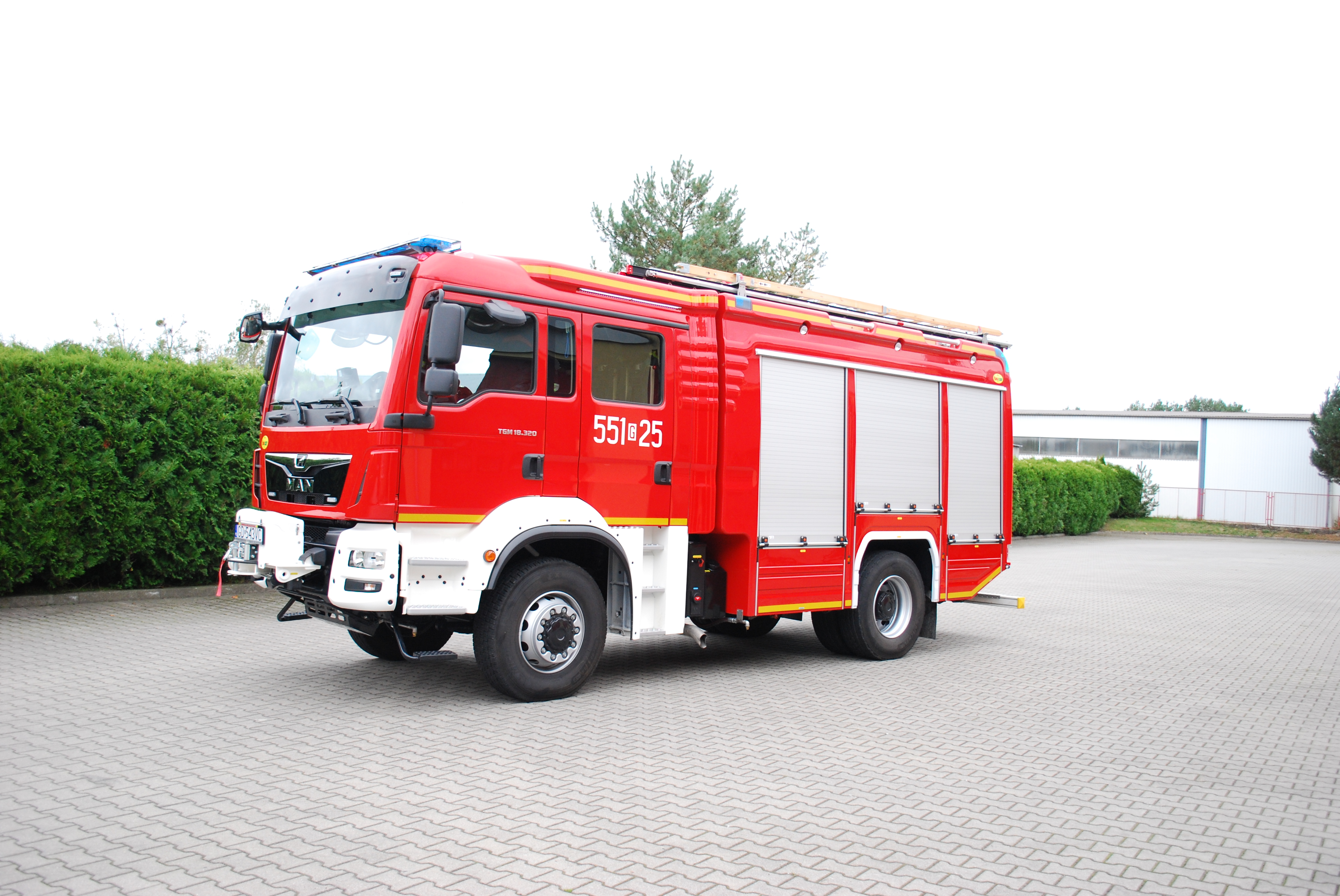 GCBA 5/32 - pojazd skarosowany na podwoziu MAN, wyposażony w zbiornik wodny o pojemności 5,4m3 i dwustopniową autopompę.W skład wyposażenia wchodzi armatura wodno pianowa, sprzęt oświetleniowy, sprzęt ratownictwa medycznego, sprzęt hydrauliczny i ratownictwa drogowego, agregat oddymiający, piły spalinowe do drewna, betonu i metalu, sprzęt burzący, drabiny pożarnicze jak również sprzęt ochrony dróg oddechowych i ochrony osobistej ratowników. Ze względu na wyposażenie auto jest wozem uniwersalnym, którym możemy prowadzić każdego rodzaju działania ratowniczo-gaśnicze.