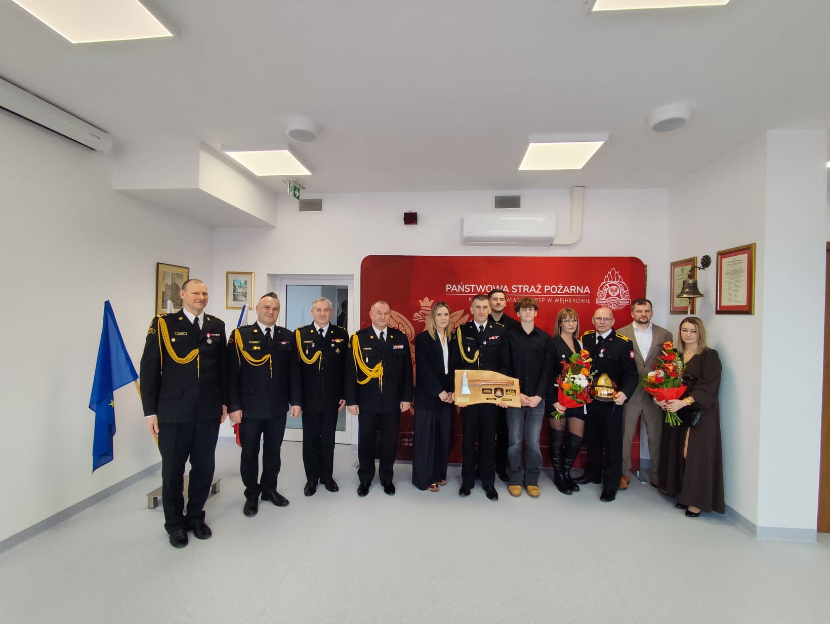 Na zakończenie uroczystego pożegnania Pomorski Komendant Wojewódzki Państwowej Straży Pożarnej nadbryg. Jacek Niewęgłowski wraz z Zastępcą Pomorskiego Komendanta Wojewódzkiego PSP st. bryg. Marianem Hinca, Komendantem Powiatowym mł. bryg. Krzysztof Chlebicki, Z-ca Komendanta Powiatowego bryg. Marek Lniskim wraz z koleżankami, kolegami i pracownikami komendy powiatowej podziękowali funkcjonariuszom za długoletnią służbę i zaangażowanie i złożyli życzenia pomyślności i samych sukcesów w życiu prywatnym.