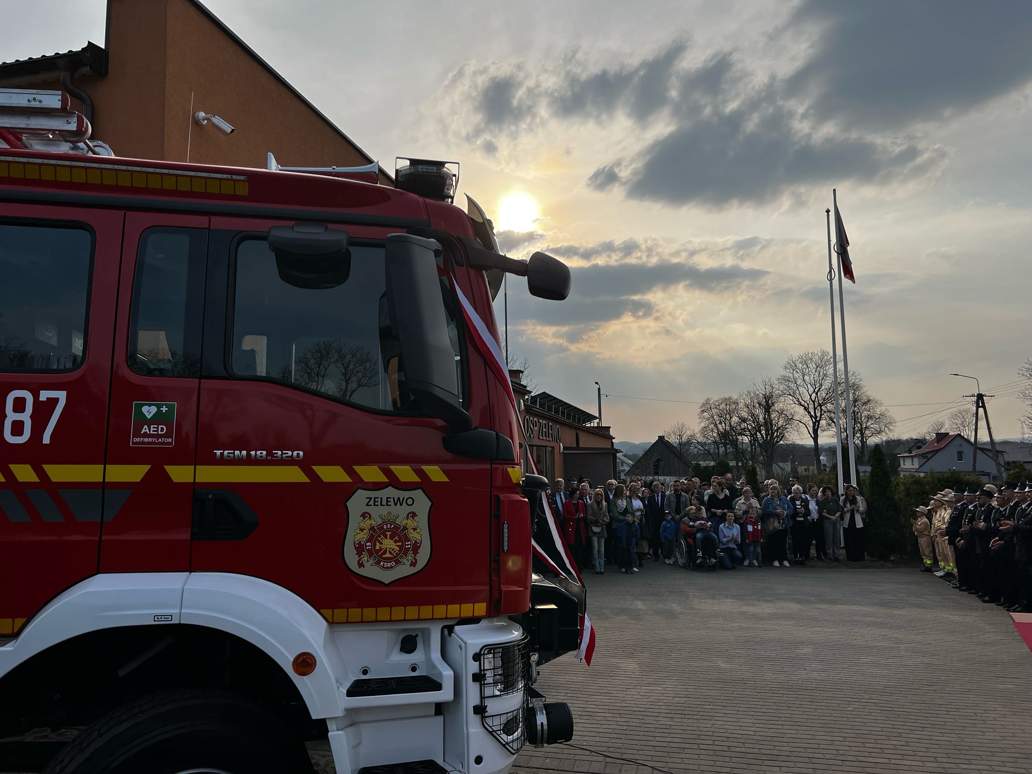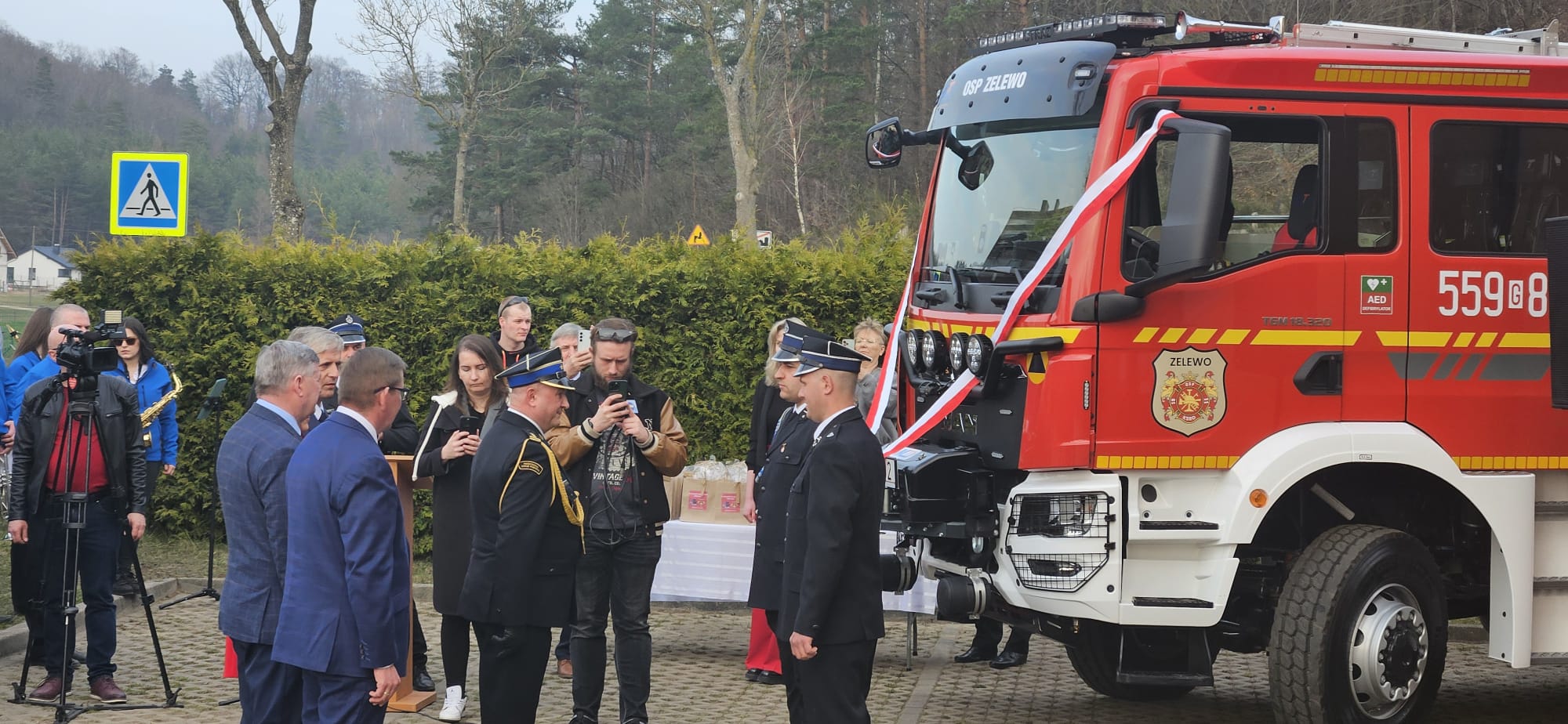 29 marca 2025 roku w siedzibie Ochotniczej Straży Pożarnej w Zelewie odbyła się uroczysta zbiórka z okazji przekazania nowego średniego samochodu ratowniczo-gaśniczego.