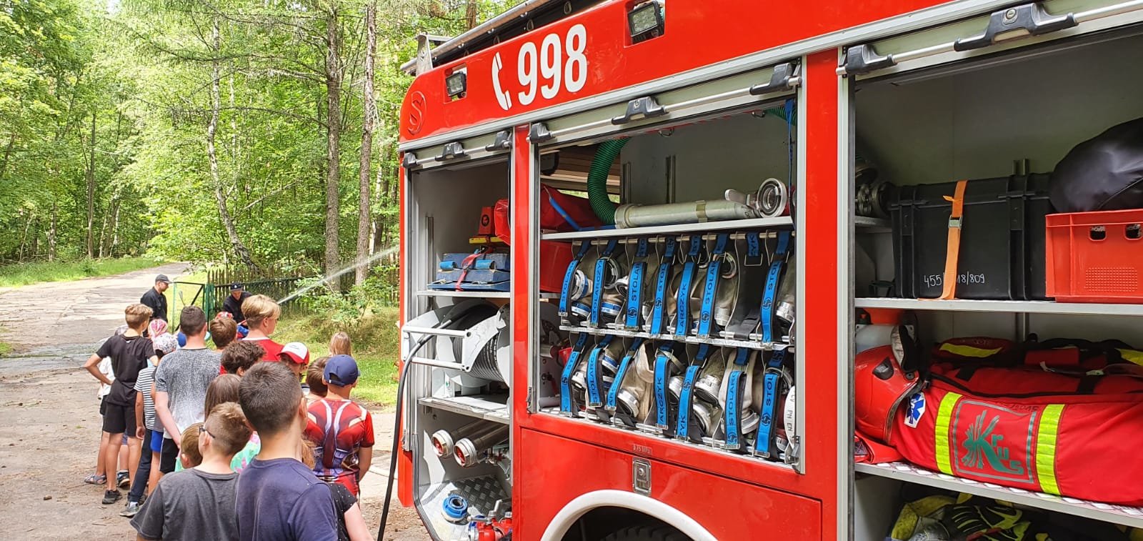W trakcie wizyt strażacy z miejscowych Jednostek Ochotniczych Straży Pożarnych zaprezentowali pojazdy ratowniczo - gaśnicze. Uczestnicy obozów mieli okazję z bliska zobaczyć sprzęt i wyposażenie jakim dysponują strażacy podczas prowadzenia działań ratowniczych.