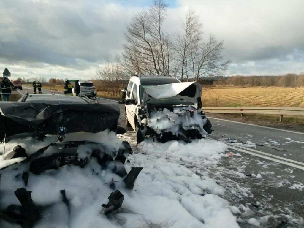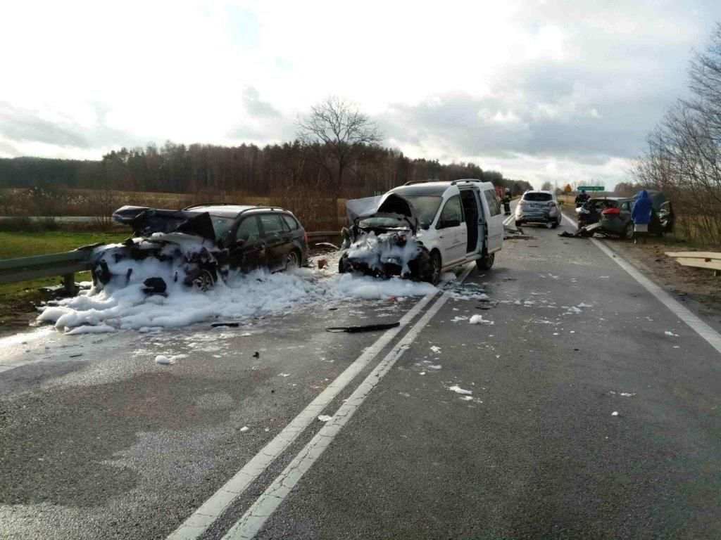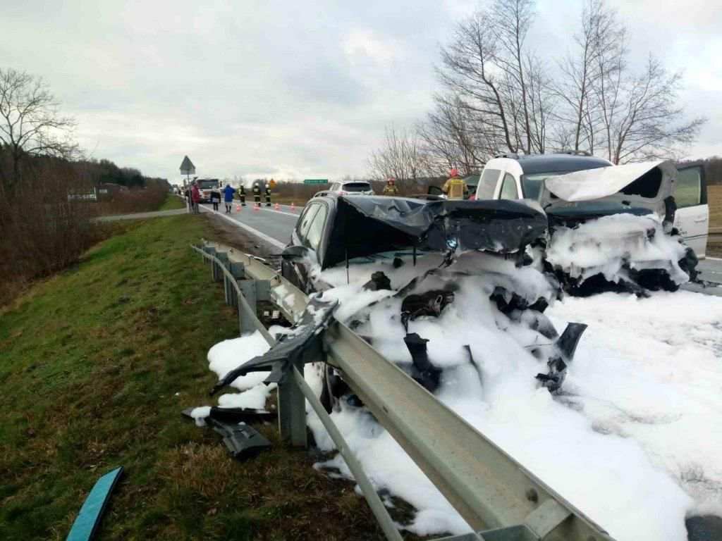 Na miejscu zdarzenia ratownicy zastali zdarzenie drogowe, w którym udział brało 4 samochody osobowe. Ratownicy zabezpieczyli miejsce zdarzenia i przystąpili do udzielania pierwszej pomocy medycznej poszkodowanym. Po przybyciu Zespołów Ratownictwa Medycznego i śmigłowca LPR 4 osoby poszkodowane przekazano ratownikom medycznym. Dwie osoby ze względu na odniesione obrażenia wymagały zabrania do szpitali. Dalsze czynności na miejscu zdarzenia prowadzili funkcjonariusze Policji.
