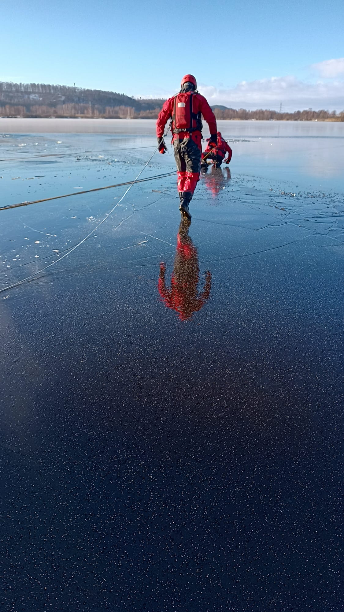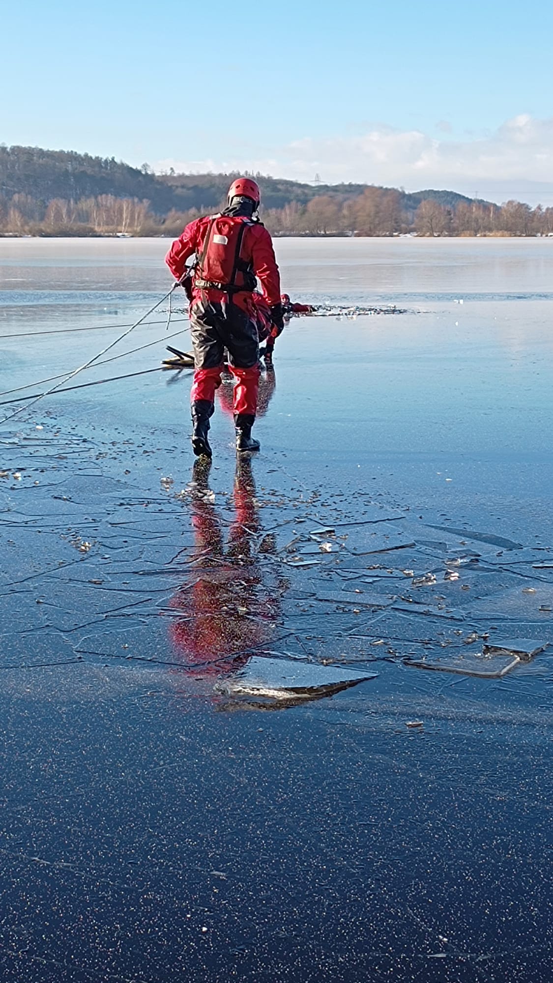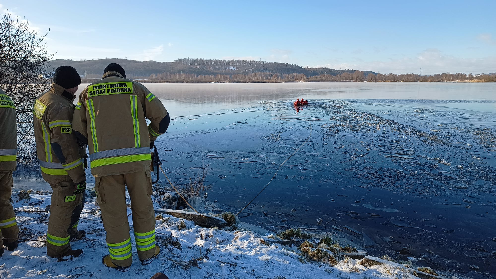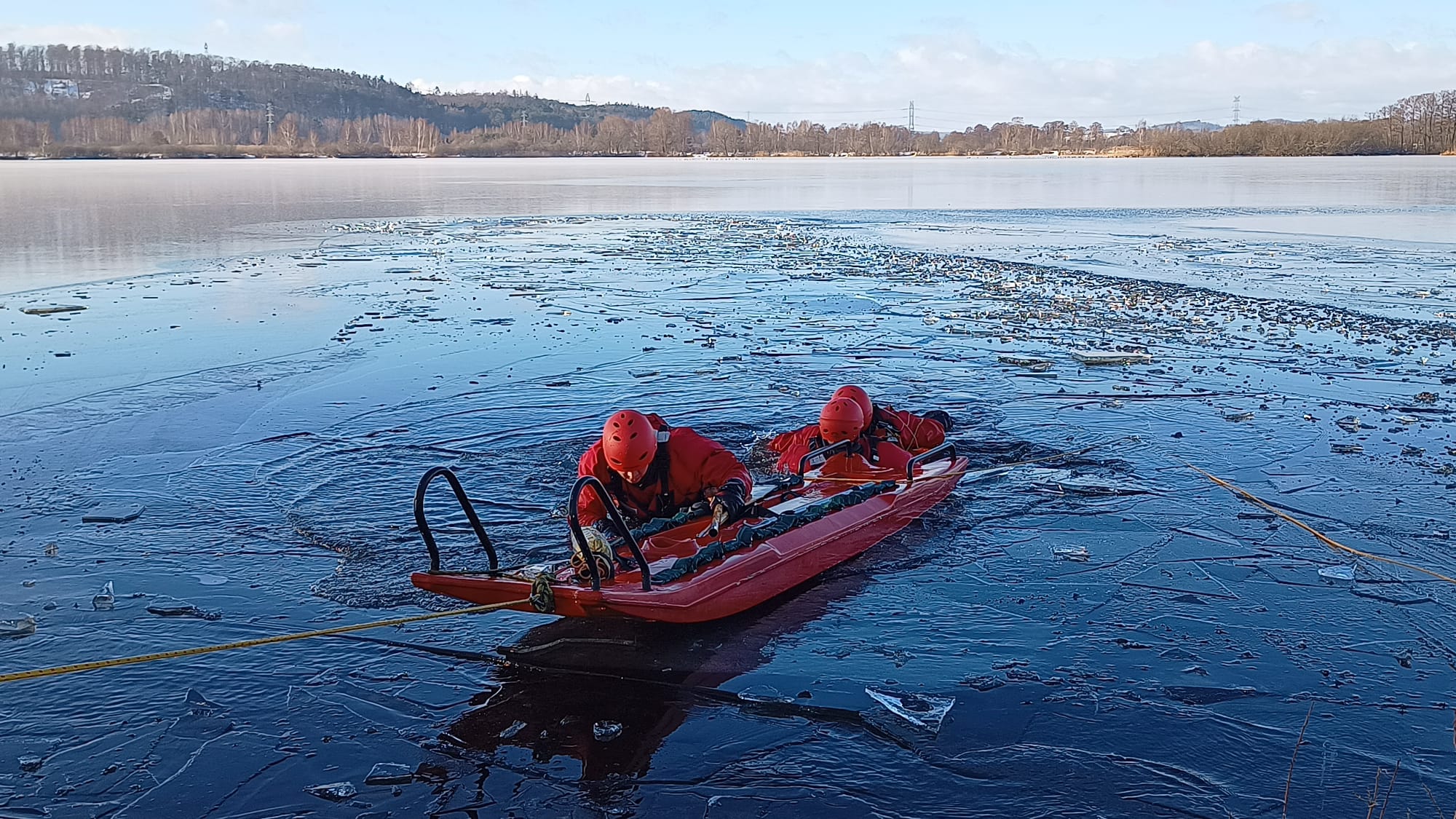 Dziedzina ratownictwa wodnego, do którego zaliczane jest ratownictwo na lodzie wymaga od strażaka ratownika ciągłego szkolenia, podnoszenia wiedzy i kwalifikacji. Podczas takich akcji istnieje realne zagrożenie utraty zdrowia lub życia przez strażaka znajdującego się na lodzie. Jednostka Ratowniczo-Gaśnicza nr 1 w Wejherowie w dniach 16-18 stycznia br. korzystając z warunków zimowych przeprowadziła szkolenie z ratownictwa lodowego w zakresie podstawowym. Tematem głównym ćwiczeń była organizacja działań ratowniczych w okresie zimowym na zalodzonych akwenach. Opis założenia obejmował załamanie się lodu pod osobą przechodzącą po zamarzniętym stawie.