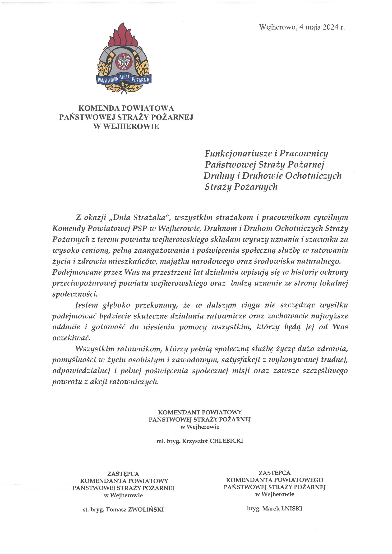 Życzenia Komendanta Powiatowego Państwowej Straży Pożarnej w Wejherowie 04.05.2024 Materiały Życzenia KP PSP w Wejherowie Życzenia_KP_PSP_w_Wejherowie.jpg 0.33MB