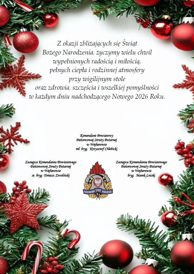 Życzenia Świąteczne Kierownictwa Komendy Powiatowej PSP w Wejherowie